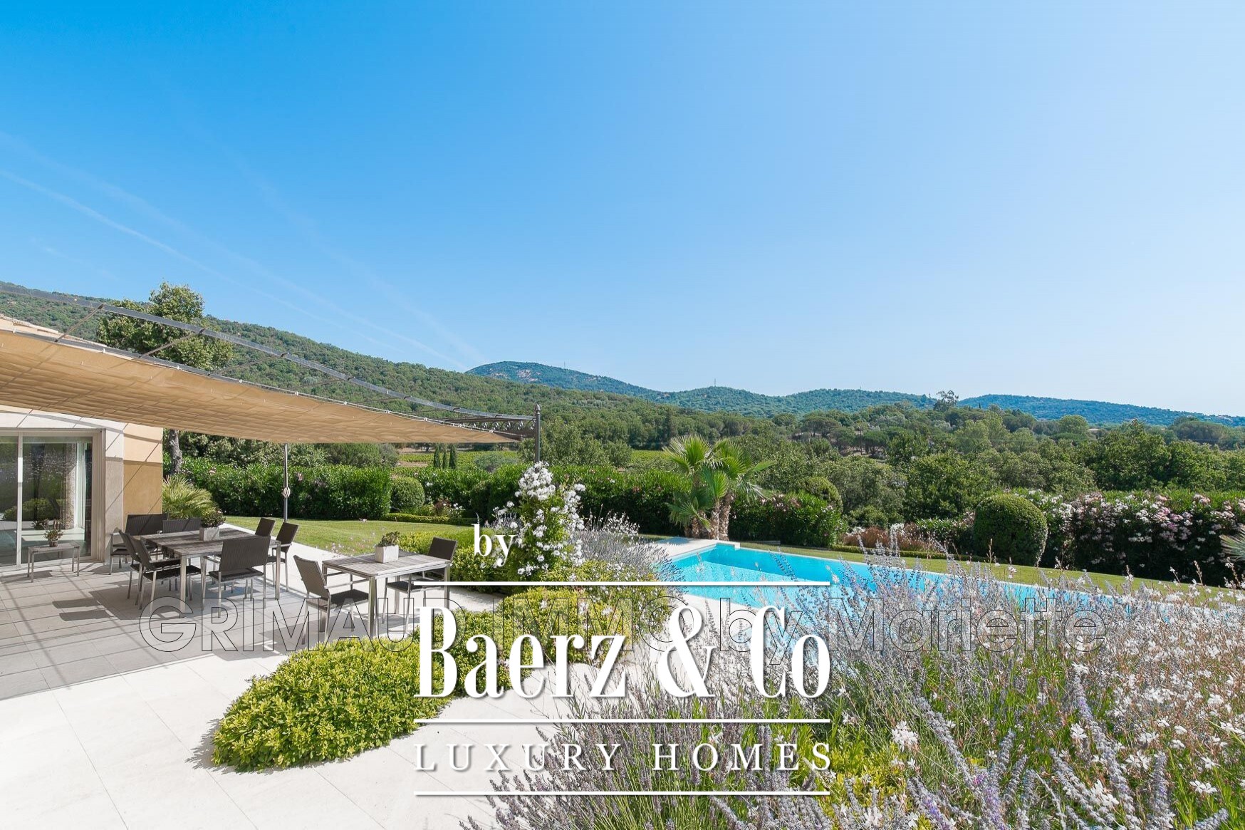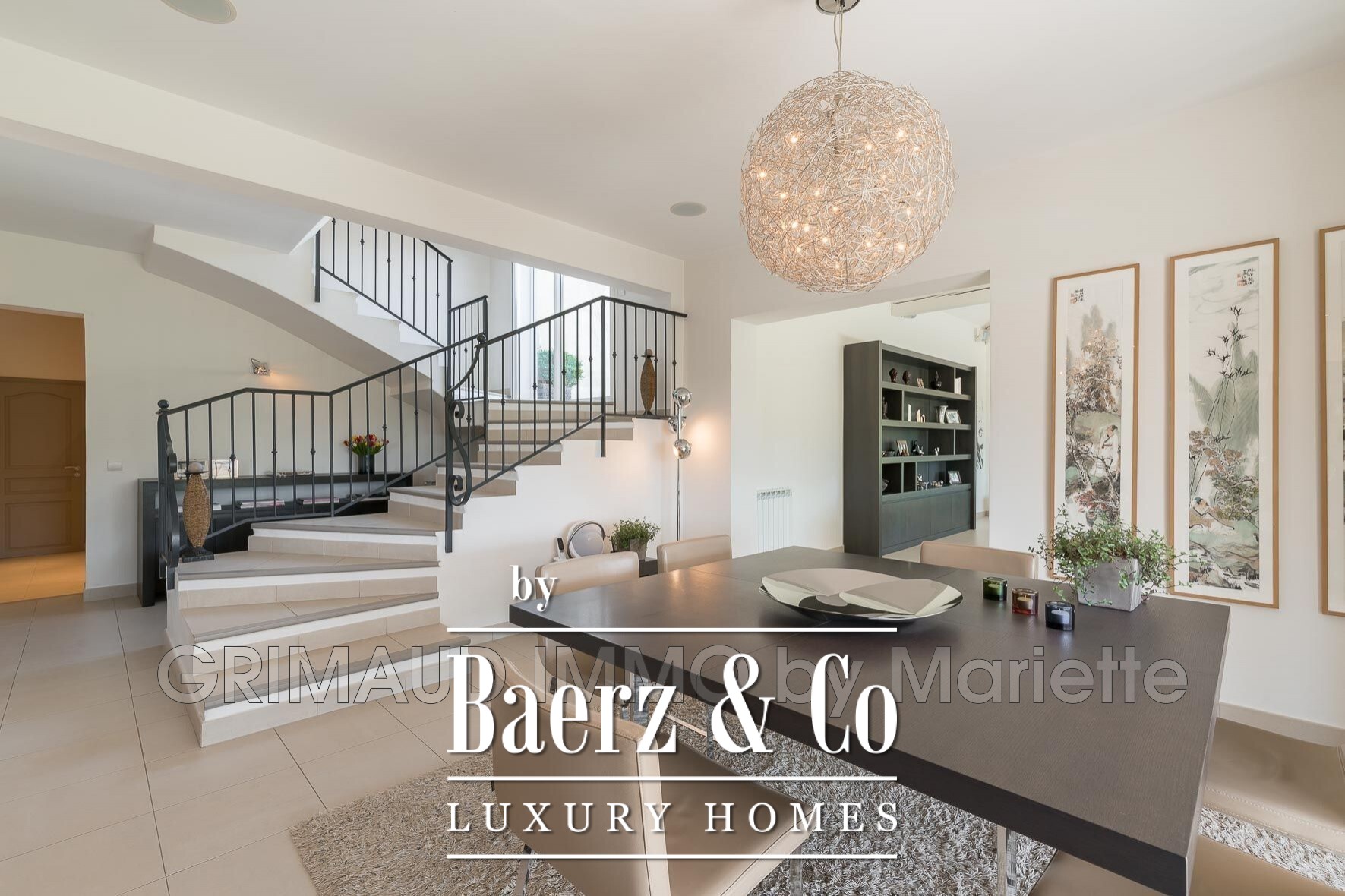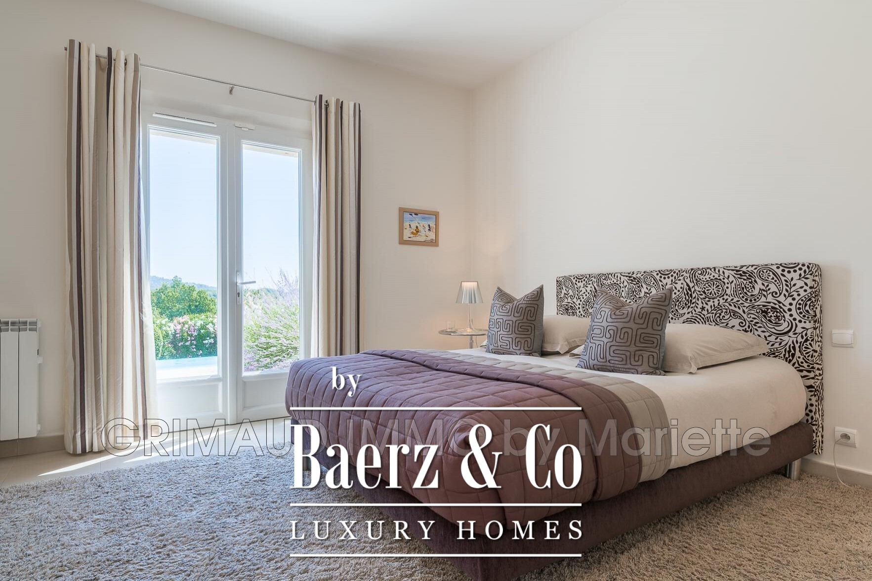 Villa Grimaud offers a quietly commanding presence in the heart of the French countryside, defined by a sense of privacy and calm. This villa in Grimaud is set within a secure estate, blending unobstructed views across the verdant landscape with refined, high-end details throughout its 261 m² of living space. The entrance level introduces two bedrooms, each with its own private bathroom and immediate access to a rooftop terrace, where light and views converge. Double garage access provides immediate practicality.