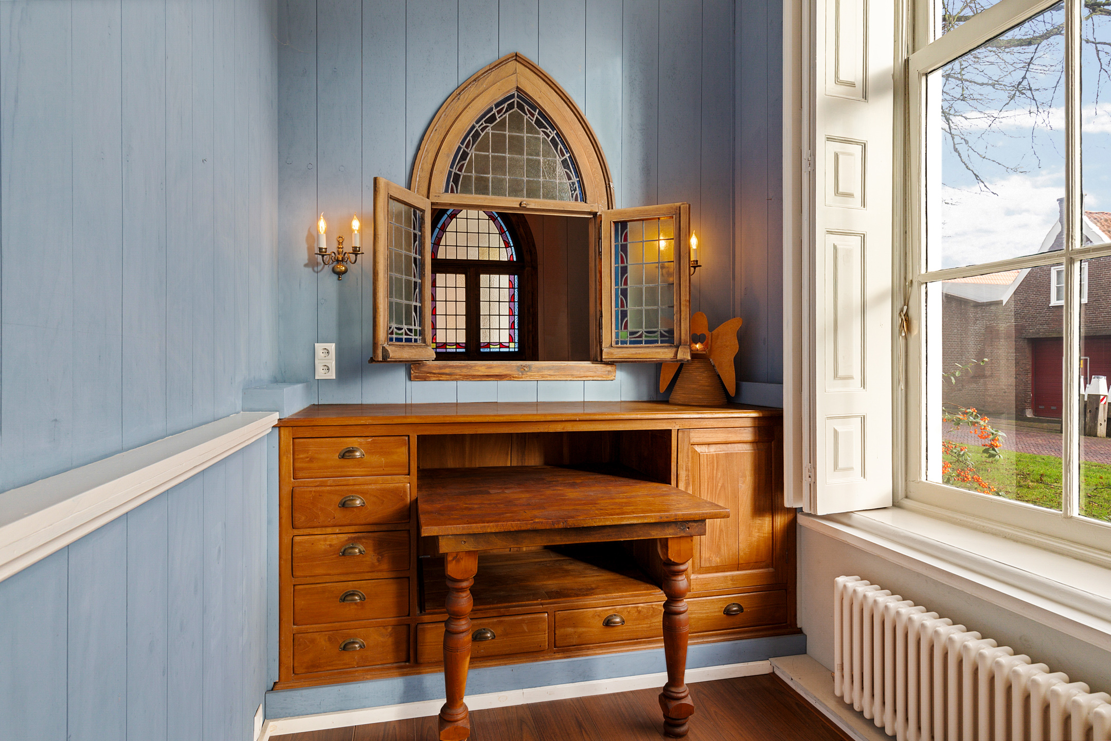 This deep canal house with two full residential floors a lodge hall, chapel, cellar and a striking attic loft beneath an exposed timber frame is an architectural icon. It tells a story reaching back to the seventeenth century a history of trade, prosperity, spirituality and culture. The ornate rocaille style entrance door, the mullioned windows, the sculpted façade stones with frieze and the carved stoop posts are tangible reminders of its rich past. The picturesque streetscape with benches in front of the historic façades forms the perfect setting for life at the Franekereind; convivial, stylish, atmospheric and within walking distance of all amenities.