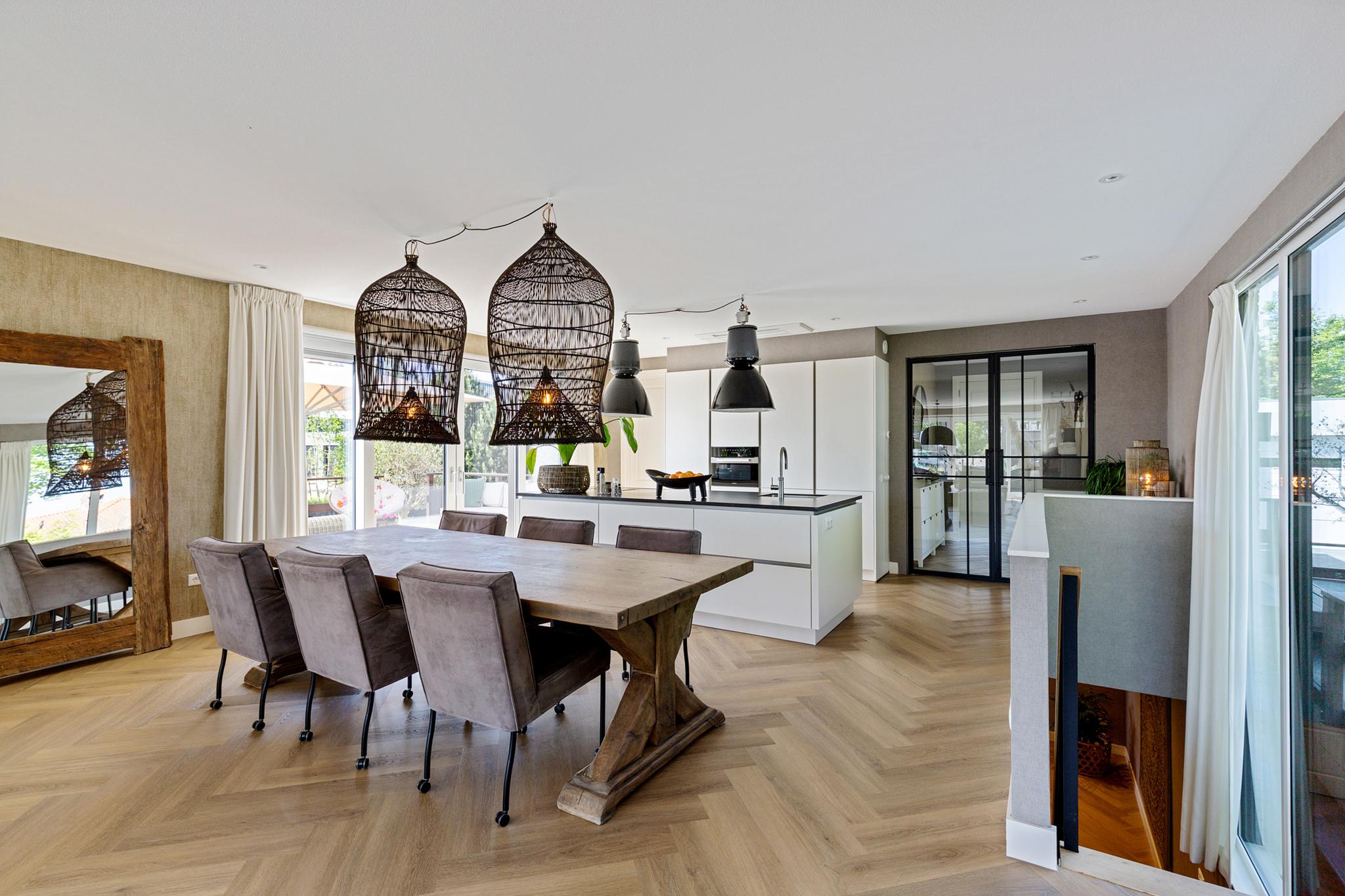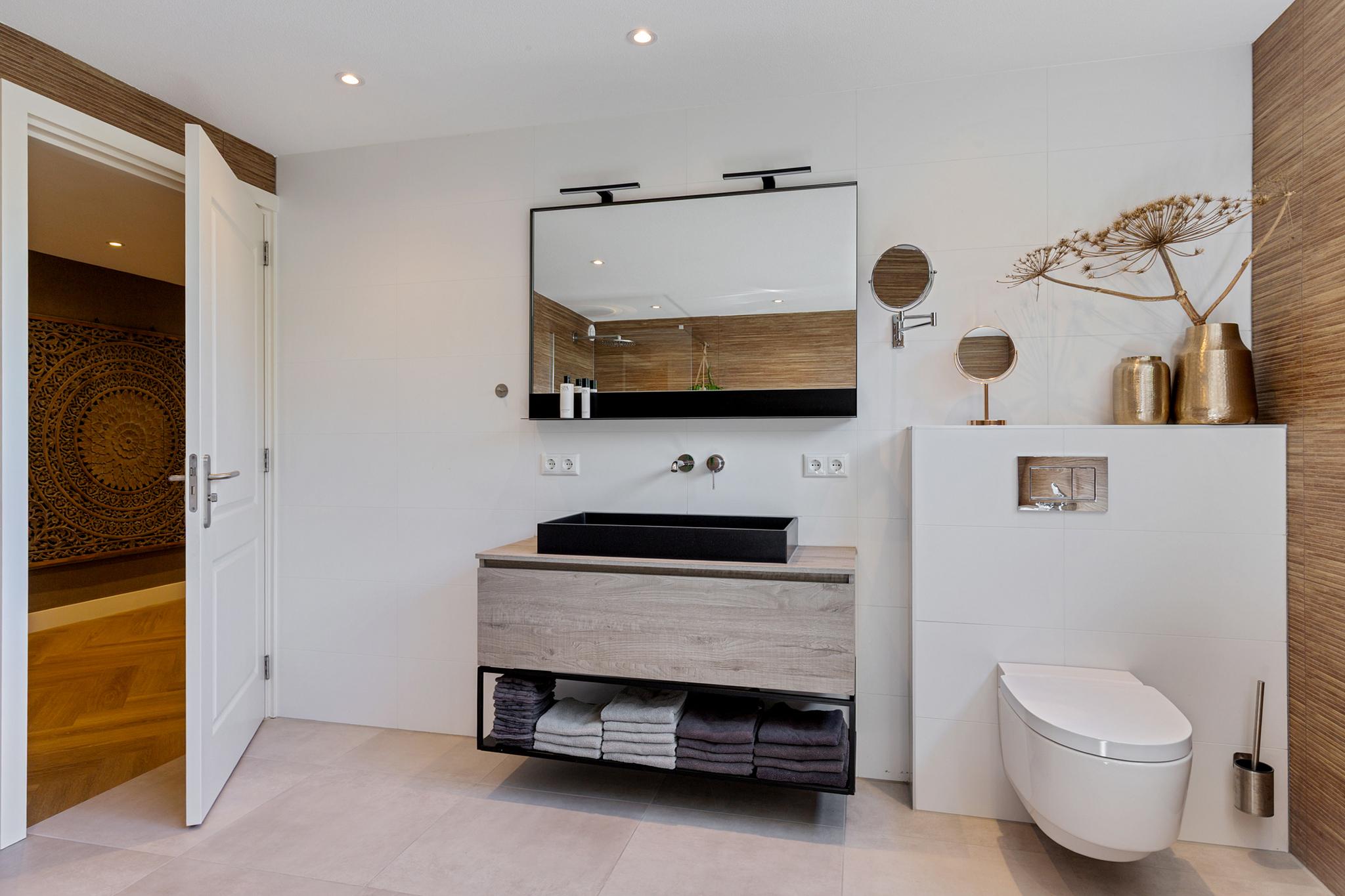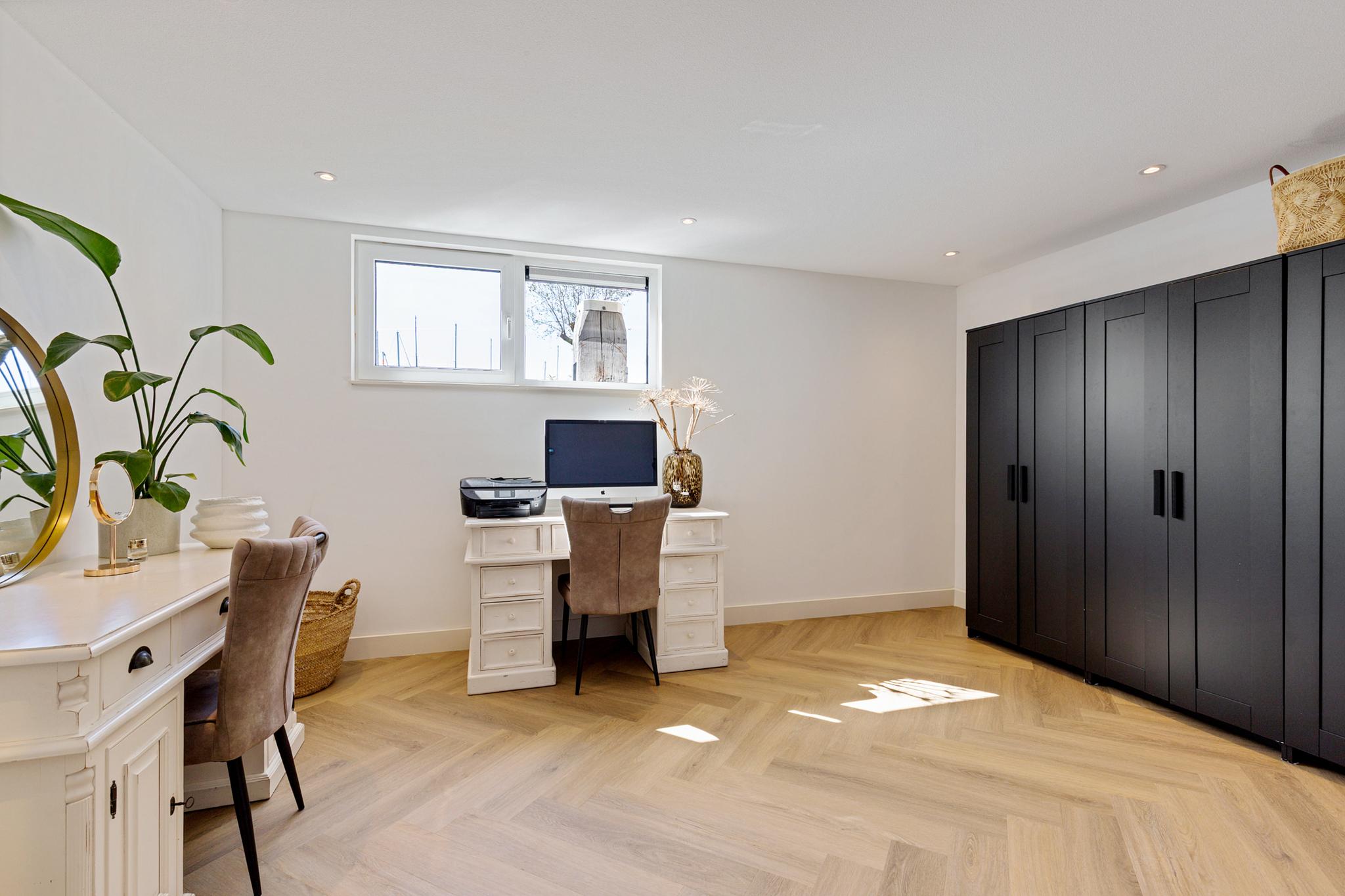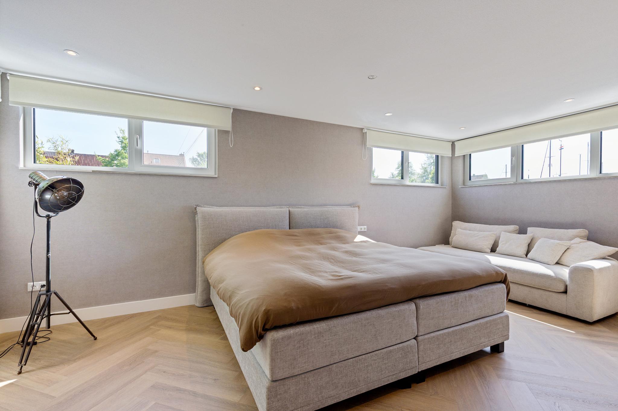 The west-facing sundeck, accessible from the open kitchen, provides a sheltered spot to enjoy life on the water. It’s the perfect place to sit back and watch boats pass by. A spacious private berth alongside the villa accommodates a sailing or motor yacht. The location lies directly on the Standing Mast Route, with access to the open sea and the Frisian Lakes.