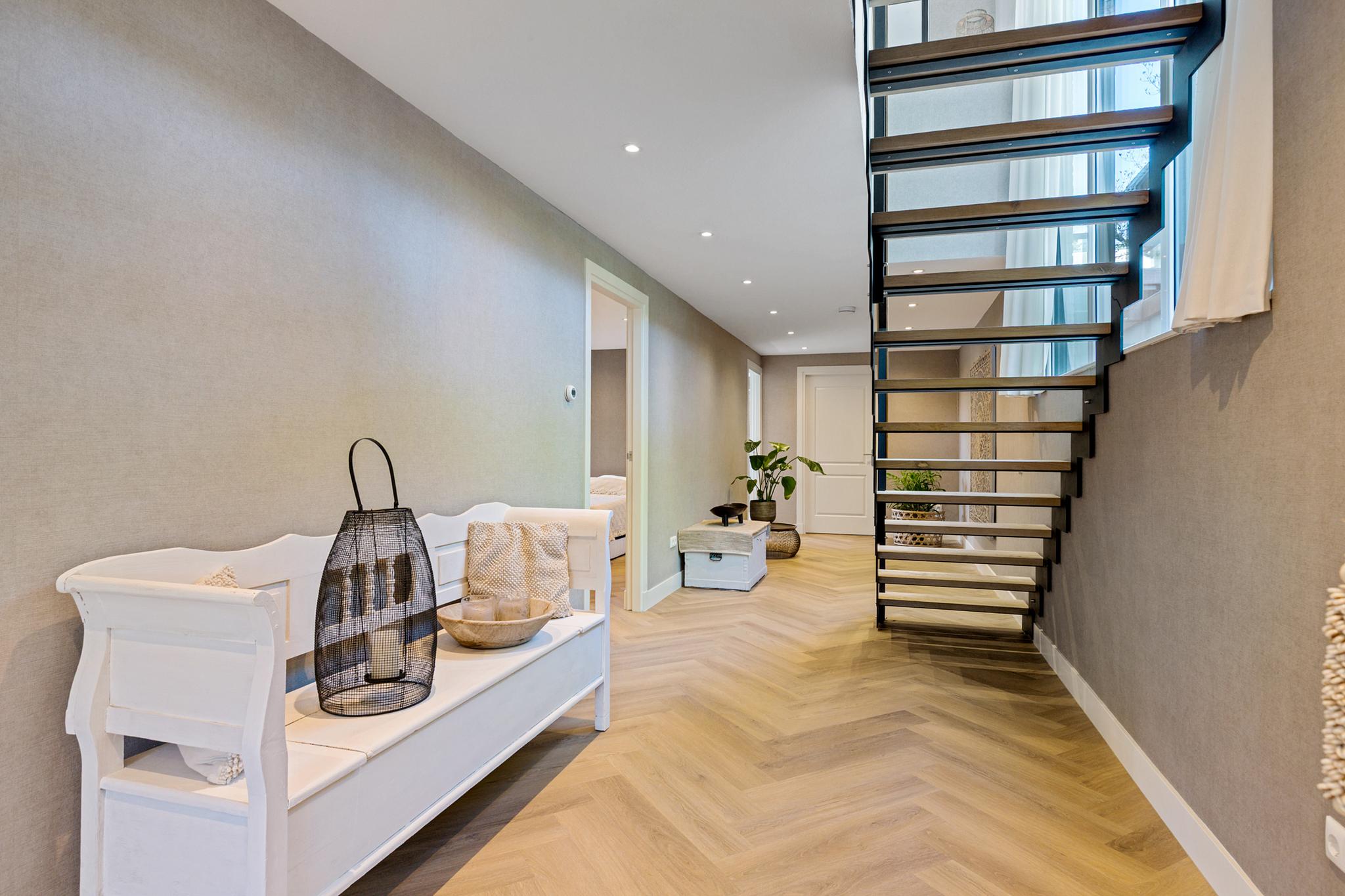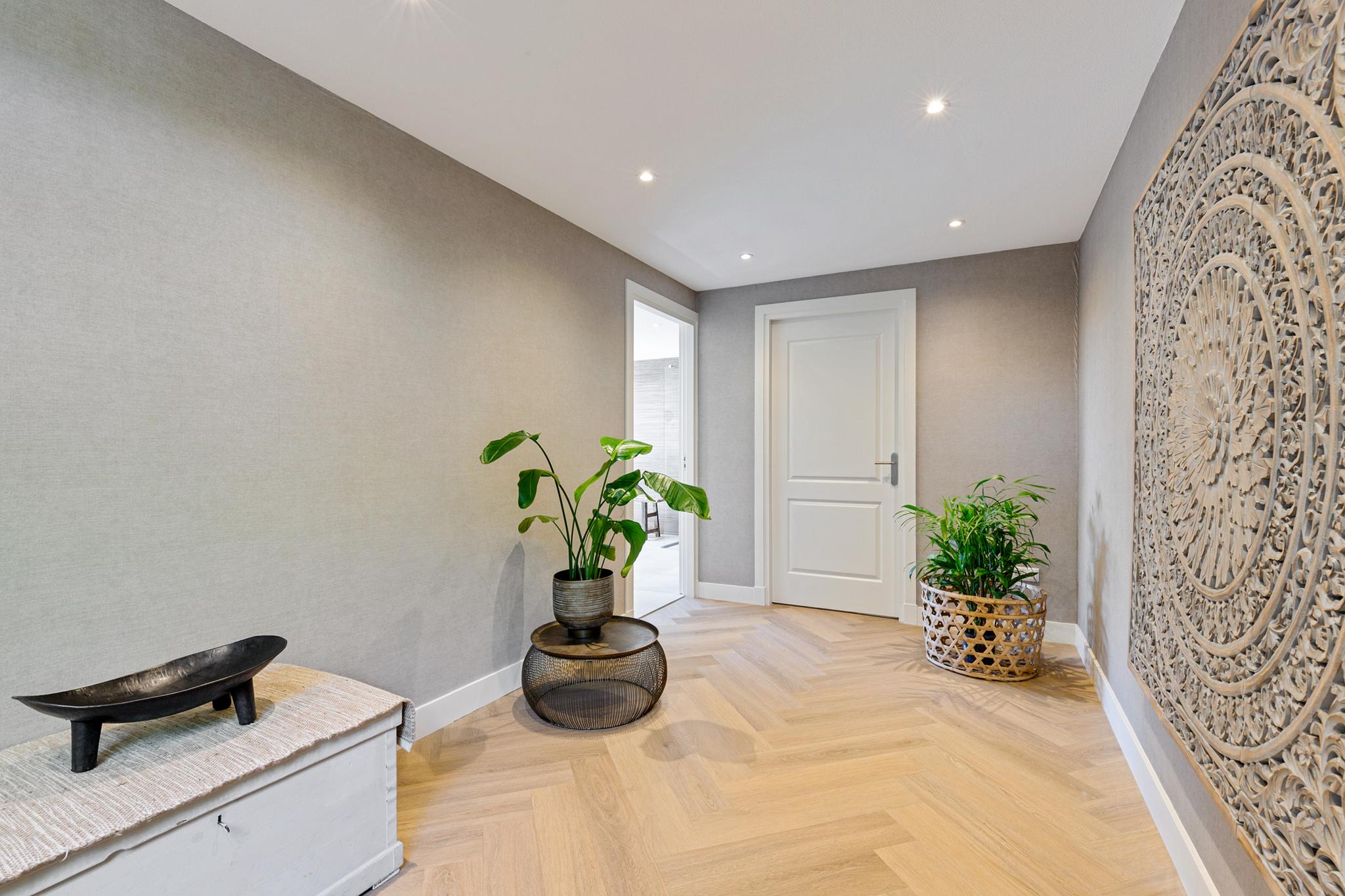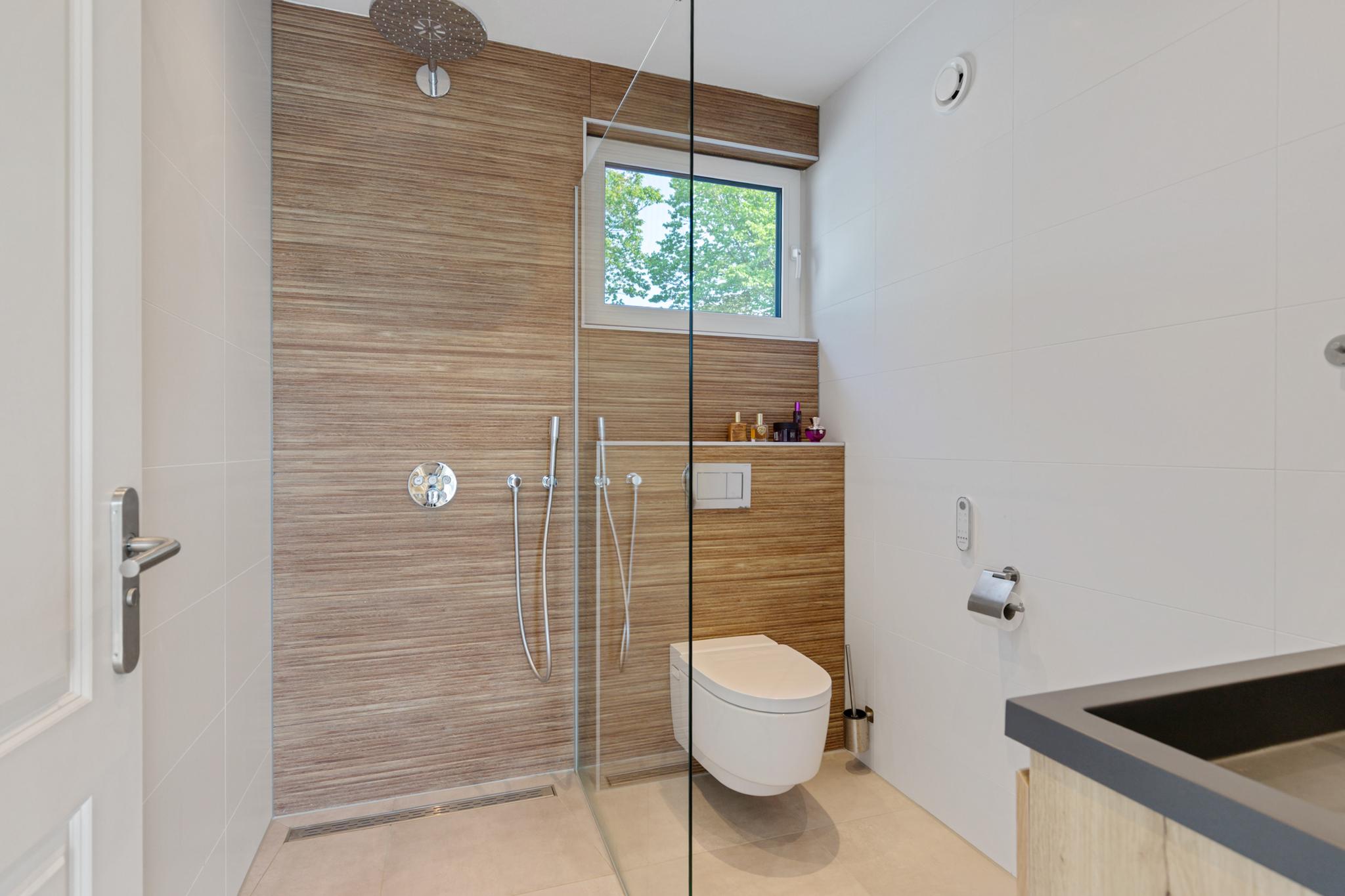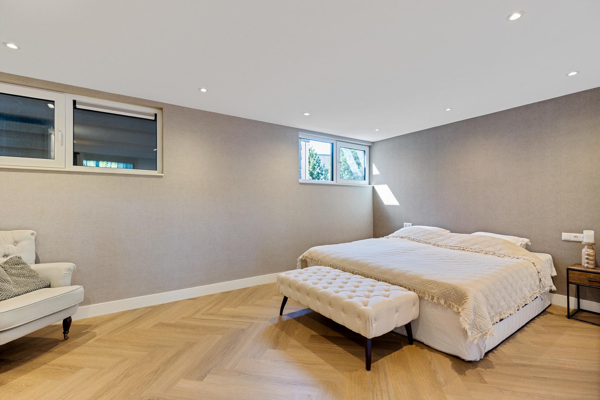 The utility room offers all necessary connections for laundry and houses the technical installations. This level also features a herringbone PVC floor with underfloor heating.