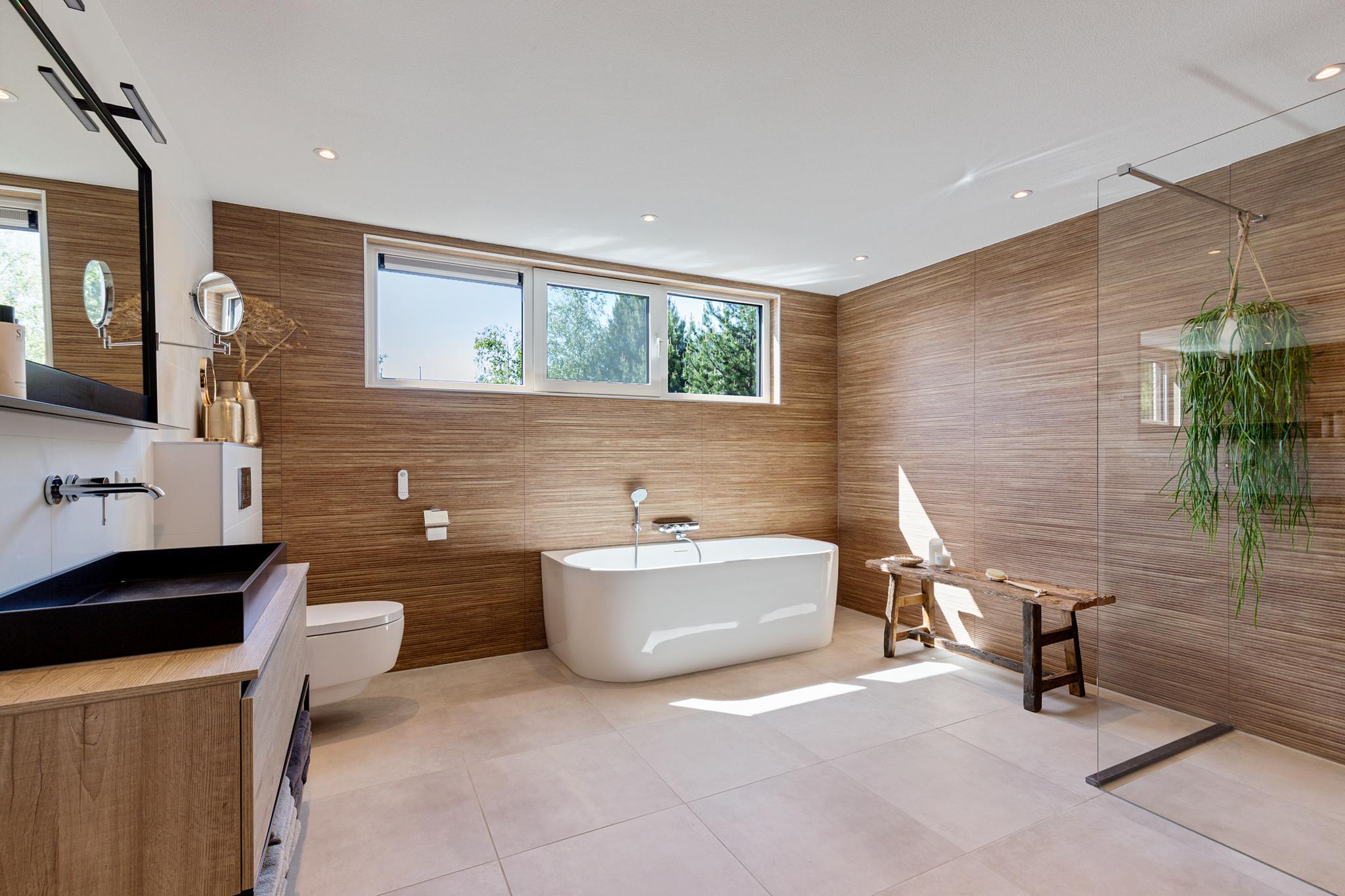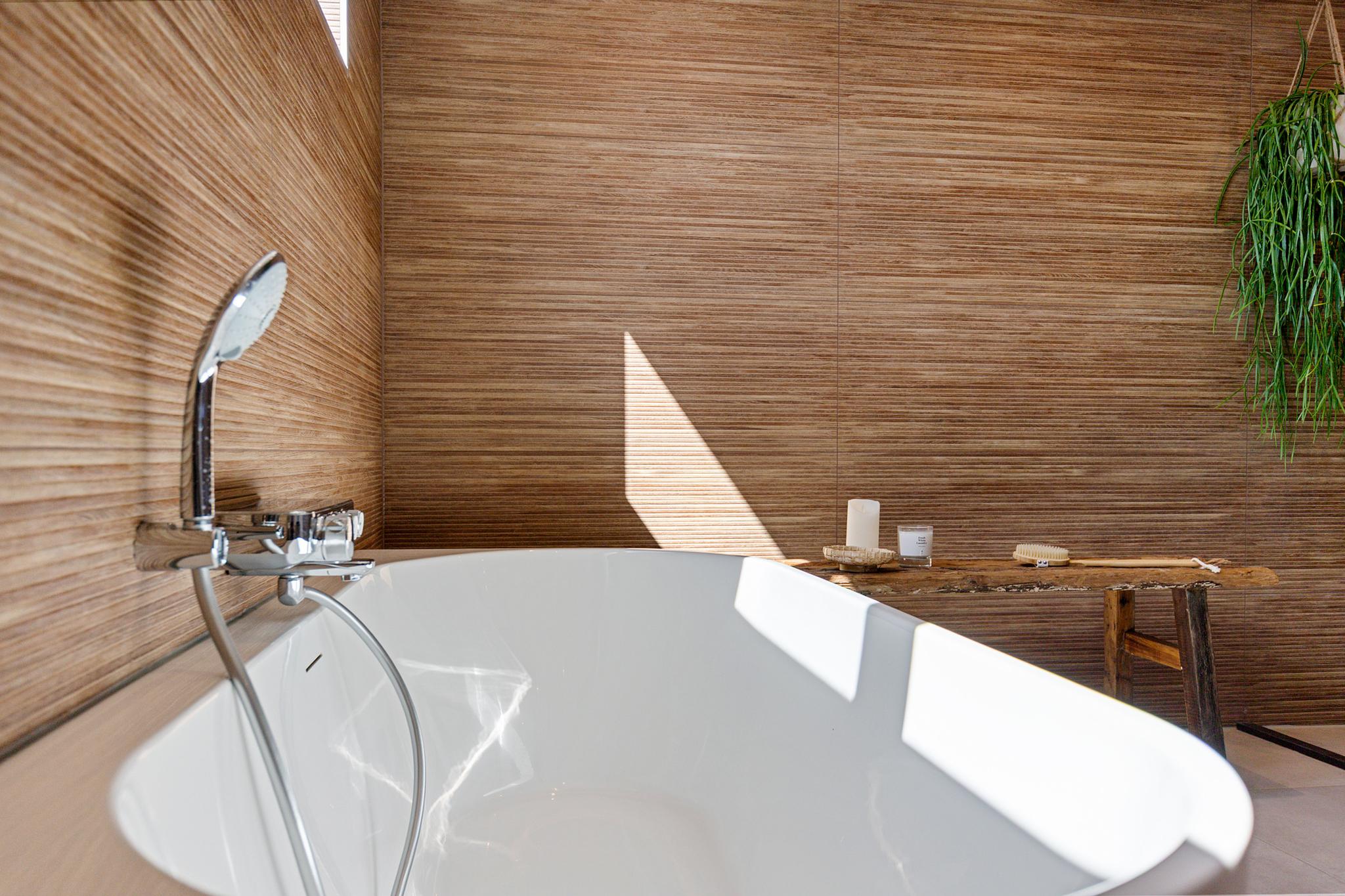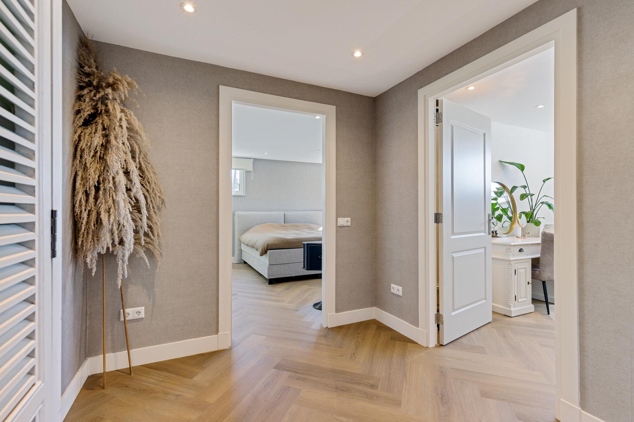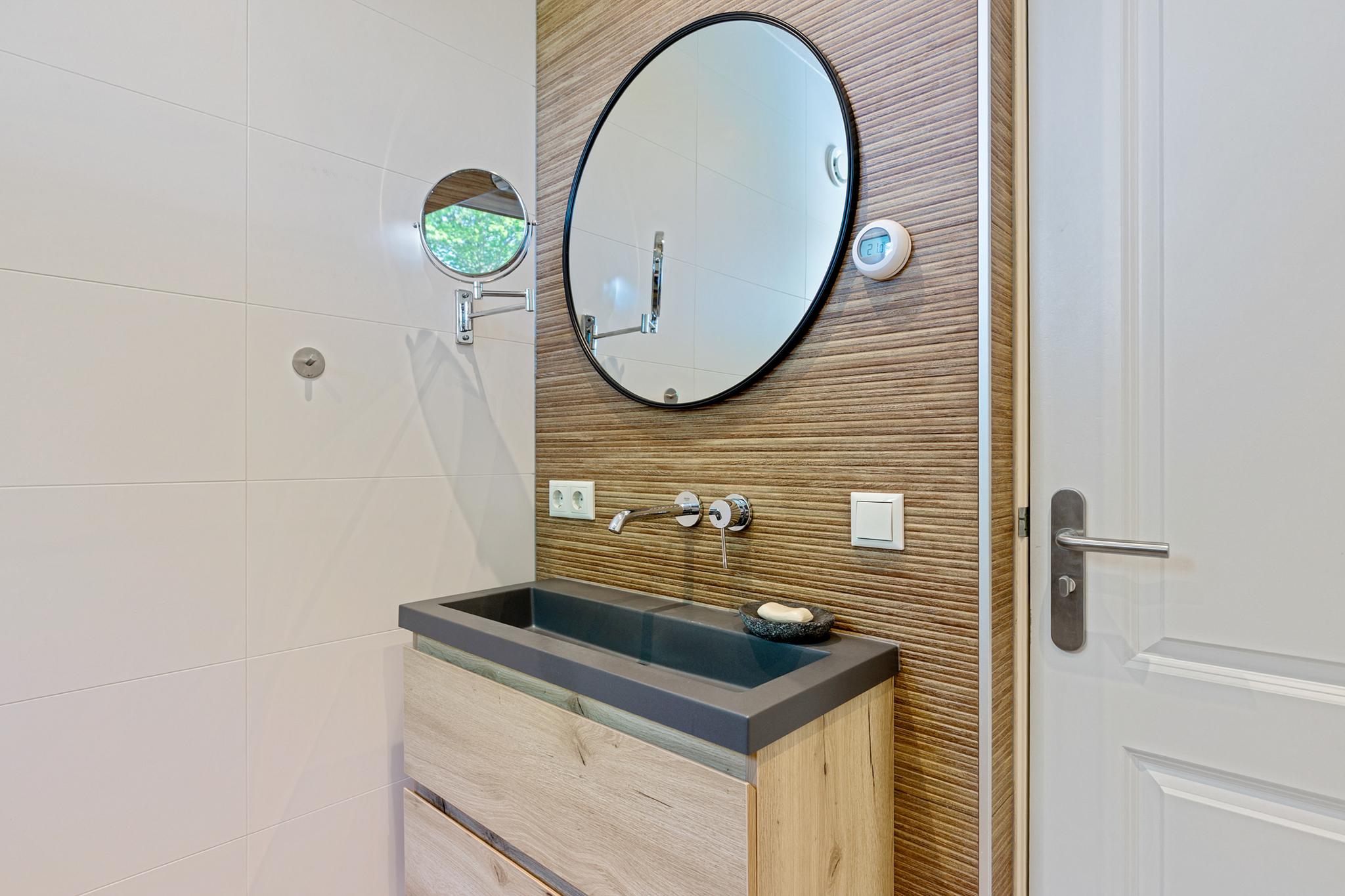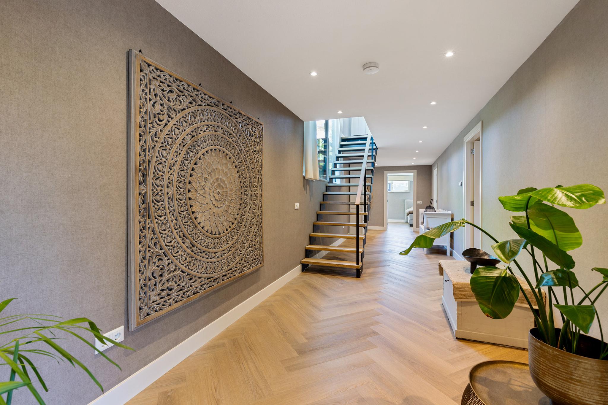 The utility room offers all necessary connections for laundry and houses the technical installations. This level also features a herringbone PVC floor with underfloor heating.
