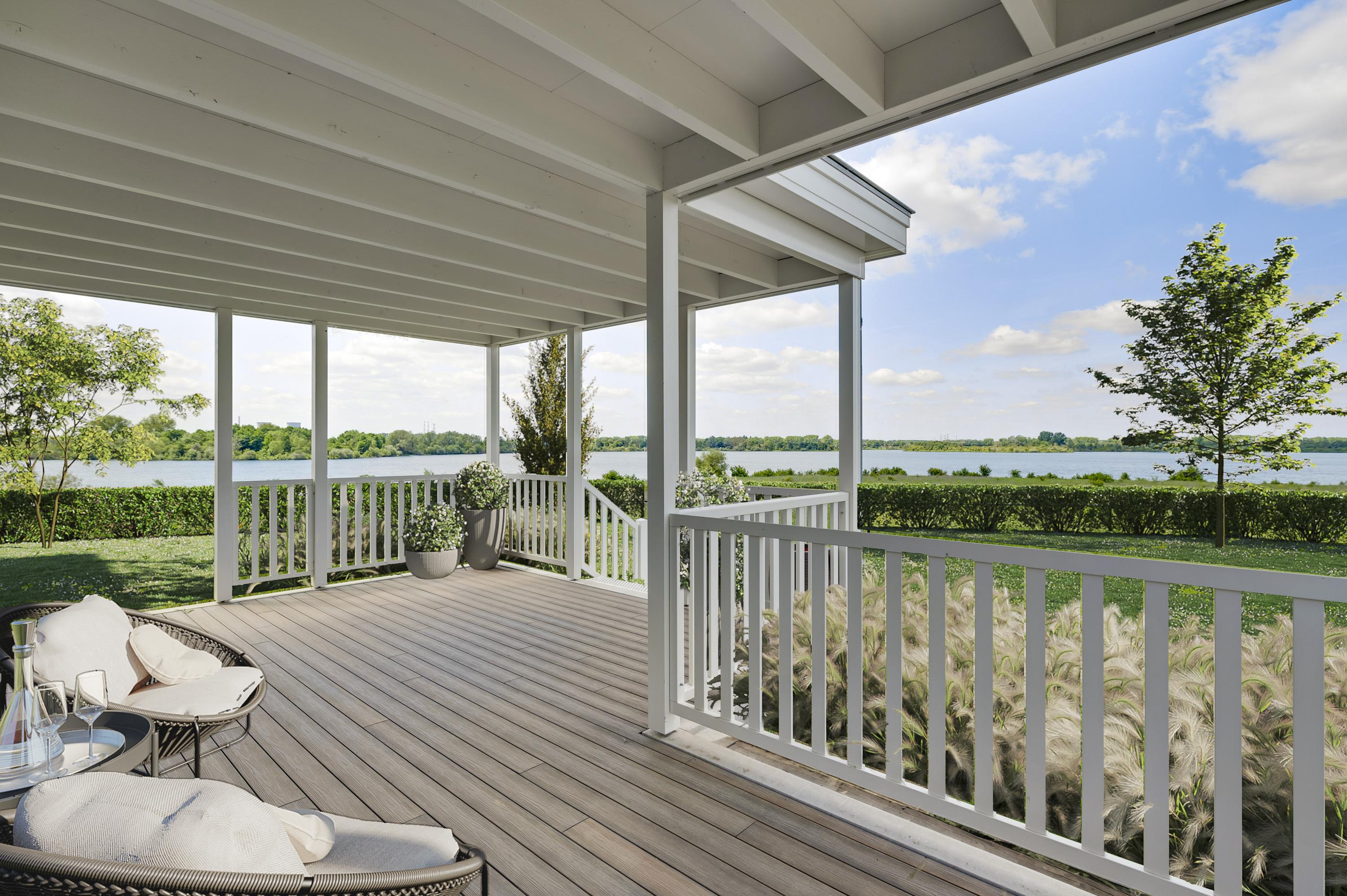 From the veranda you can walk straight into the (to be landscaped) garden. Experience a real holiday feeling here because of the breathtaking view. Choose your own garden design and complete the picture!