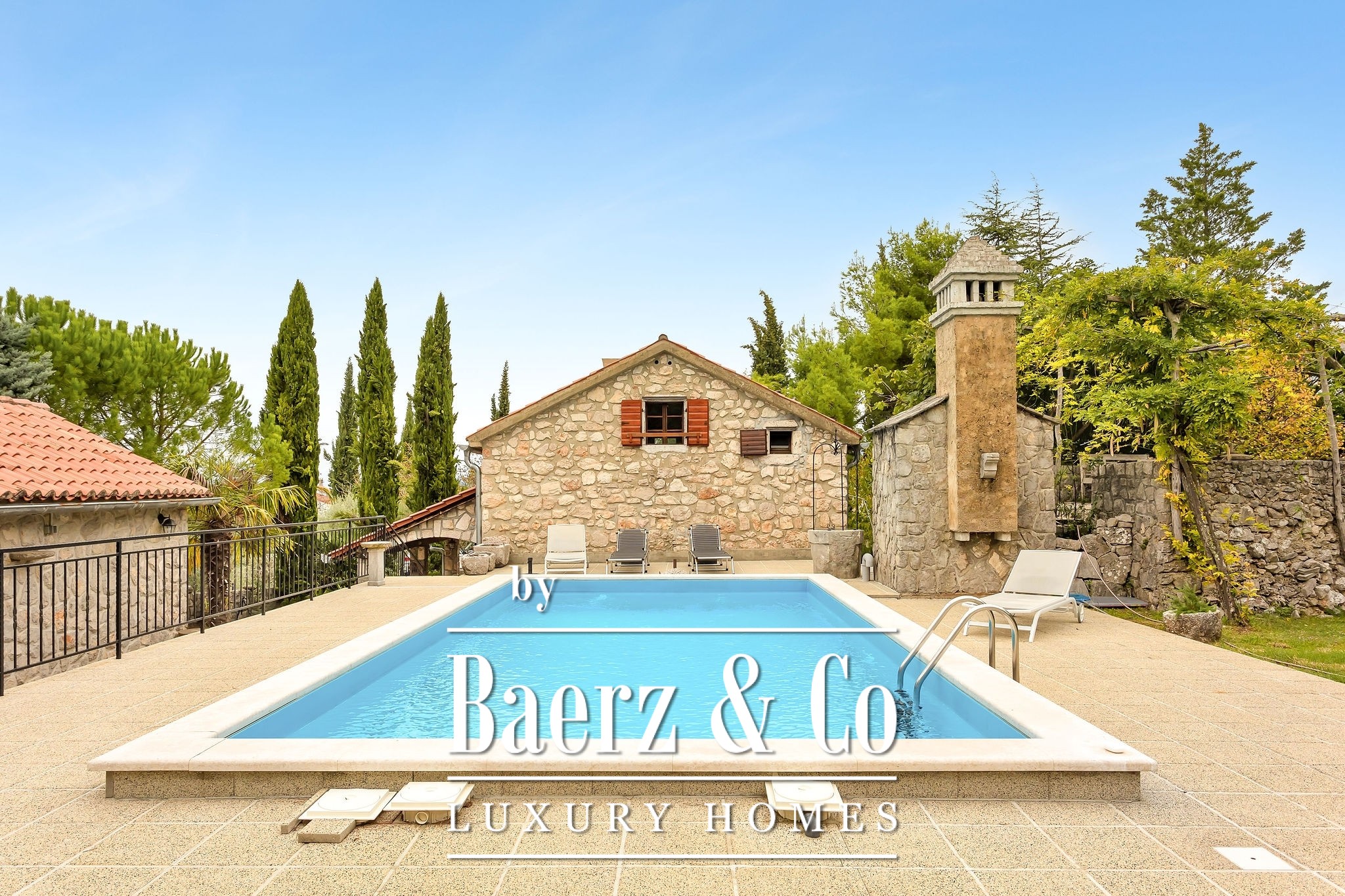 Located on the eastern part of Krk Island, in the picturesque village of Županje, this unique rustic stone house is set amidst verdant gardens and natural beauty. The estate spans 3,236 m² and offers everything you need for comfortable living, whether as a permanent residence or a holiday retreat. Designed for ultimate privacy, it guarantees absolute tranquillity, perfect for lounging by the pool, enjoying evenings by the outdoor grill, or stargazing in peaceful surroundings.
