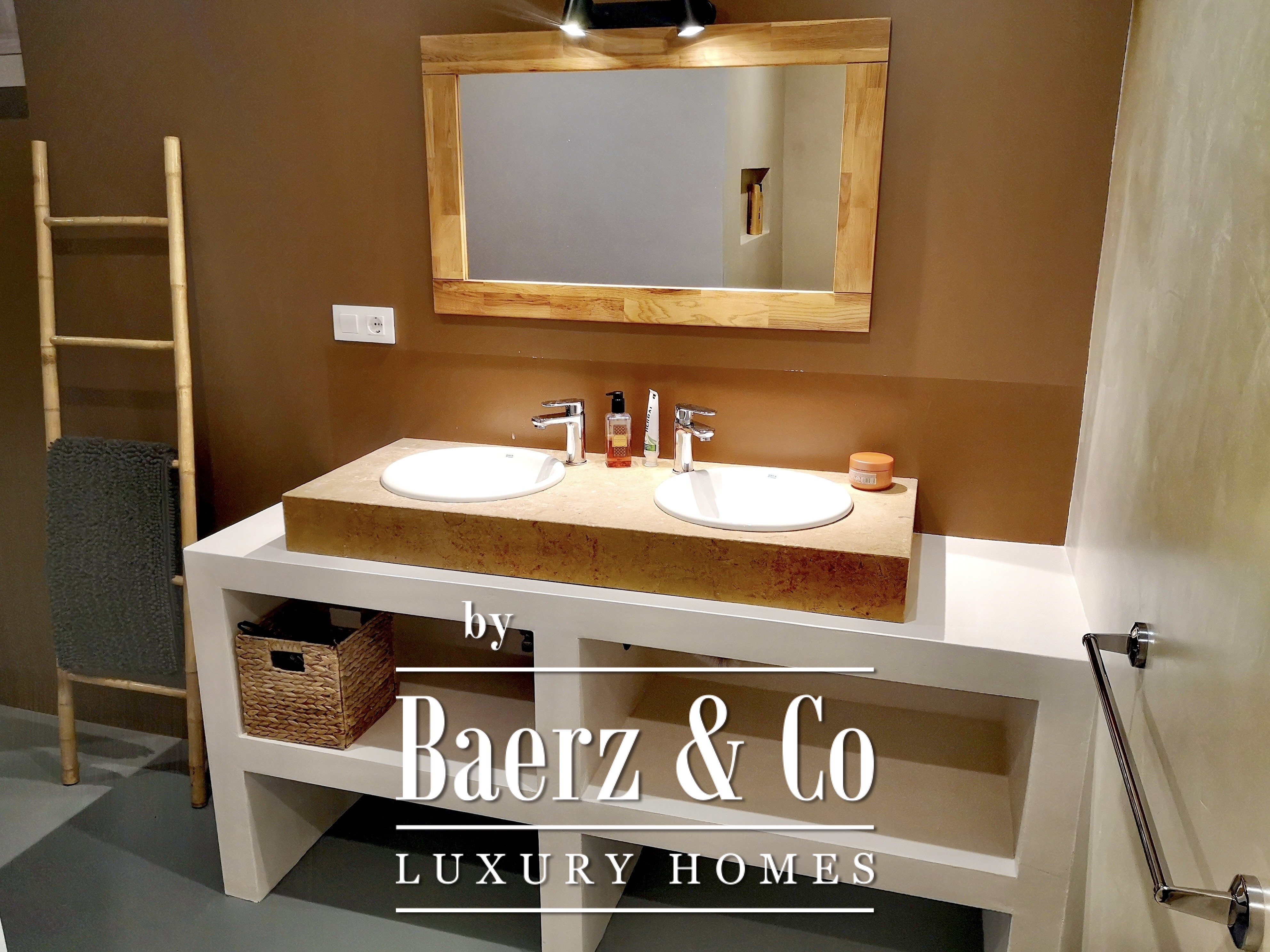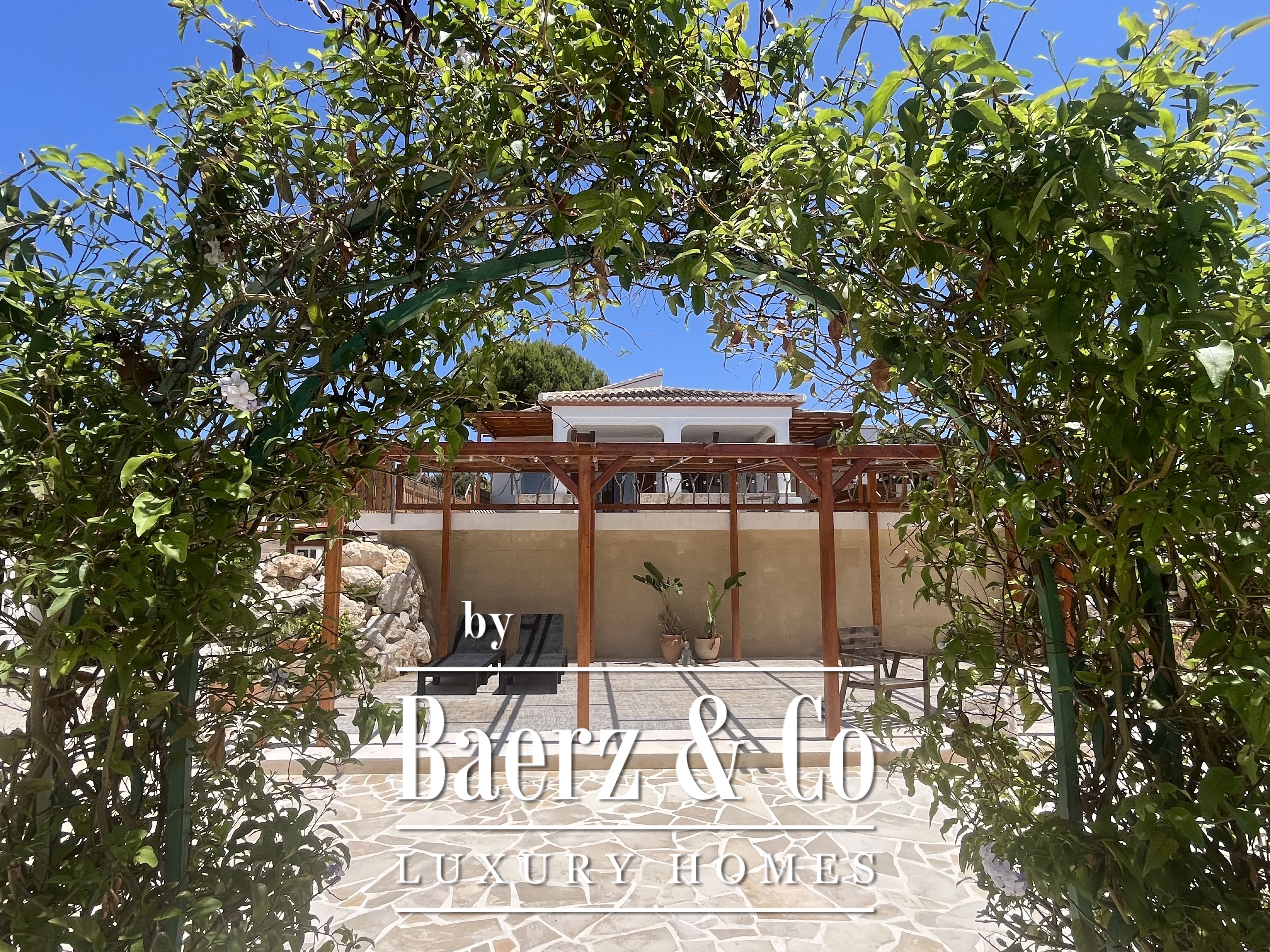 The main house delivers 455 m² of airy living, with five bedrooms and four bathrooms. Thoughtful refurbishment in 2021 elevates its bright interiors, bringing underfloor heating, Mitsubishi air conditioning, and double glazing throughout. The primary living areas flow directly to covered verandas and a 10 by 5 metre swimming pool, creating a seamless space for relaxation or entertaining. An office provides a focused retreat, underscoring the property’s potential for balanced living.