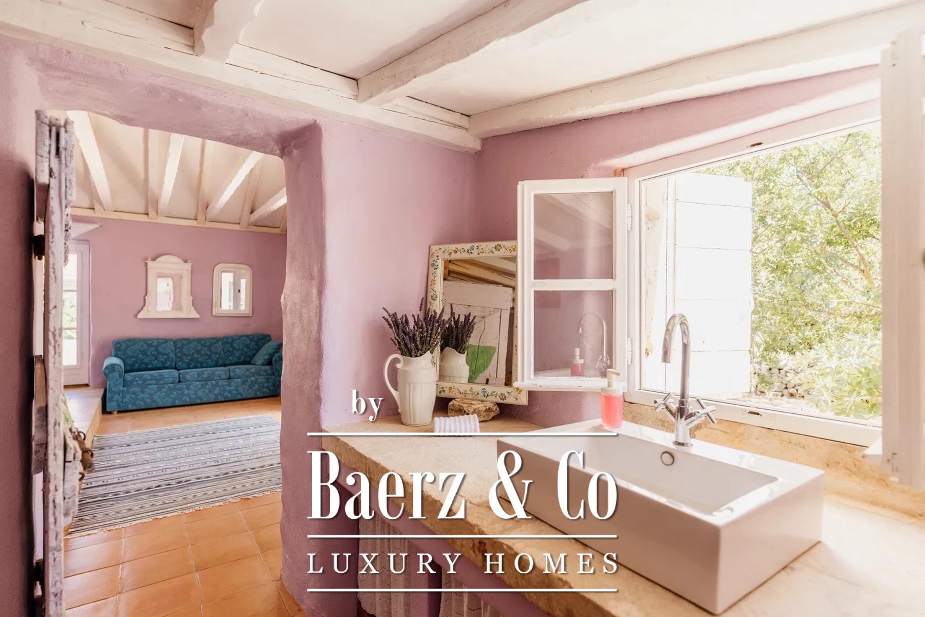 The property comprises four distinct houses arranged to ensure both connection and privacy. The principal residence features a rustic yet fully equipped kitchen, a generous living room, and a dining space designed for gatherings of ten or more. Above, two identical bedrooms of 30 m² each are paired with 8 m² en suite bathrooms, creating serene private quarters. A separate unit offers a 42 m² bedroom and 9 m² bathroom, while a further detached house of 50 m² provides open-plan living and bath amenities for effortless relaxation.