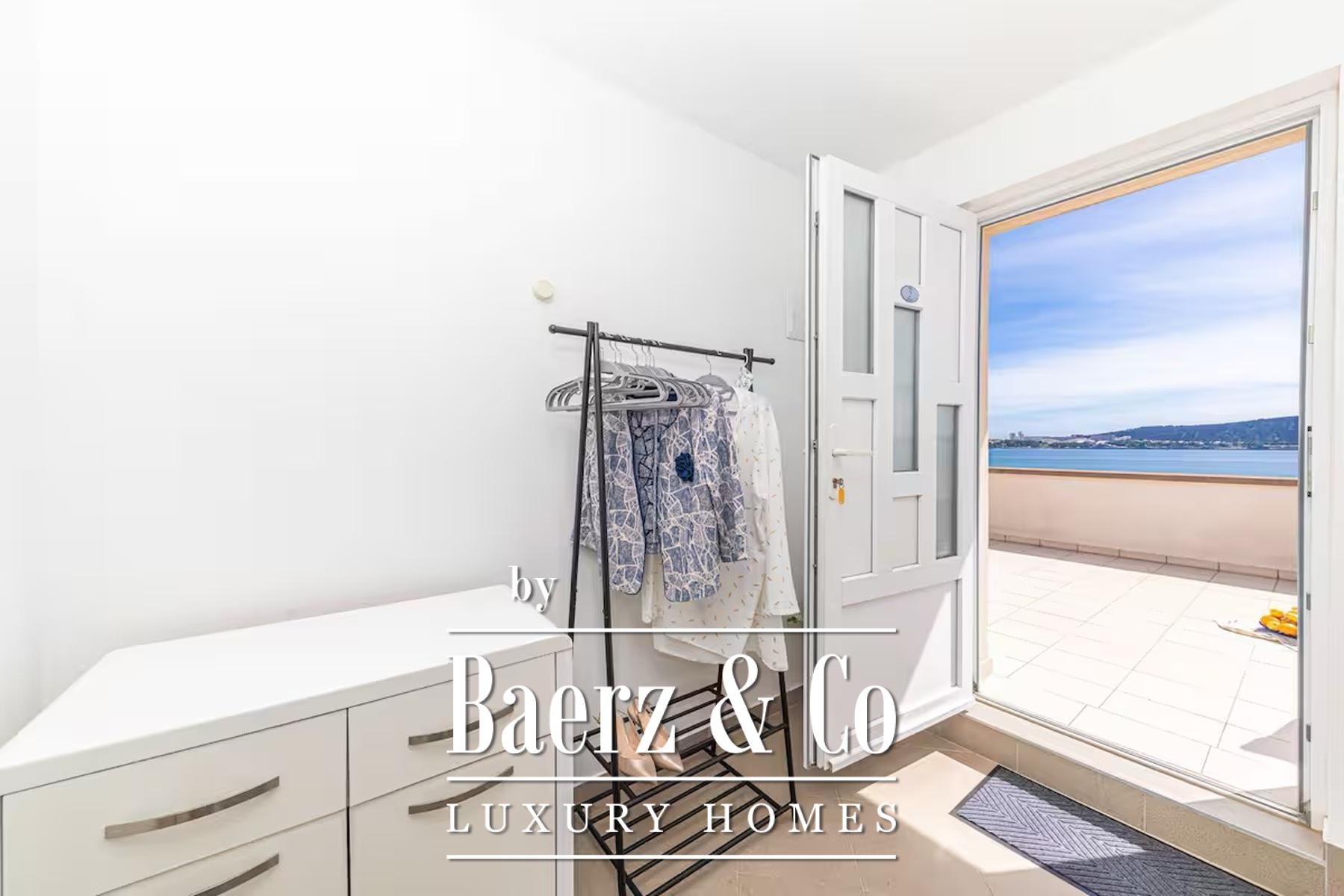 Wellness and leisurely pursuits are prioritized, with a basement offering a private garage, fitness zone, and games space. Outdoors, the south-facing private pool and jacuzzi promise peaceful afternoons, while a stone-clad, covered entertaining area with fireplace sits gracefully at the water’s edge. This house is defined by its uninterrupted sea views and a pace of life where every moment feels considered—a rare seafront house for sale in Kaštela where elegance speaks softly.
