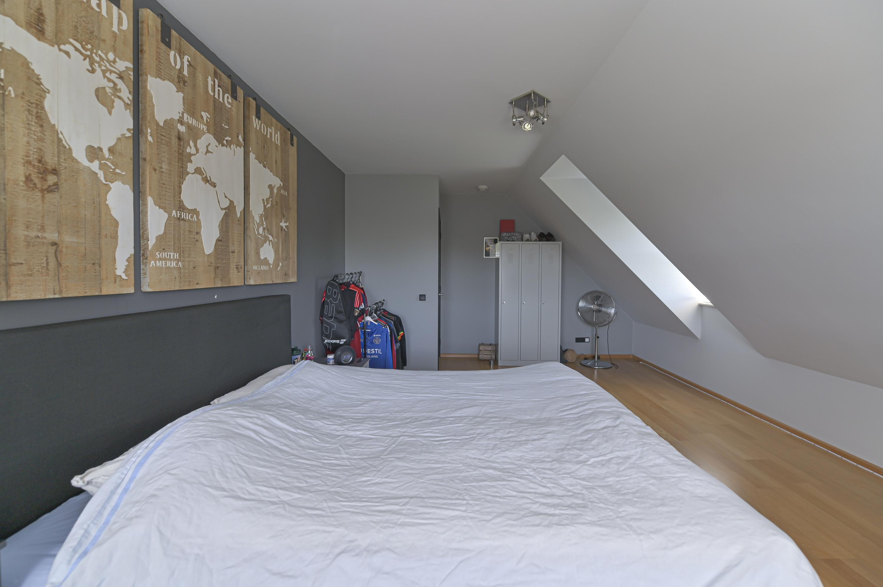 The exceptionally spacious garage provides room for multiple cars and is fully insulated. It features a separate boiler, electric sectional door, pedestrian door, toilet, and mezzanine with window. The high ceiling offers multiple possibilities. At the rear, part of the garage has been converted into a private bar with wooden flooring and air conditioning. French doors open directly to the garden.