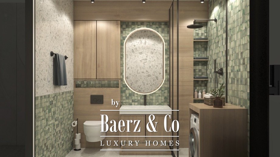 The building has 3 floors, while the apartment is on the 2nd floor. This apartment complex has 2 salt water pools. There is a berth for a boat taht is 70m2 away from the building. Each apartment has its own parking spot, and also, there is a n option of buying a garage spot for 20 000e. There are 5 buildings that have 3 floors in this apartment complex and each one has 5 apartments. This building will be finished in December 2026.