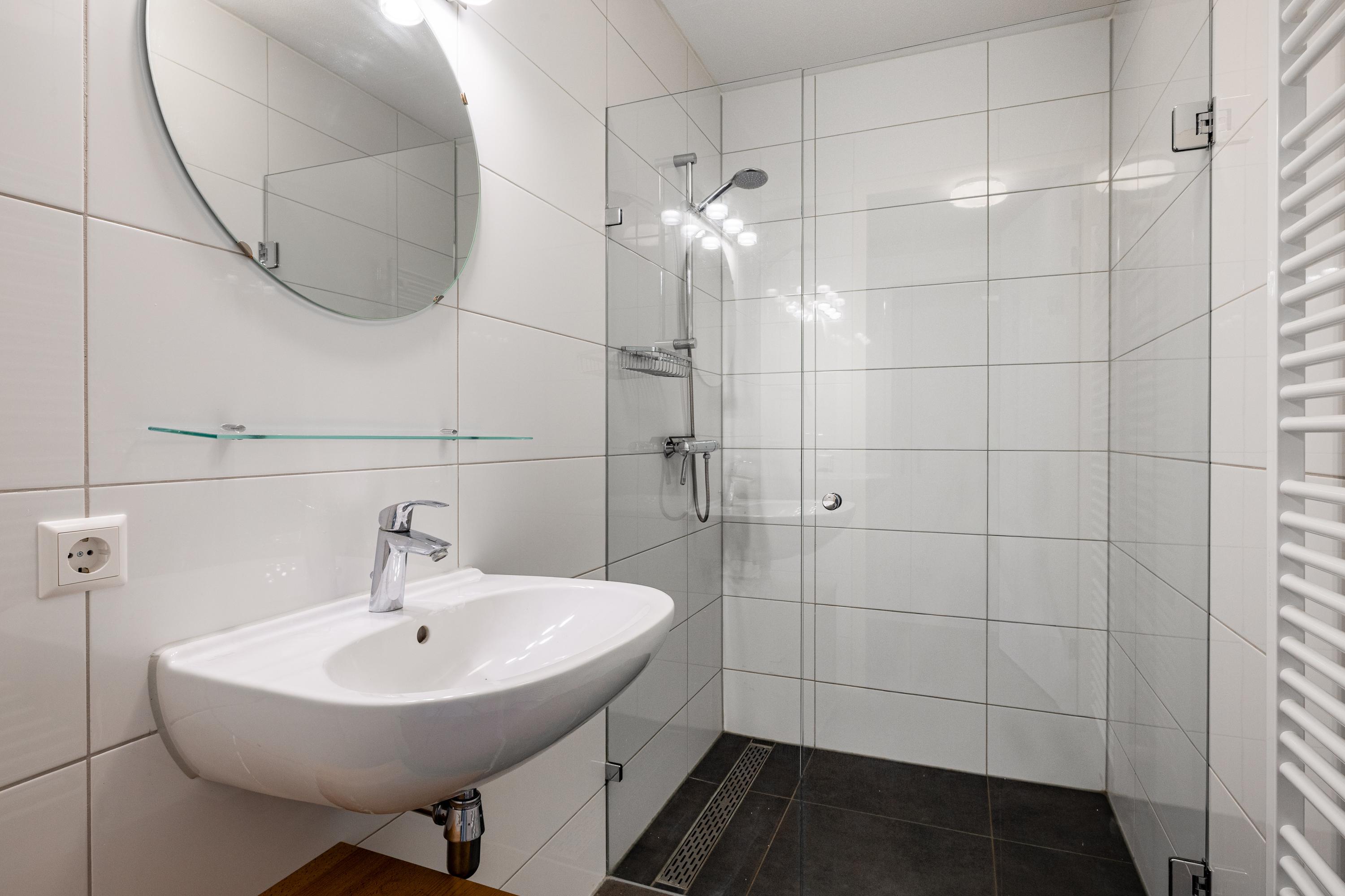 The en-suite bathroom is stylishly and comfortably finished and includes a bathtub, spacious walk-in shower, double washbasin and high-quality materials throughout. Everything is generously designed and perfectly suited for those who wish to live on one level without sacrificing luxury or comfort. The second bathroom is ideal for guests or a (small) family, ensuring everyone has their own space.