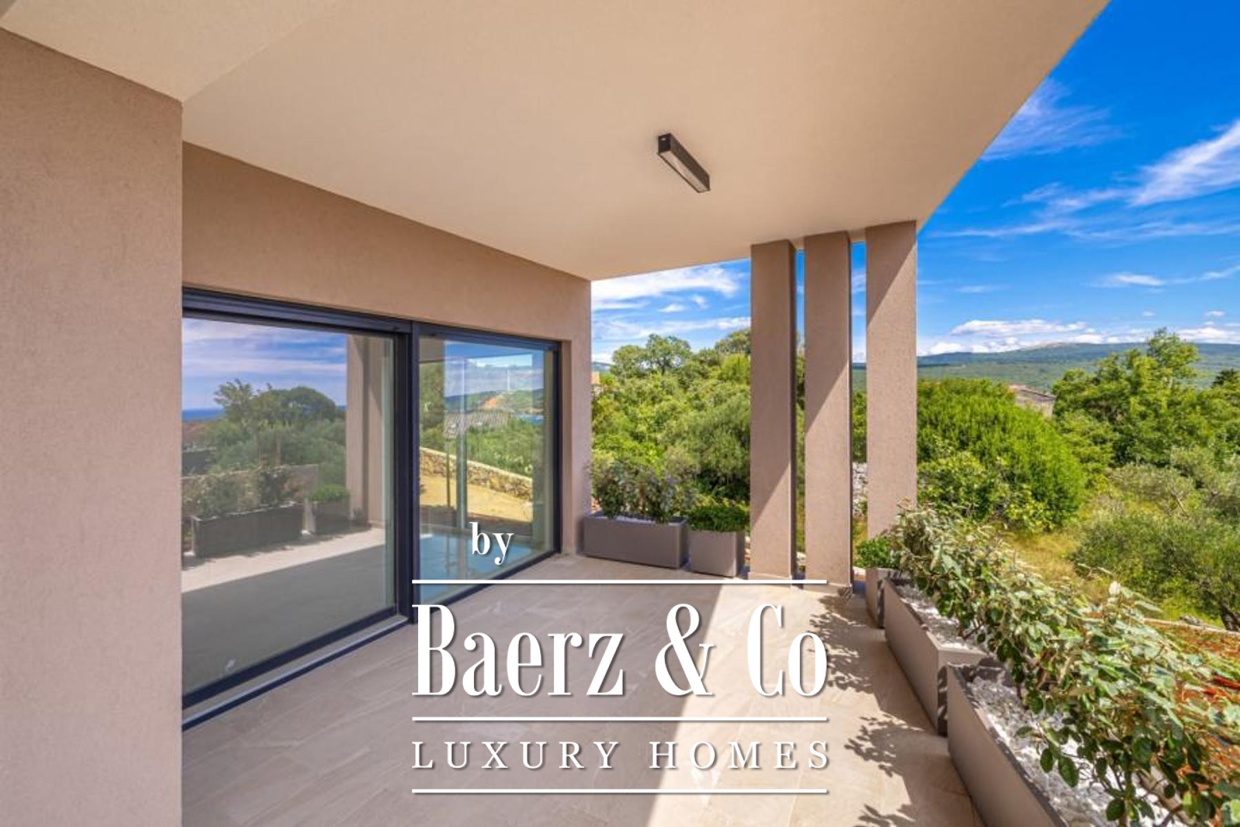 Modern newly built villa on the island of Krk, with a living area of 200 m², situated on a 614 m² plot. This property offers top-level comfort, carefully selected design, and high-quality materials, with spacious terraces that provide a stunning sea view.The ground floor features a large open-concept living space with an elegant fireplace, a kitchen, and a dining area with direct access to the terrace. There is also a wellness area with a sauna and bathroom, a guest toilet, entrance hallway, and a practical storage room.Upstairs, there are three spacious bedrooms, each with its own en-suite bathroom and access to a balcony or terrace, ensuring privacy and comfort. Additionally, there is a separate laundry room on this floor. All bathrooms are equipped with underfloor heating, providing a cozy atmosphere