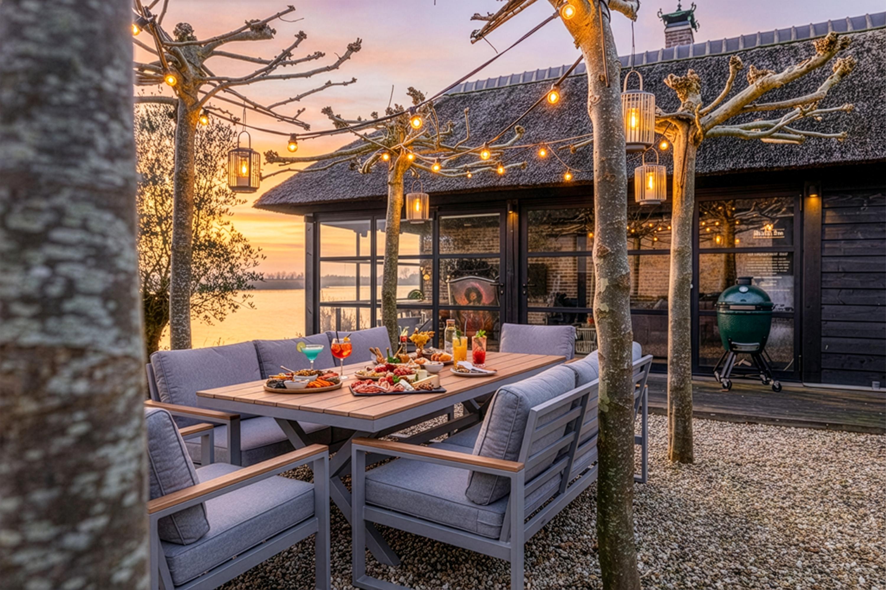 The garden surrounding the villa has been carefully landscaped and offers multiple places to enjoy outdoor living. An absolute highlight is the new outdoor lounge with bar and open fireplace. Here you can sit sheltered and in a cozy atmosphere, even when the evenings grow longer and temperatures drop. This is the perfect place for long dinners, drinks with friends and relaxing moments with a view of the Lek.