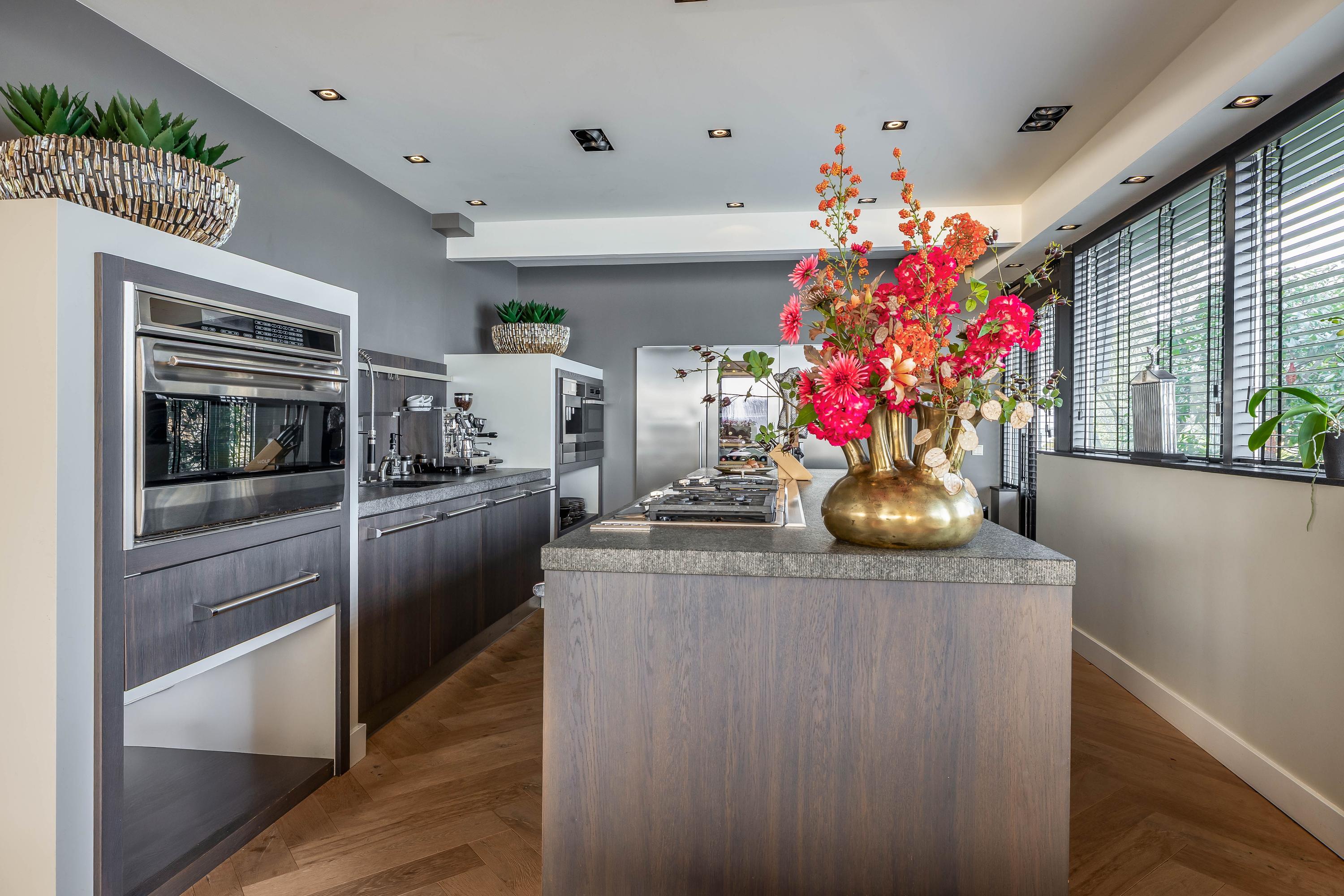 The kitchen forms the stylish centerpiece of the home. This is a place where cooking and spending time together come together effortlessly. The layout is spacious, with plenty of workspace and high-quality built-in appliances. Ideal for everyday use, but also perfect for those who love entertaining and cooking extensively. The finish is luxurious and warm, matching the character of the villa.