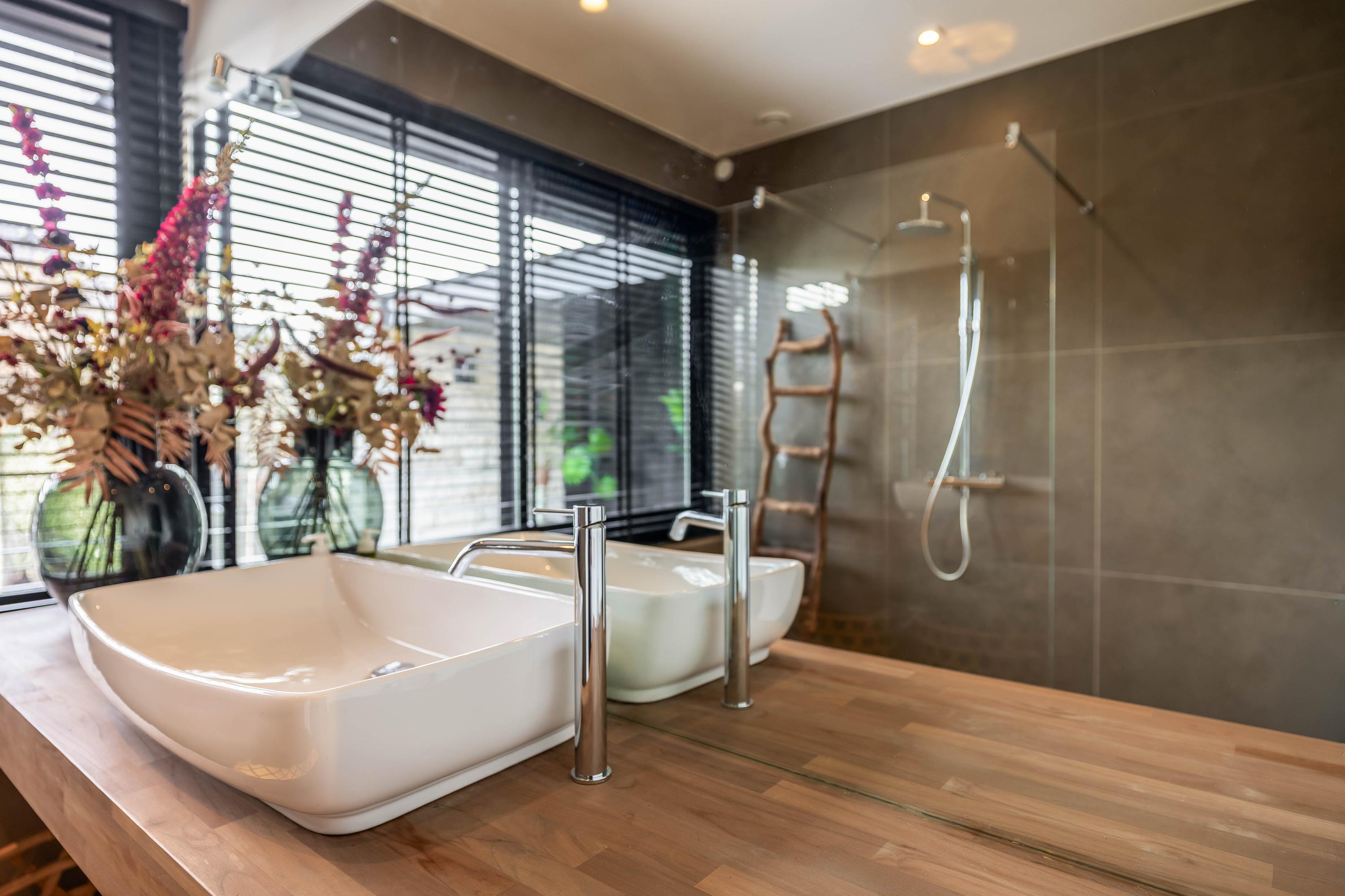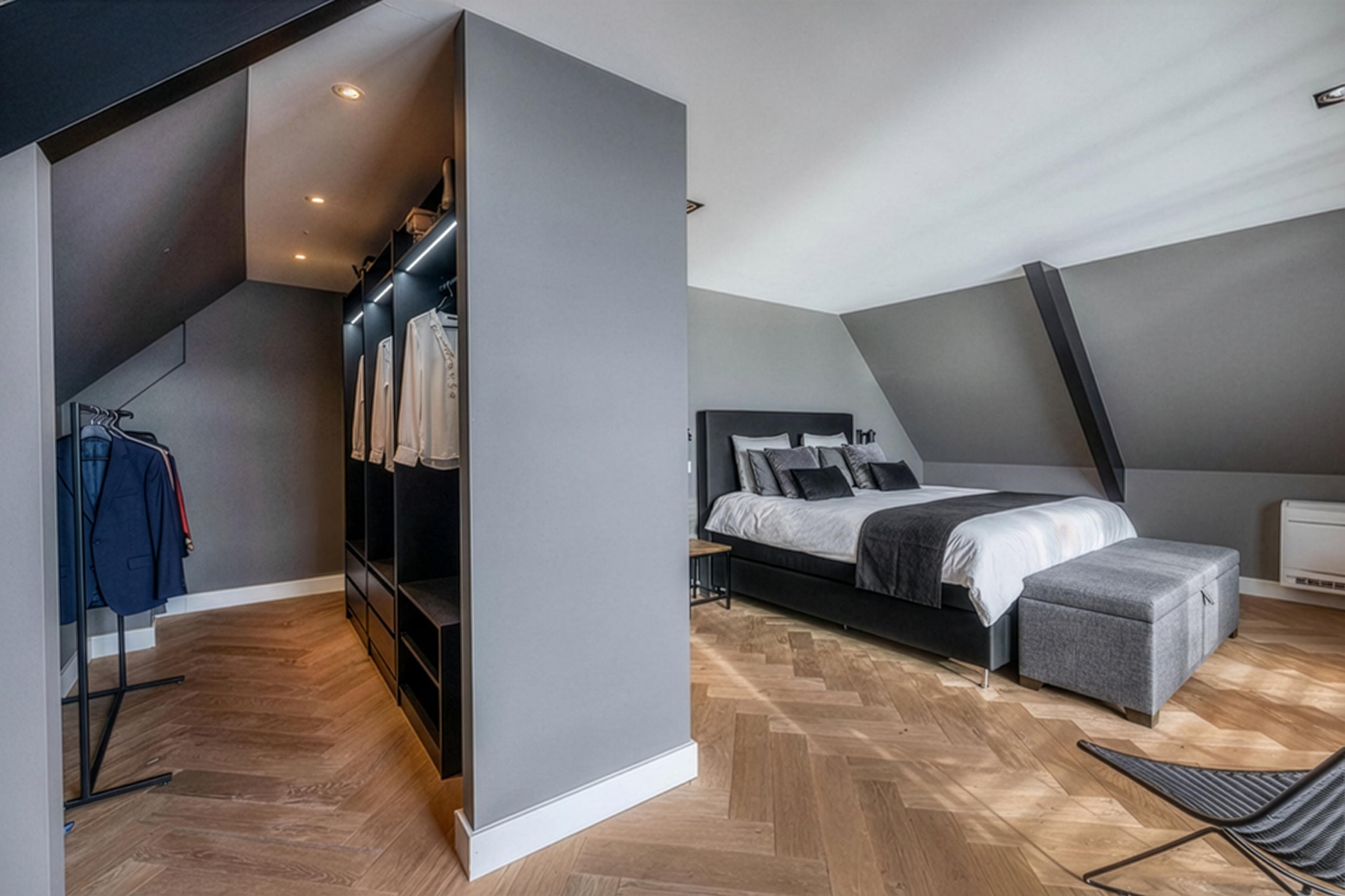 The villa features three very spacious bedrooms, spread across the floors. Each bedroom has its own luxurious bathroom and a walk-in closet. This ensures optimal comfort and privacy, both for residents and guests. The master bedroom is a true suite, offering space, tranquility and a beautiful view over the water. The bathrooms are stylishly finished and fully equipped, creating a luxury hotel feeling every single day.