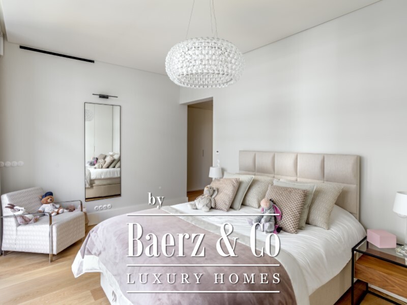 High decorative ceilings at 2.8 m provide a sense of airiness, while abundant natural light filters through wide rooms finished with meticulous attention. Estremoz marble details and built-in wardrobes signal a commitment to enduring materials and thoughtful design. The layout unfolds gracefully: an entrance hall leads to the living and dining rooms, a kitchen with Miele appliances, a powder room, a versatile bedroom or office, and four suites, two featuring walk-in closets. Underfloor heating in bathrooms, air conditioning in all rooms, and central heating guarantee year-round comfort.