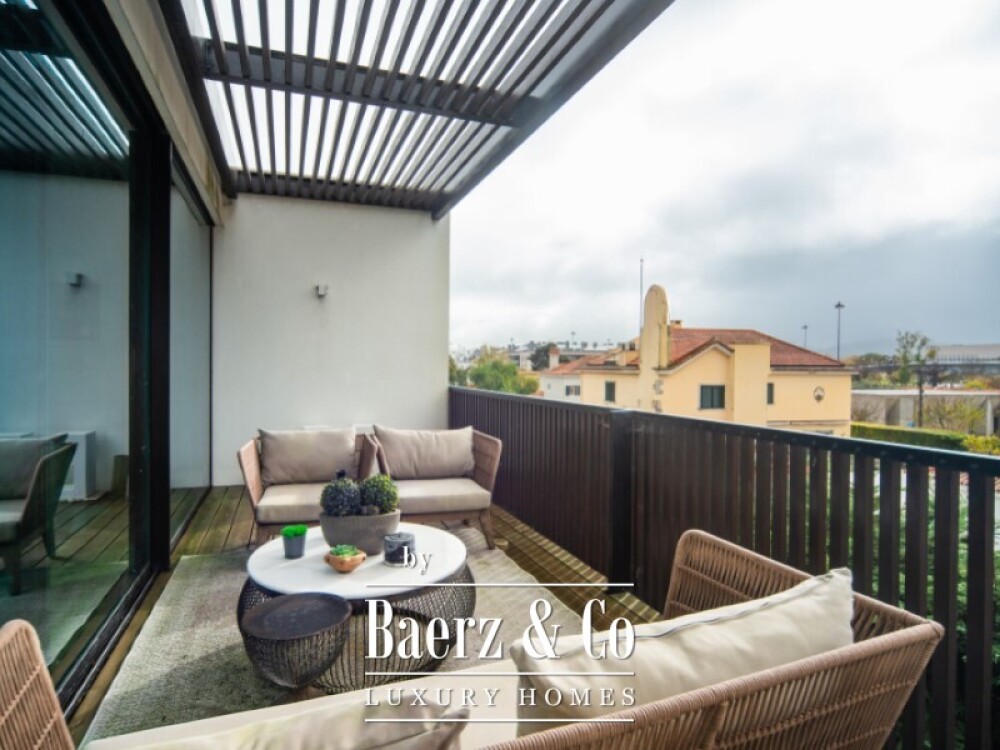 Apartment Lisboa anchors this rare offering in the heart of Restelo, where the legacy of a former palacete finds new life. Inside the Vila Garcia development, this 180 m² two-bedroom residence orchestrates light, space and restrained elegance across a contemporary floor plan. Designed by Pedro Ferreira Pinto, the apartment’s open living and dining area benefits from retractable windows, drawing the river views and natural light into daily life. A main terrace opens from the living room, offering a natural extension for relaxation or contemplation, while a separate terrace invites outdoor dining. The fully equipped kitchen is complemented by a separate laundry area and a guest bathroom. Both bedrooms offer en-suite refinement, with the master suite balancing privacy and comfort.