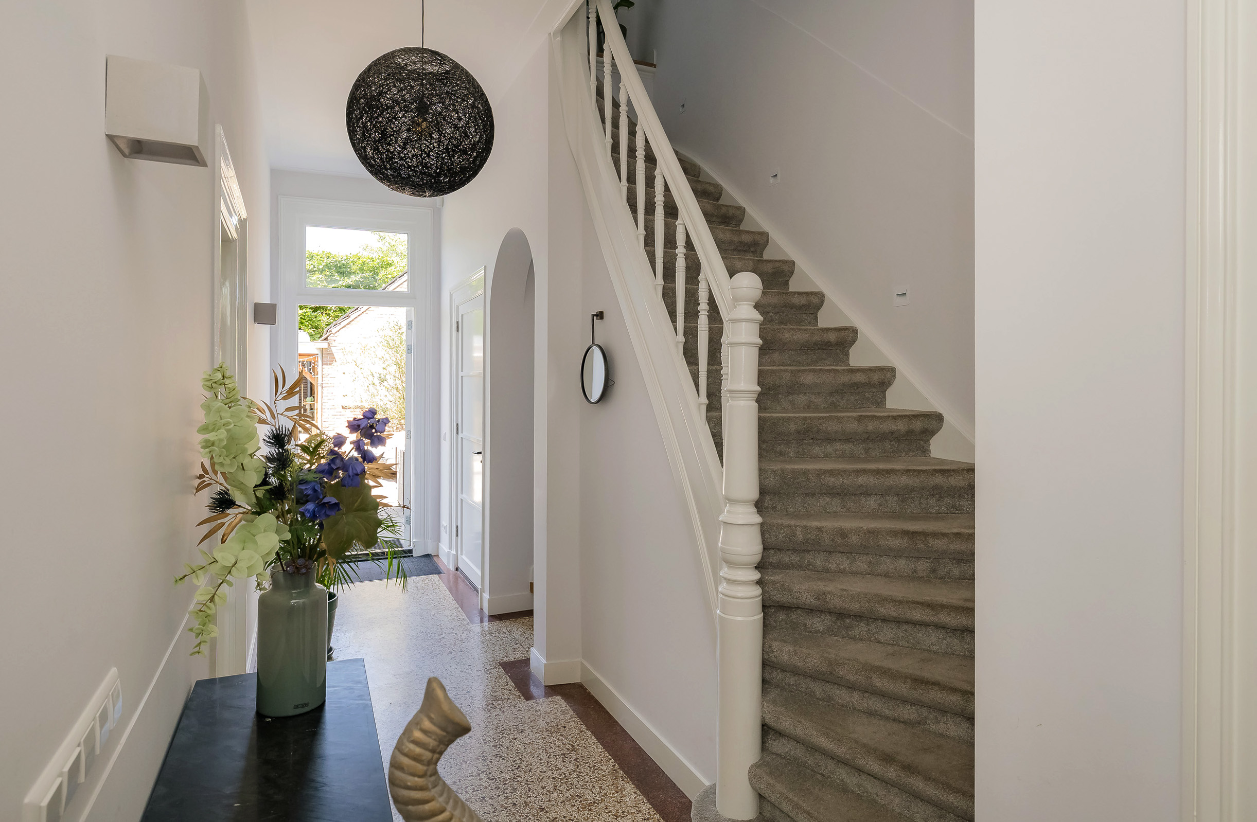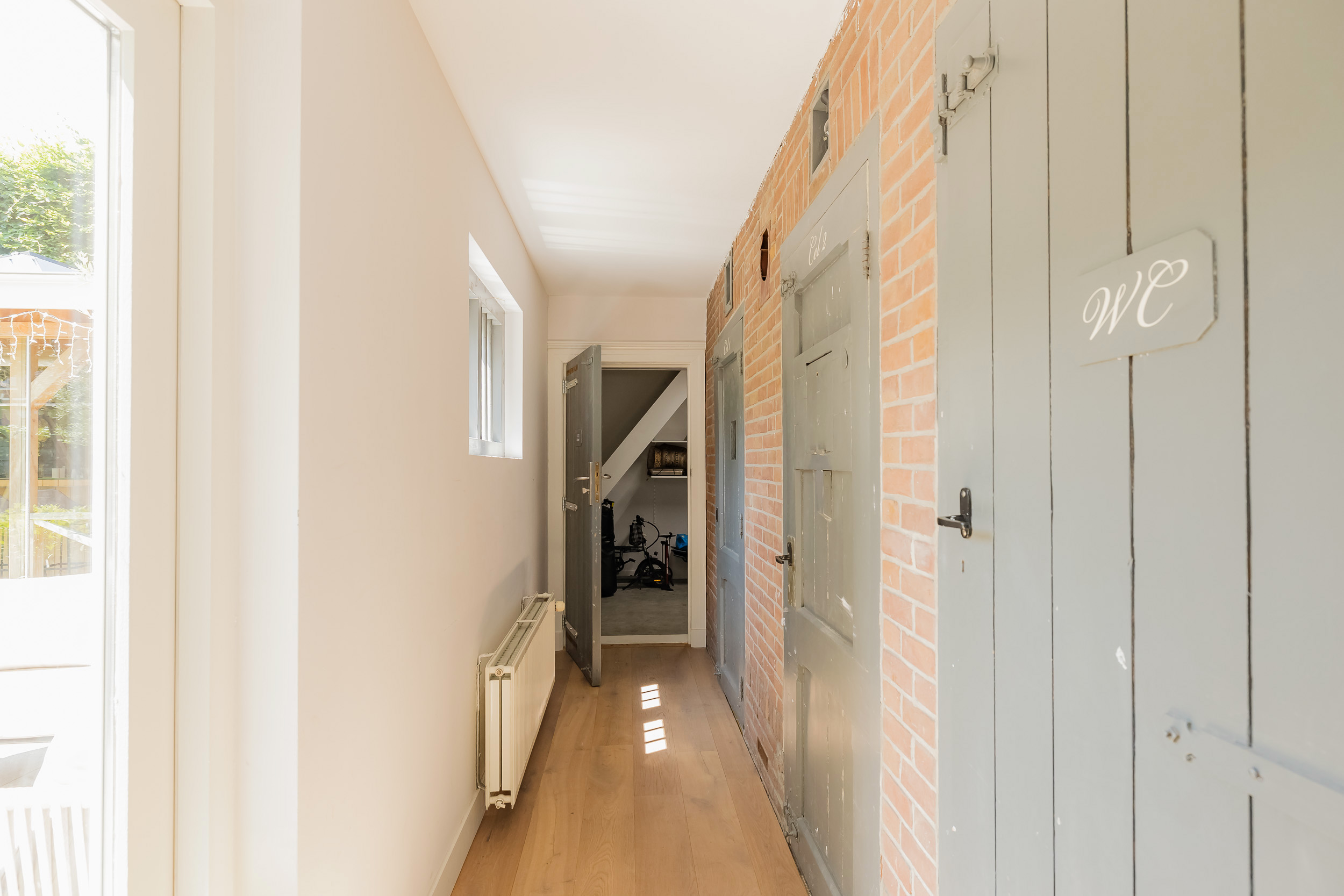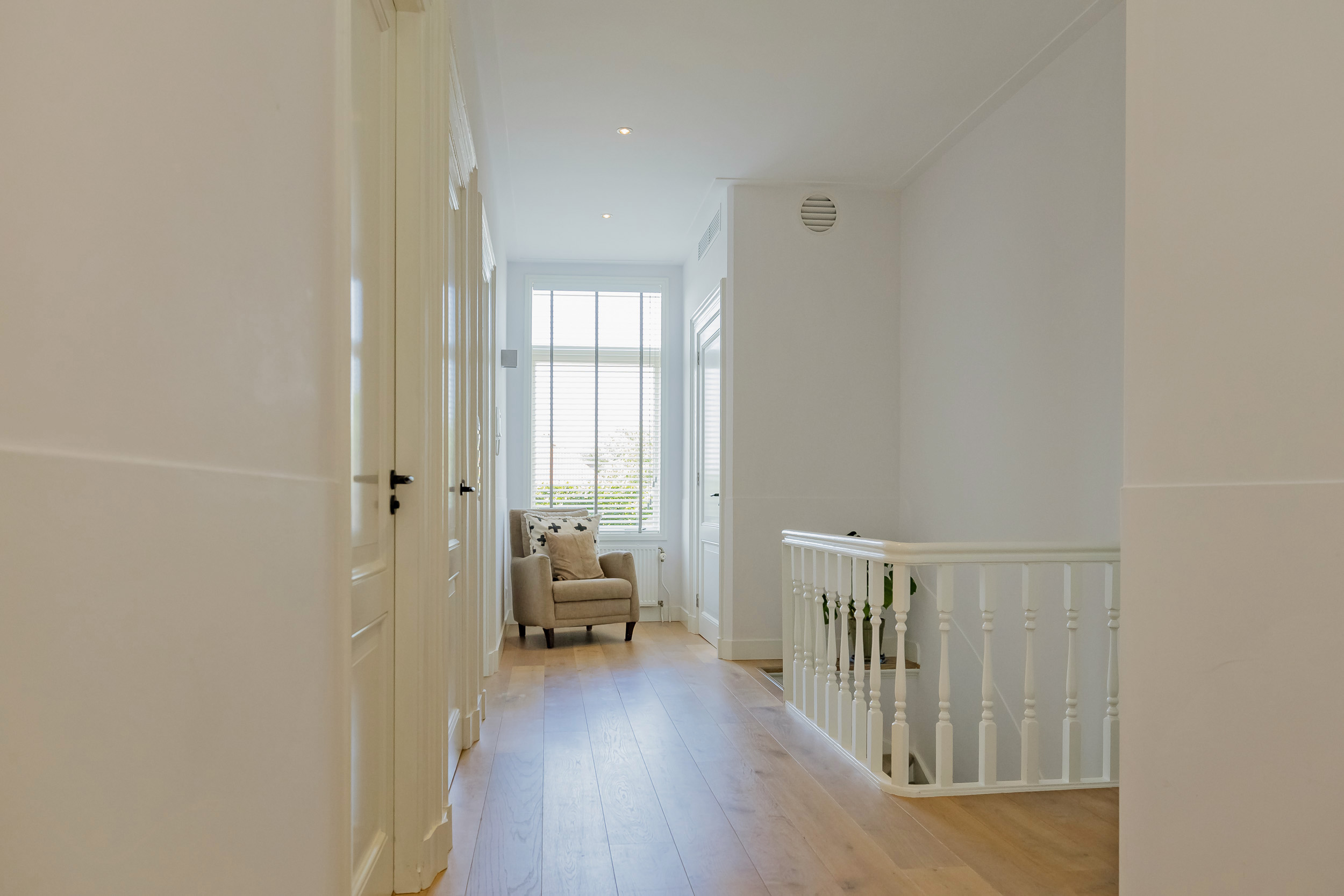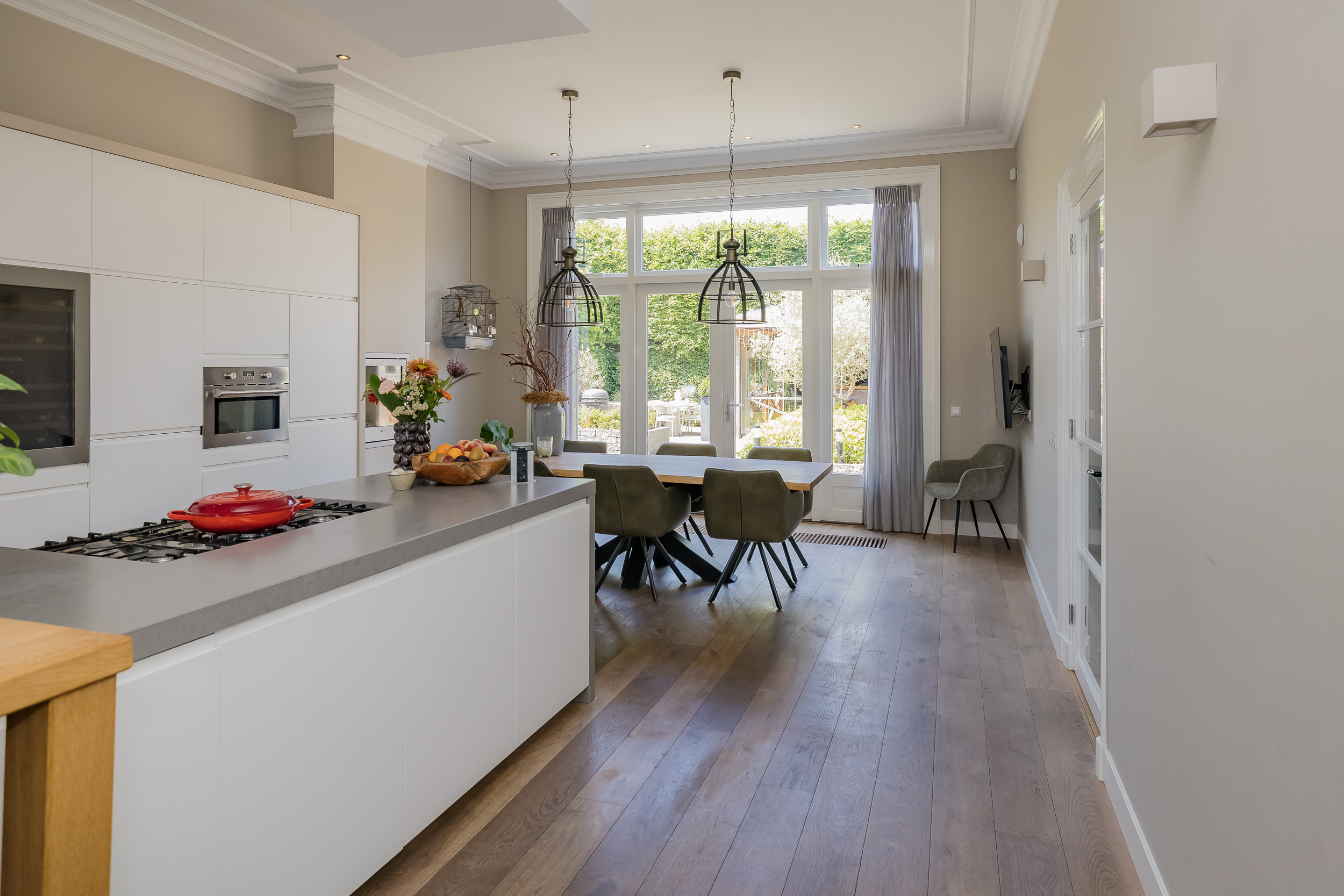 This very stately detached townhouse (municipal monument) with indoor large garage and driveway for 2 cars has been completely renovated while maintaining character. It is located on the most popular part of the Heereweg, in the center of the village and has been very luxuriously renovated in 2018. The monumental beech trees complete the whole picture. The attractive Square with its many terraces, elementary school and stores are within walking distance.