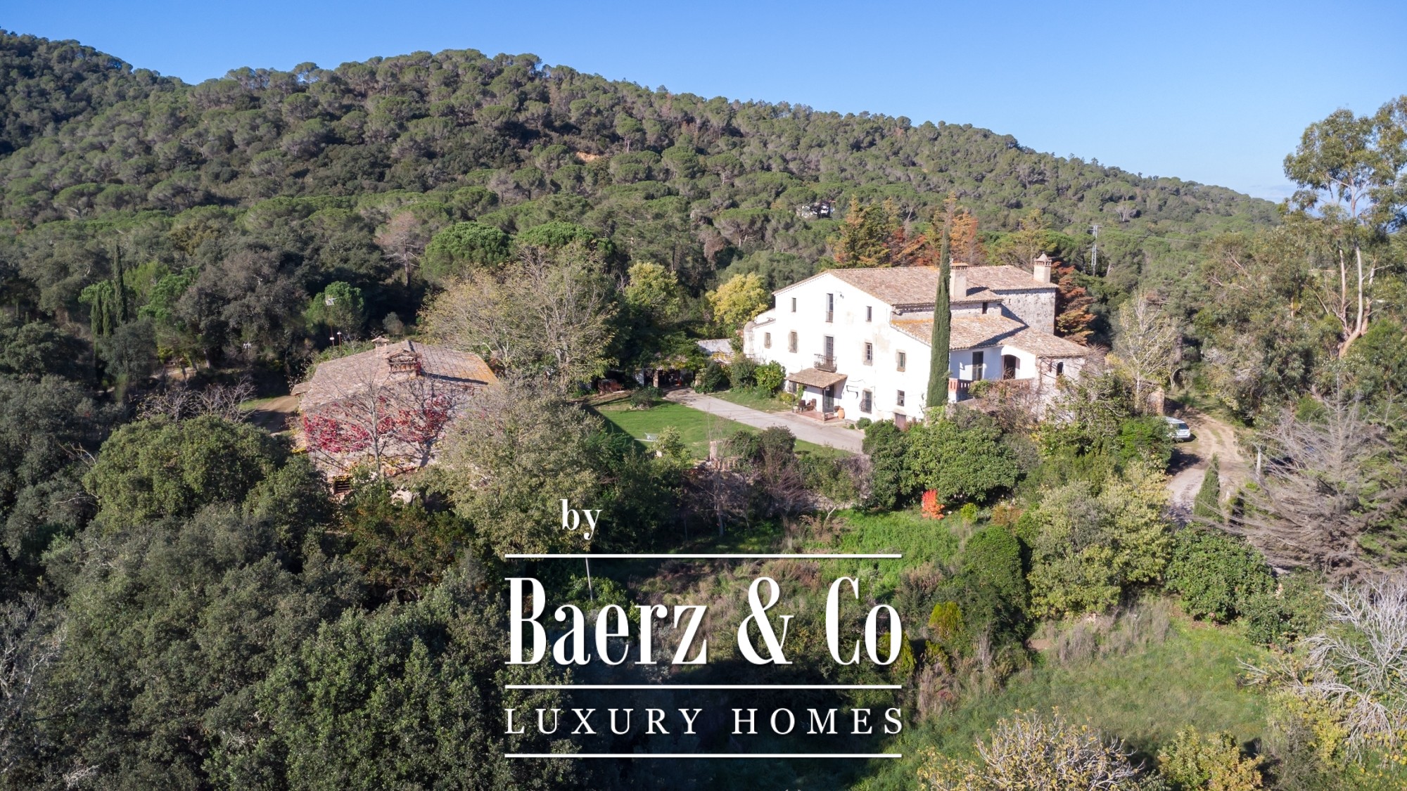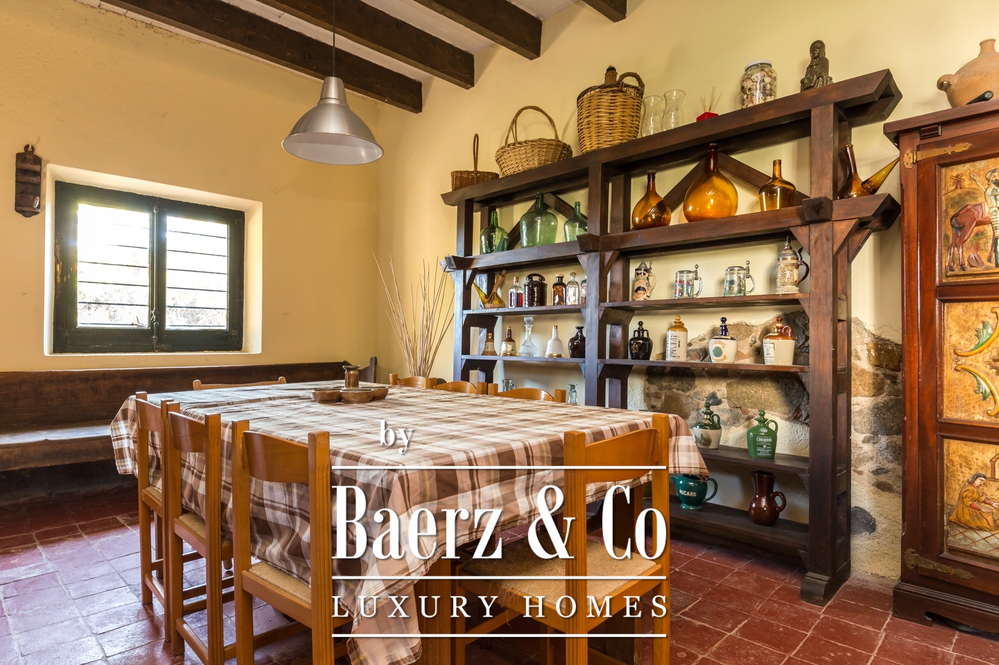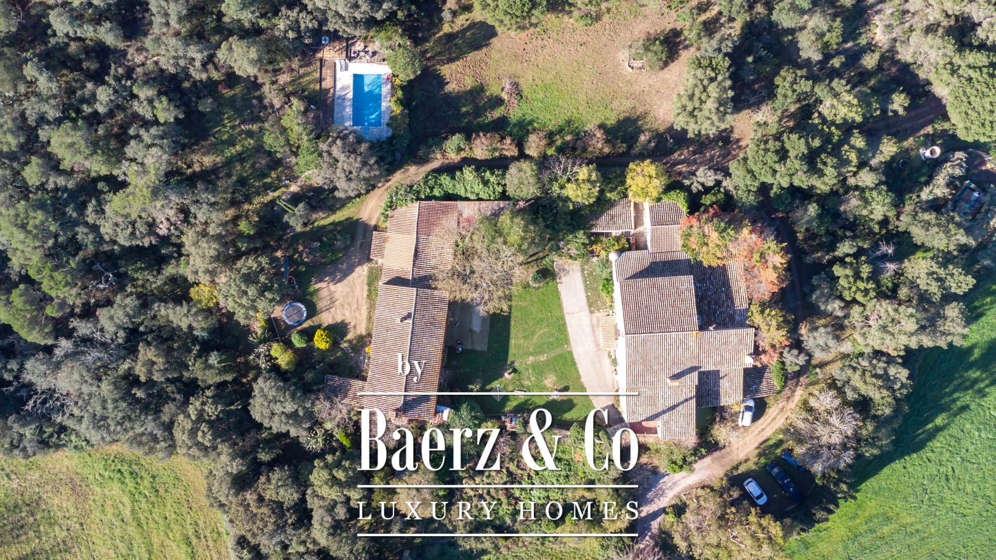 Farmhouse Llagostera captures timeless rural elegance on a 12-hectare expanse, blending forest, farmland, and manicured gardens. This 1,567 m² built area unfolds across distinct, functional buildings, the centerpiece being a traditional farmhouse constructed in 1852. The property enjoys a privileged rural setting, moments from the beaches of the Costa Brava, yet entirely secluded with panoramic mountain and county views.