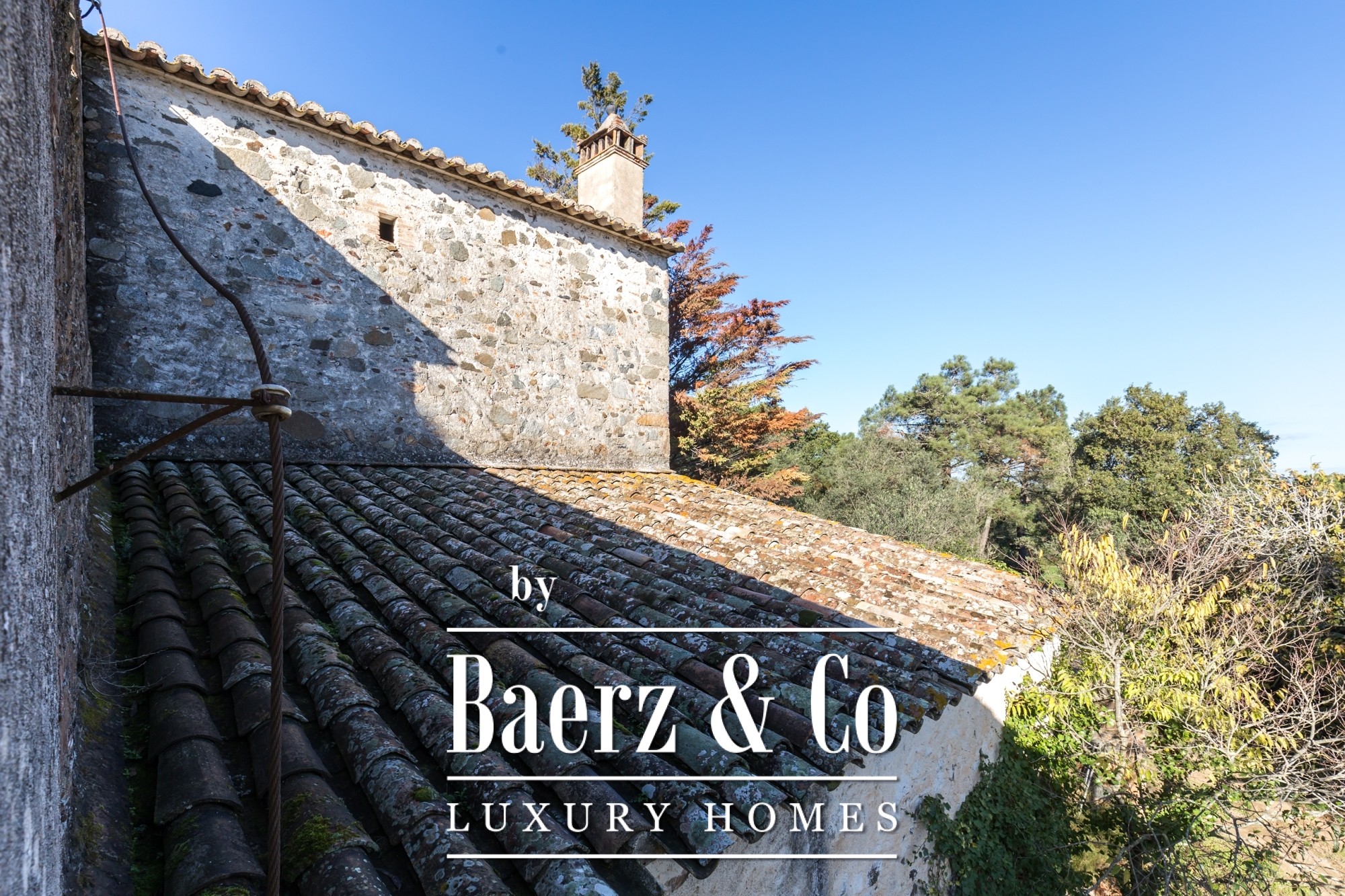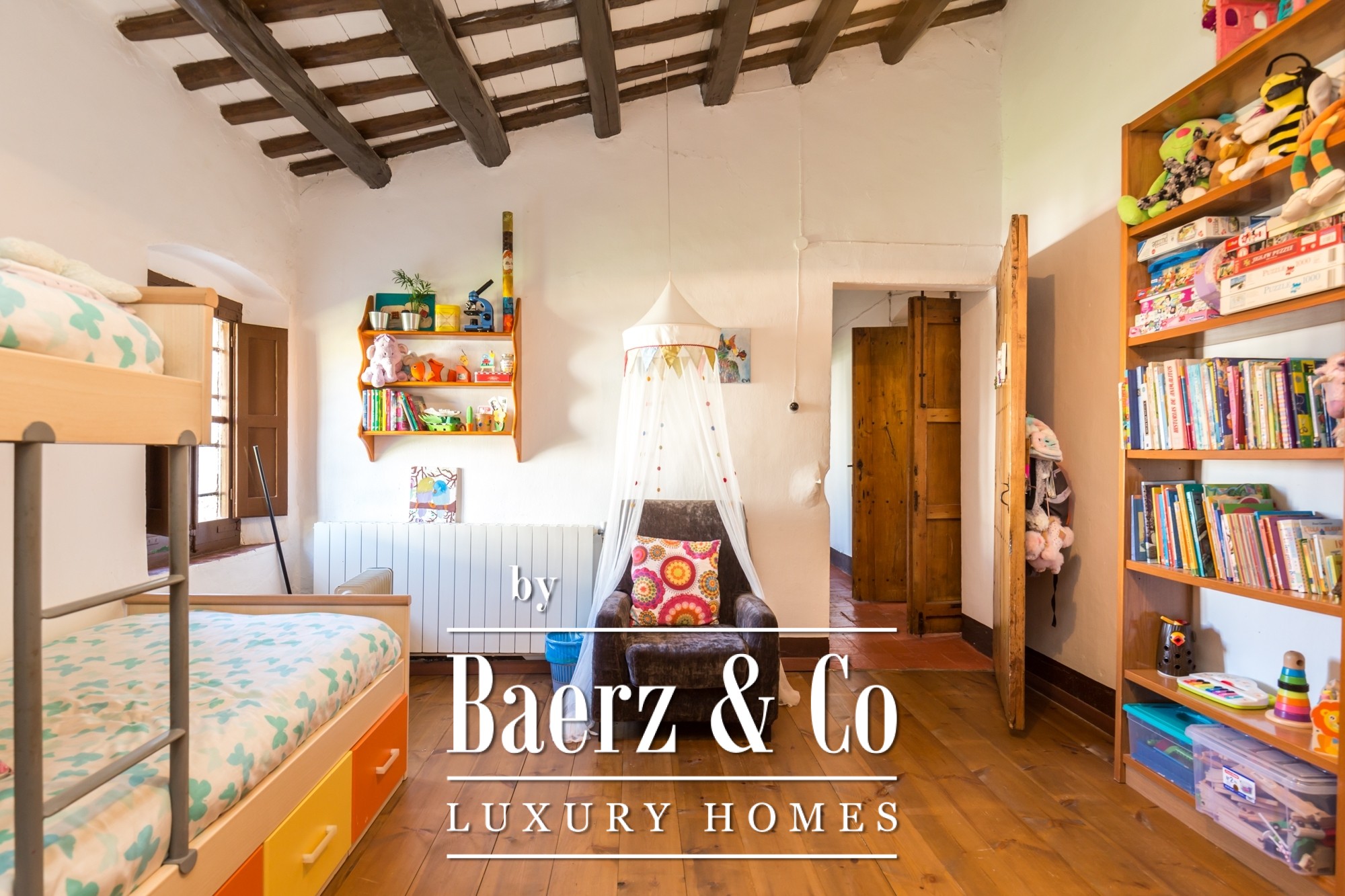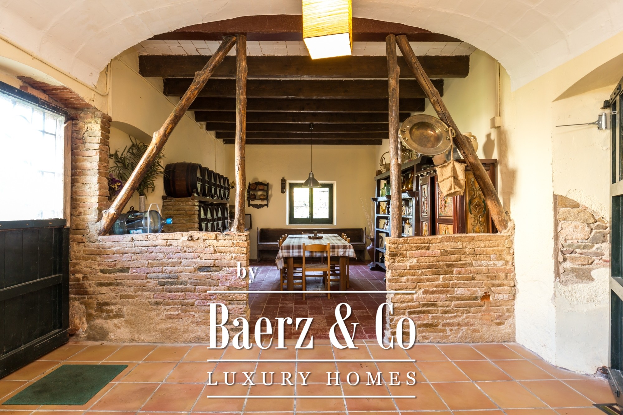 Farmhouse Llagostera captures timeless rural elegance on a 12-hectare expanse, blending forest, farmland, and manicured gardens. This 1,567 m² built area unfolds across distinct, functional buildings, the centerpiece being a traditional farmhouse constructed in 1852. The property enjoys a privileged rural setting, moments from the beaches of the Costa Brava, yet entirely secluded with panoramic mountain and county views.
