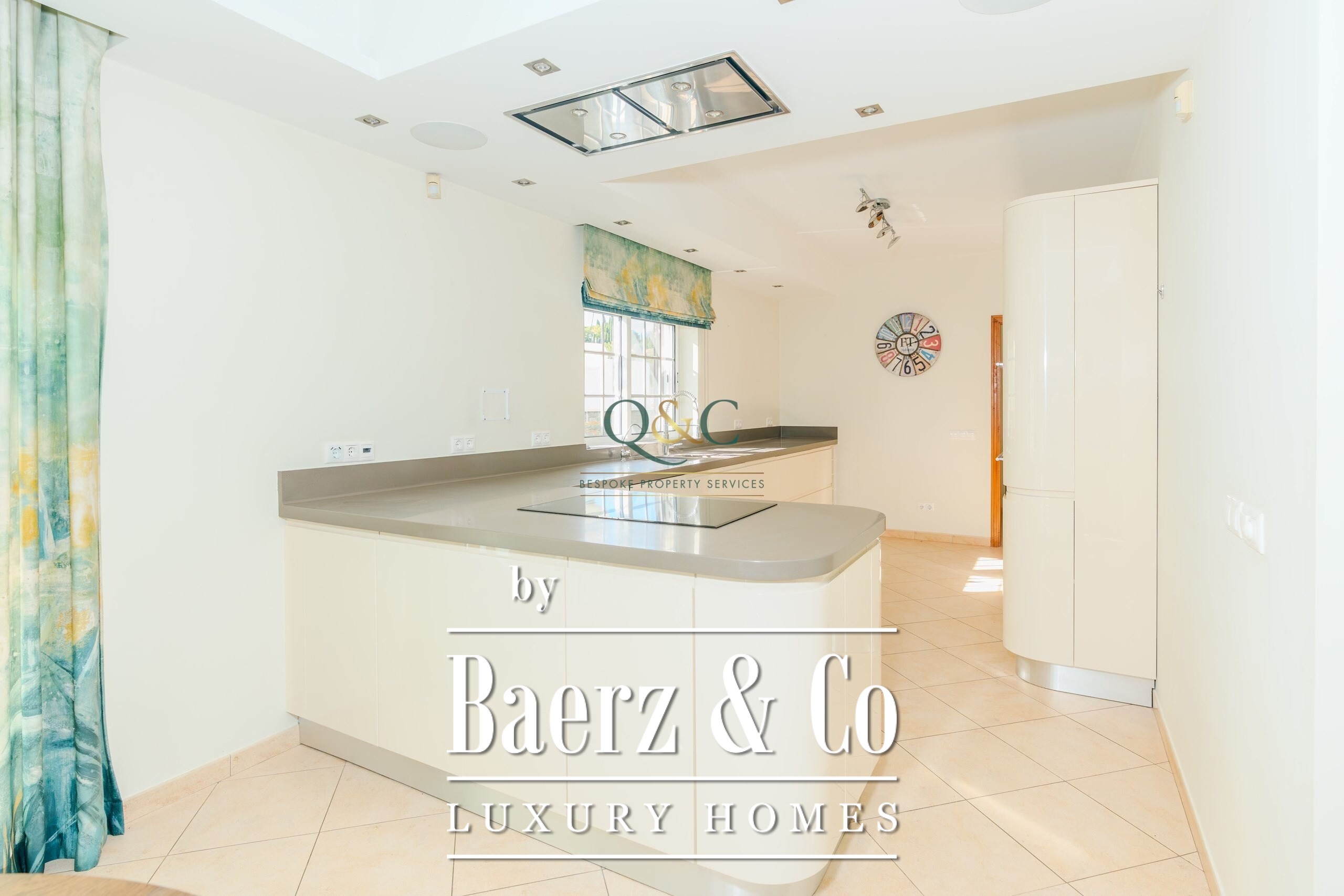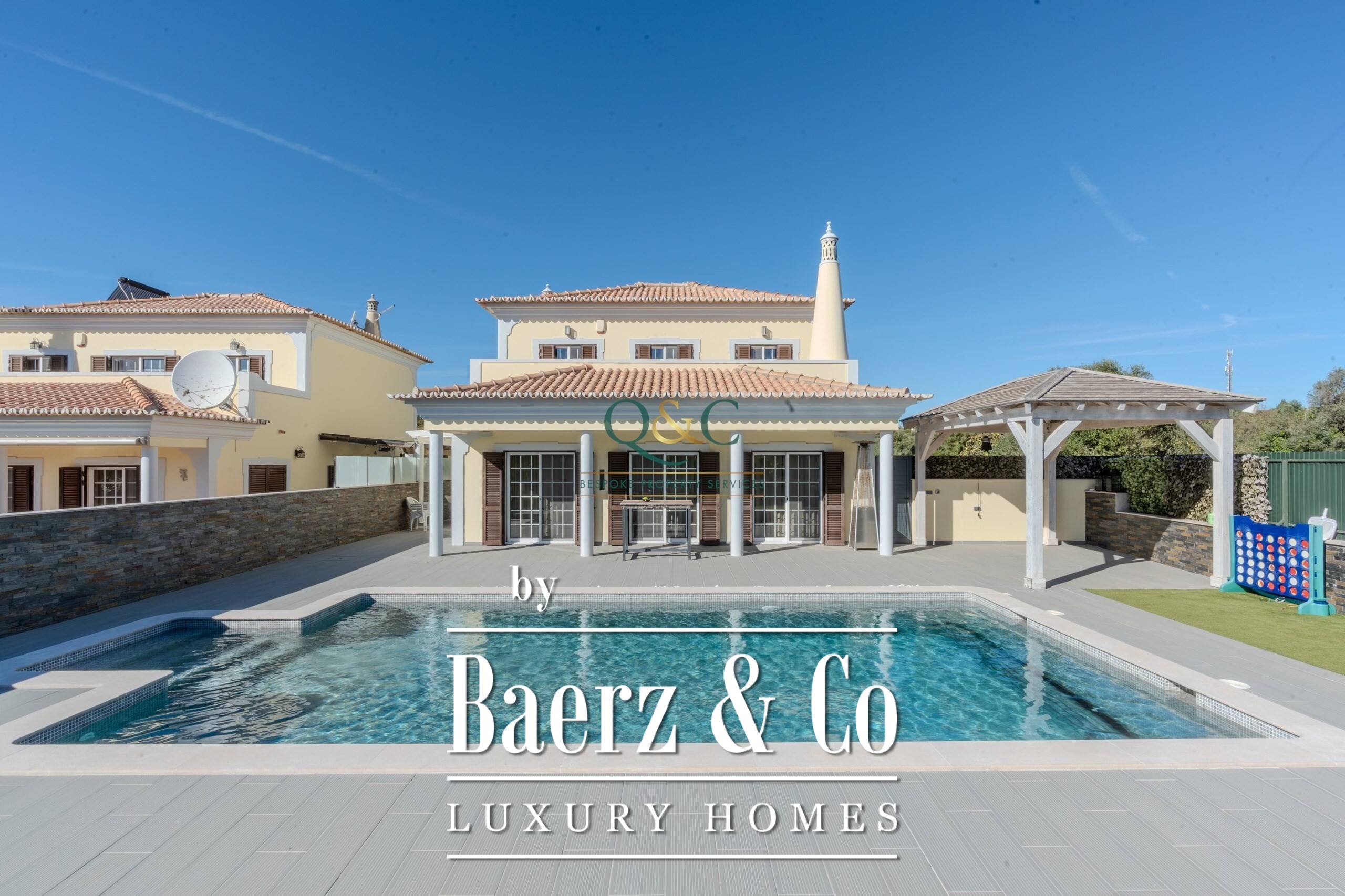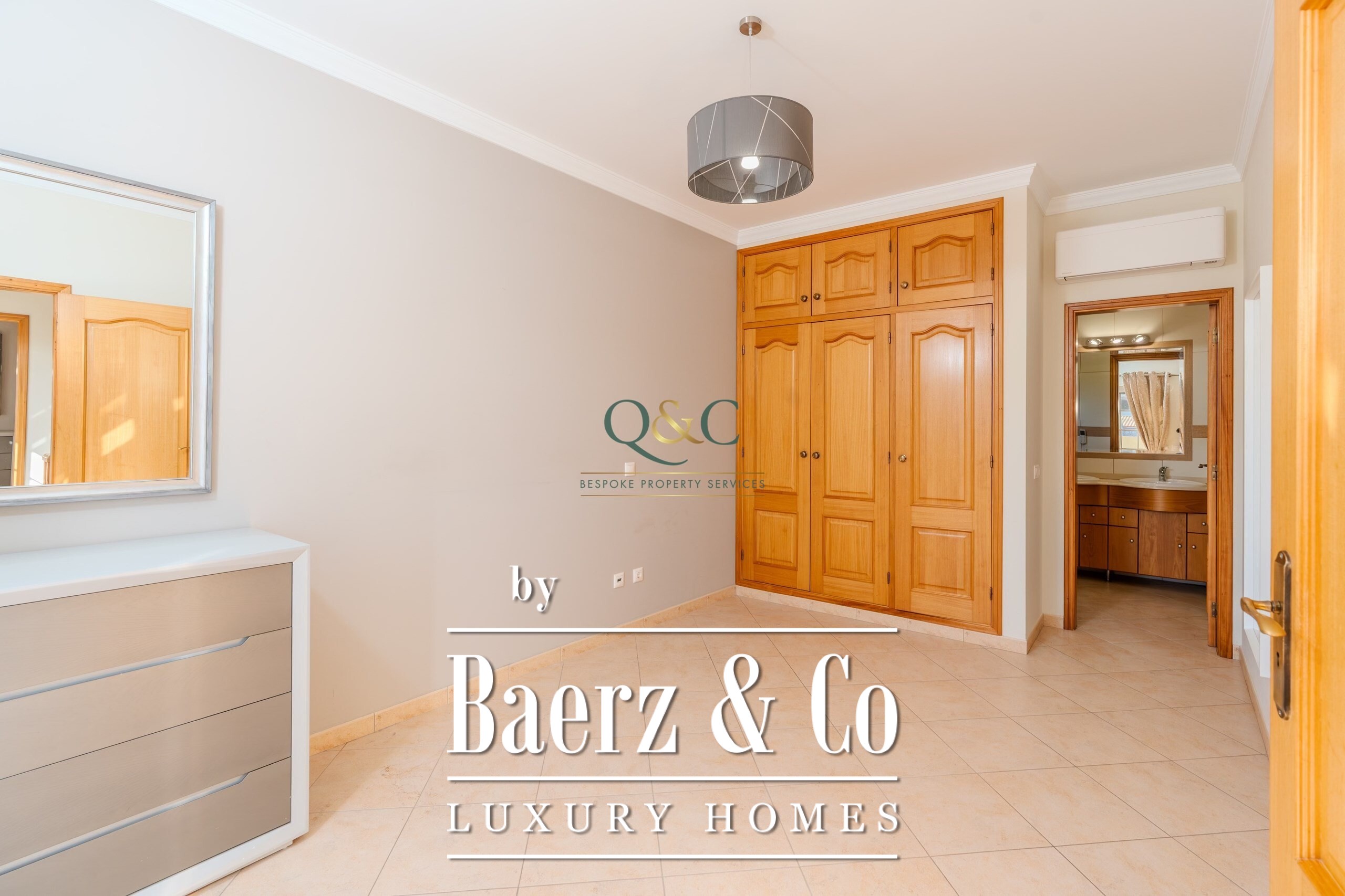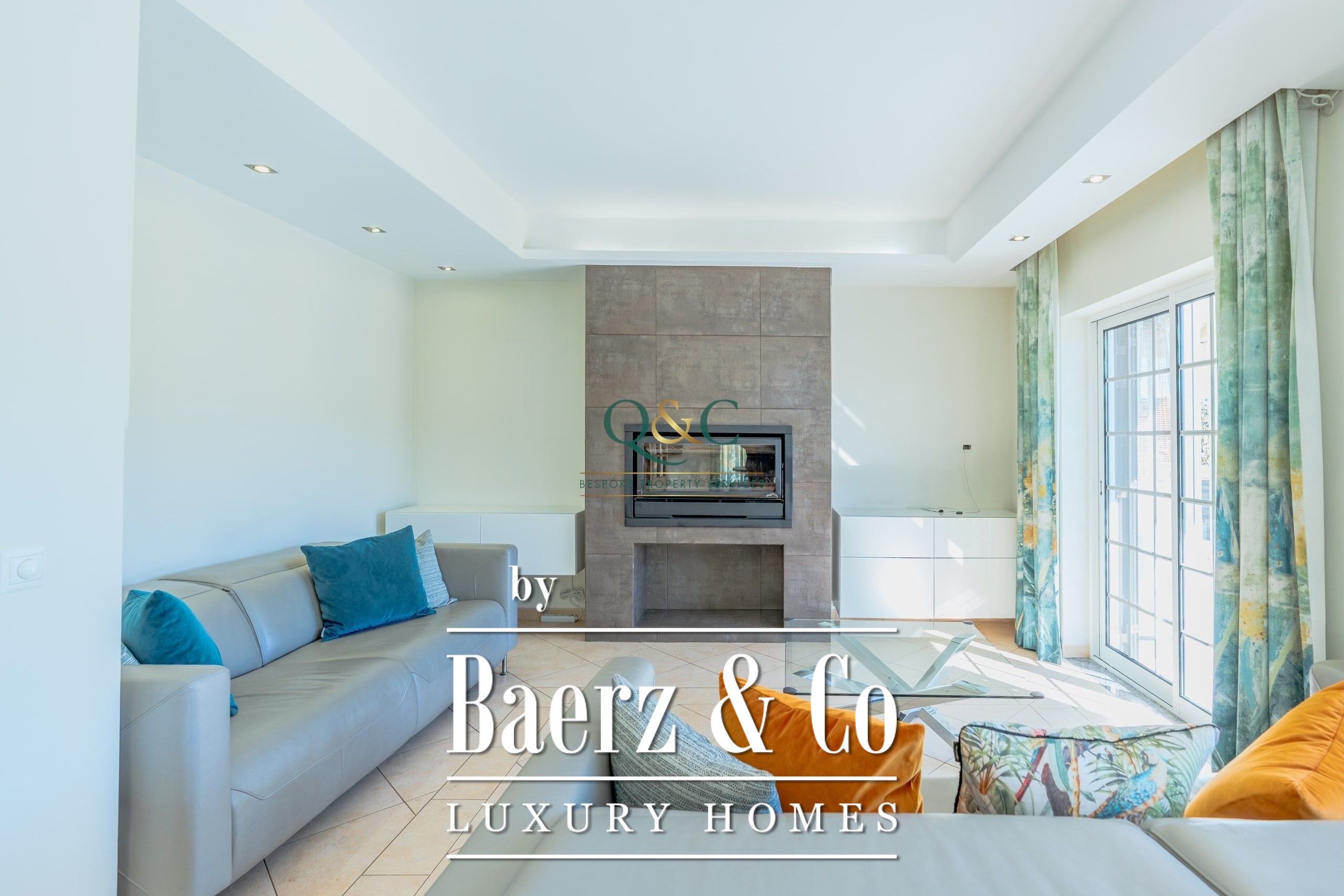 Entering Casa Oliveiras, a private swimming pool and inviting terrace welcome you, inviting quiet relaxation or effortless entertaining under the Algarve sun. The villa features a garage, basement, and dedicated laundry room, combining everyday practicality with understated comfort. Air conditioning, ambient music, double glazing, and a central vacuum system enhance the daily living experience, while a fully equipped kitchen and built-in wardrobes offer further convenience.