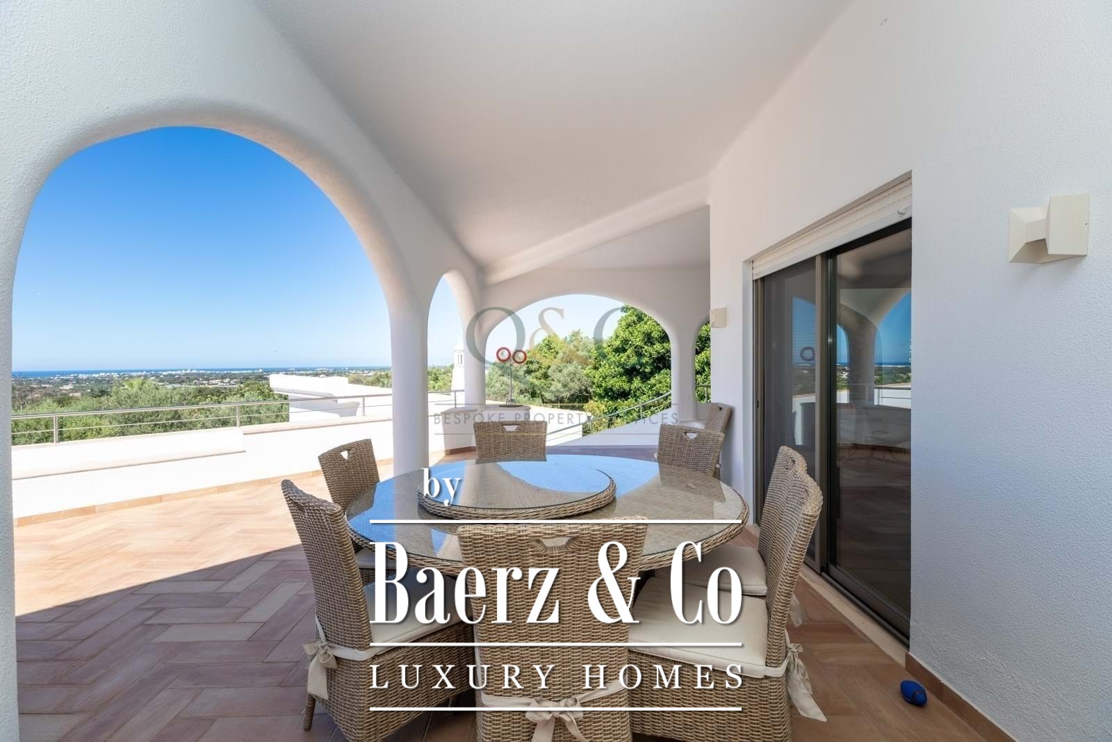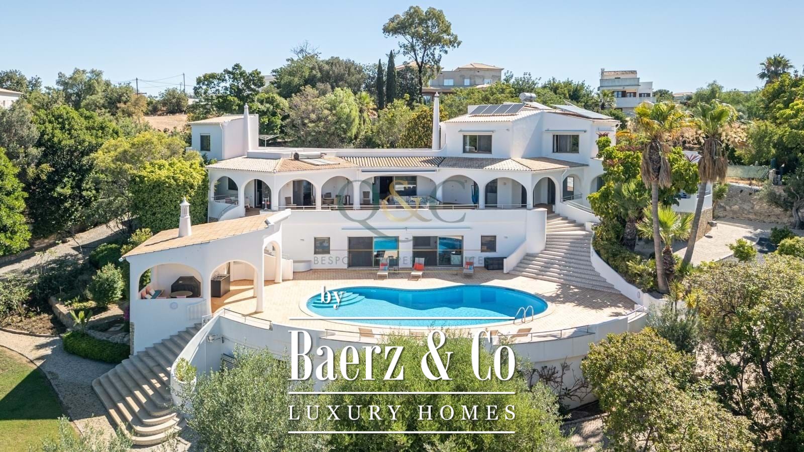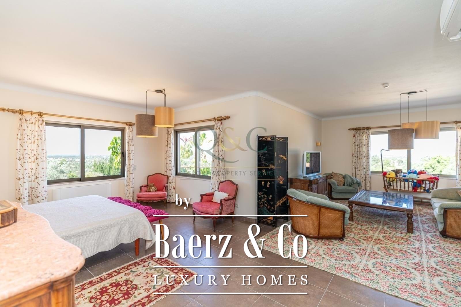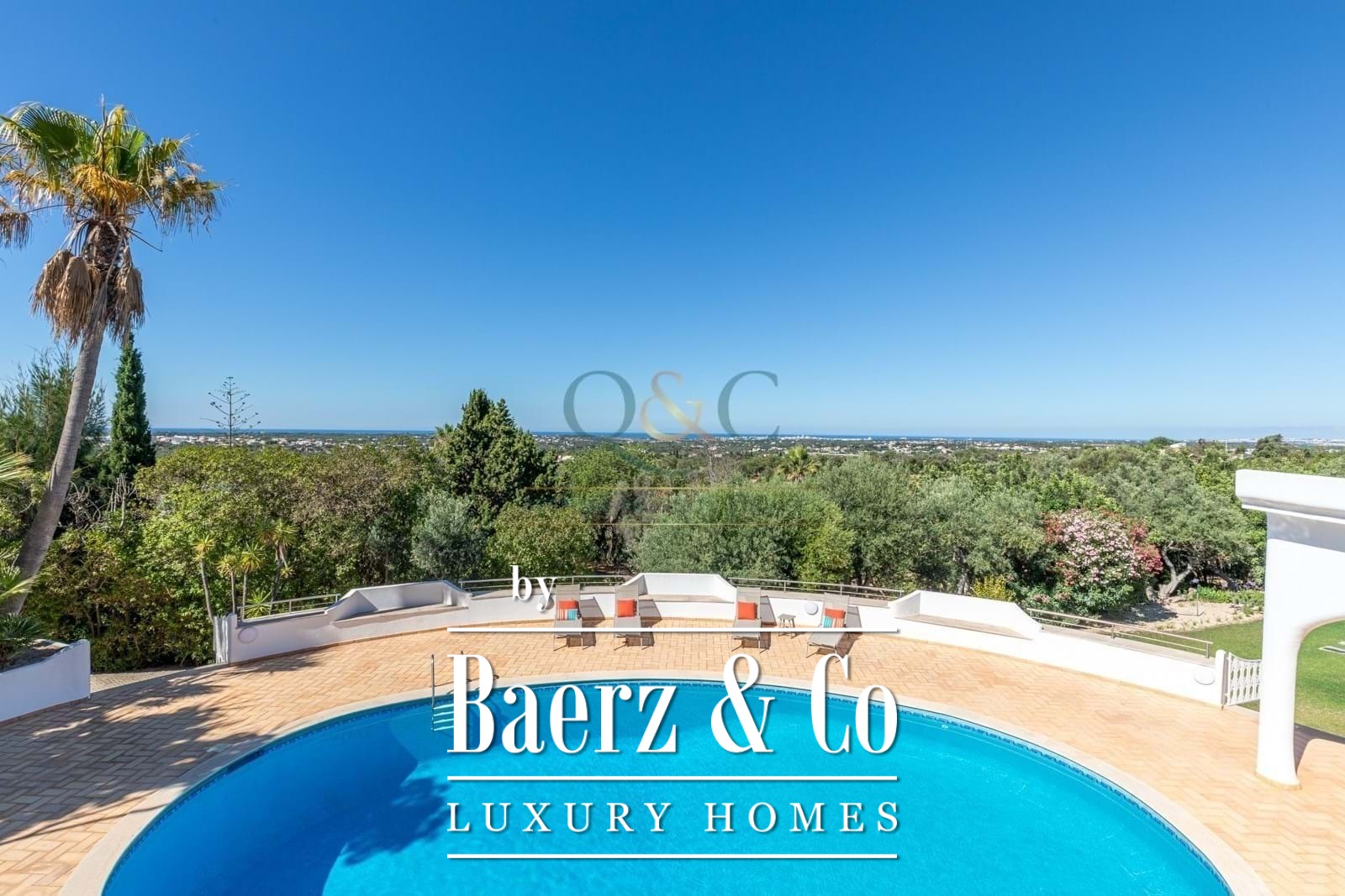 This beautiful Quinta was completely renovated in 2018 with no expense spared, using top quality materials throughout, creating a sophisticated and luxurious home. Set in a great location between Loule and Almancil in a very sought after area the property is incorporated in a large plot, offering a very tranquil living experience with incredible sea views, yet is close to all amenities. Approaching the property down the grand calcada driveway brings you to a large parking area and a double garage. Upon entering the house you are greeted by a spacious open plan living area through the entrance hallway, comprising a lounge with a cosy wood burning stove, a dining area and kitchen, fitted with state of the art appliances, and a utility room. The living area is bathed in natural light and offers direct access to a large south facing terrace. Also on this floor you have three generous bedrooms, each with their own bathroom and each with a private terrace. On the first floor is the grand master suite, comprising a bedroom, a separate dressing room, a superb bathroom and a lounge. This suite has great sea views and also a private terrace. On the lower ground floor there is a complete apartment with two further bedrooms, a bathroom, wine cellar, workshop, games room, and offers direct access to the pool terrace, which has a bathroom and BBQ area. The apartment also has an independent entrance door, making it a great space for guests to stay. The grounds of the property are beautifully designed with many mature specimen trees, and also include a building plot with the possibility to construct another property. This is a rare opportunity to purchase this very unique Quinta, so contact us to arrange for a viewing of this incredible property.