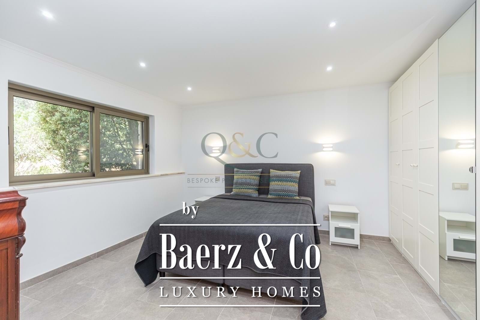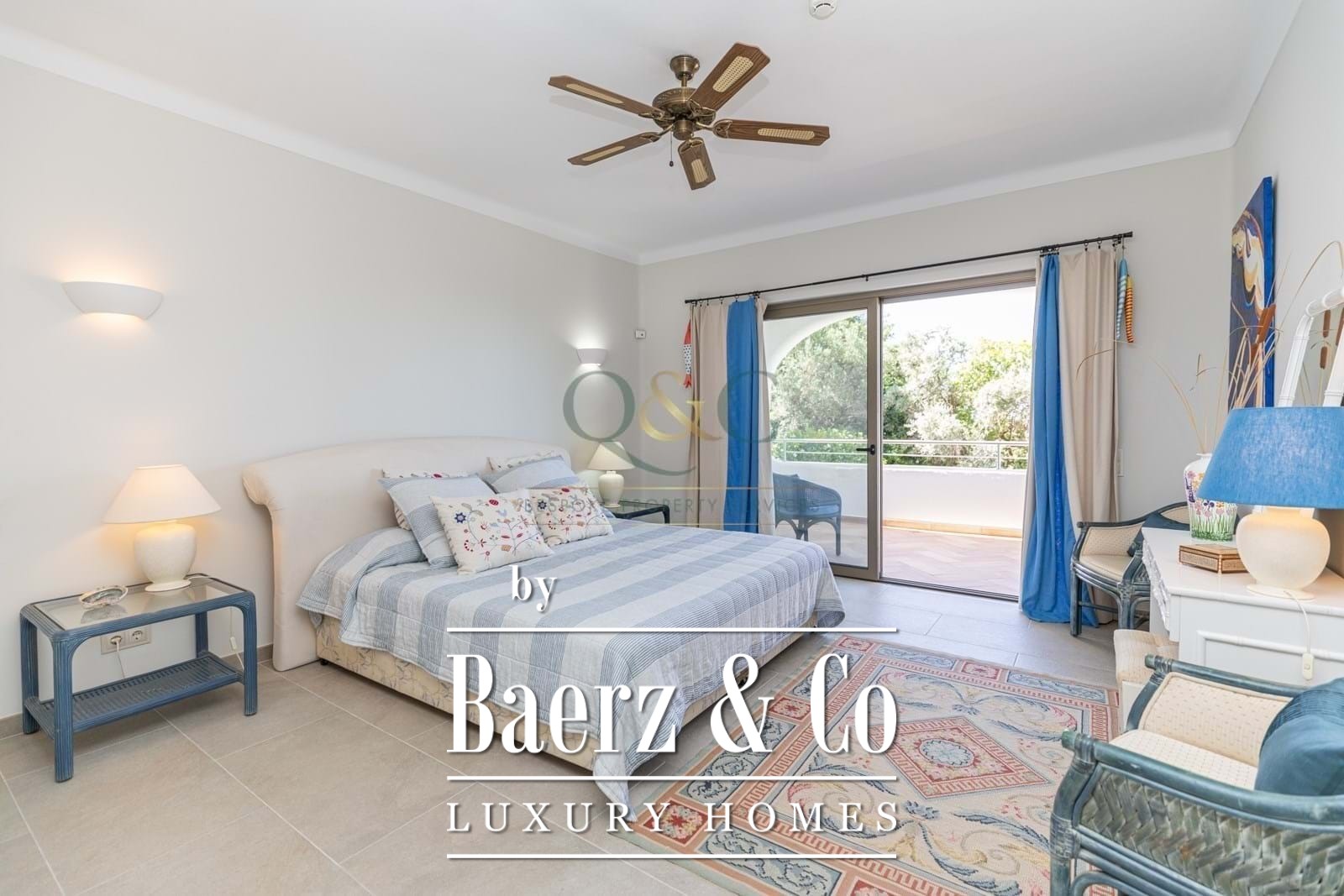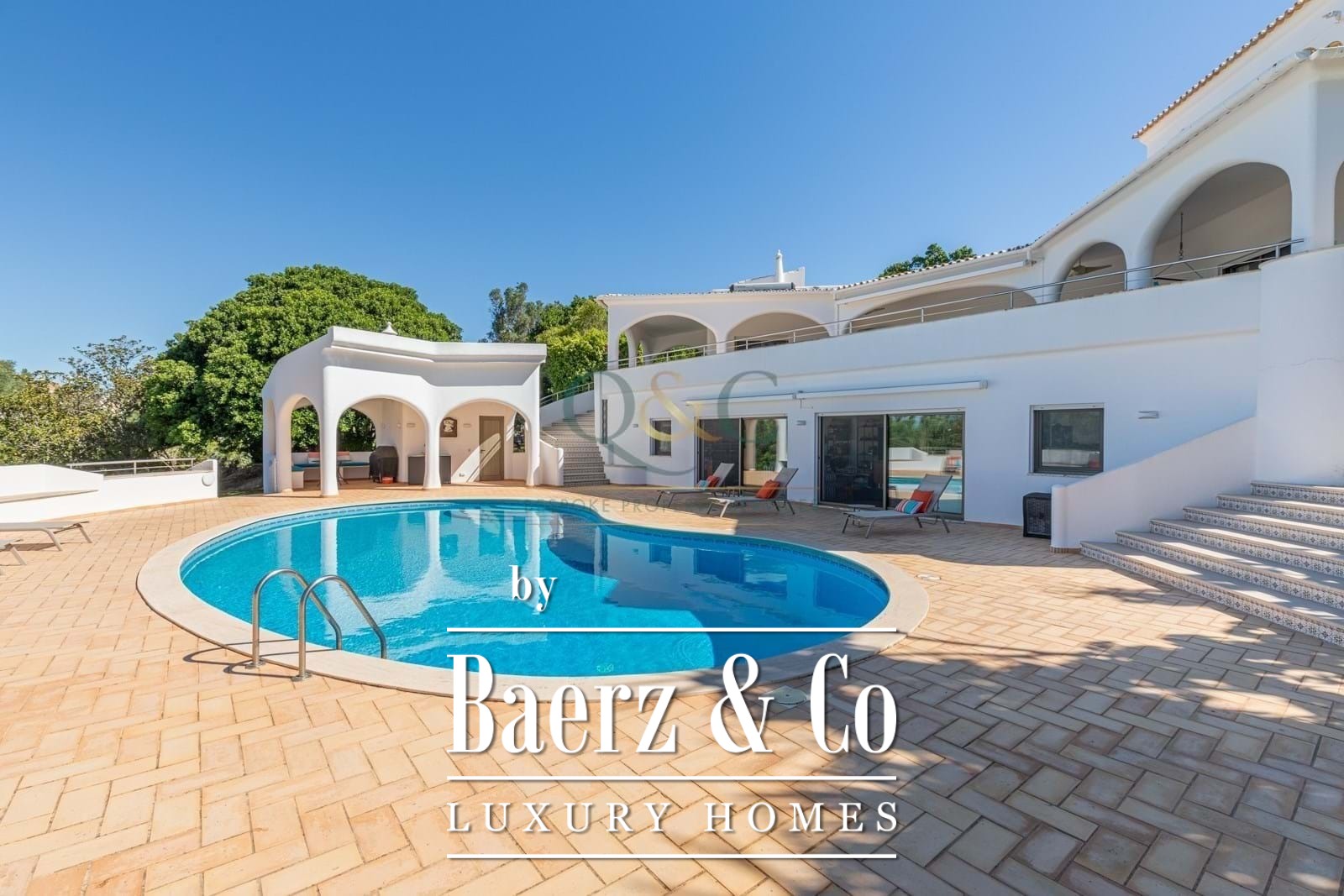 This beautiful Quinta was completely renovated in 2018 with no expense spared, using top quality materials throughout, creating a sophisticated and luxurious home. Set in a great location between Loule and Almancil in a very sought after area the property is incorporated in a large plot, offering a very tranquil living experience with incredible sea views, yet is close to all amenities. Approaching the property down the grand calcada driveway brings you to a large parking area and a double garage. Upon entering the house you are greeted by a spacious open plan living area through the entrance hallway, comprising a lounge with a cosy wood burning stove, a dining area and kitchen, fitted with state of the art appliances, and a utility room. The living area is bathed in natural light and offers direct access to a large south facing terrace. Also on this floor you have three generous bedrooms, each with their own bathroom and each with a private terrace. On the first floor is the grand master suite, comprising a bedroom, a separate dressing room, a superb bathroom and a lounge. This suite has great sea views and also a private terrace. On the lower ground floor there is a complete apartment with two further bedrooms, a bathroom, wine cellar, workshop, games room, and offers direct access to the pool terrace, which has a bathroom and BBQ area. The apartment also has an independent entrance door, making it a great space for guests to stay. The grounds of the property are beautifully designed with many mature specimen trees, and also include a building plot with the possibility to construct another property. This is a rare opportunity to purchase this very unique Quinta, so contact us to arrange for a viewing of this incredible property.
