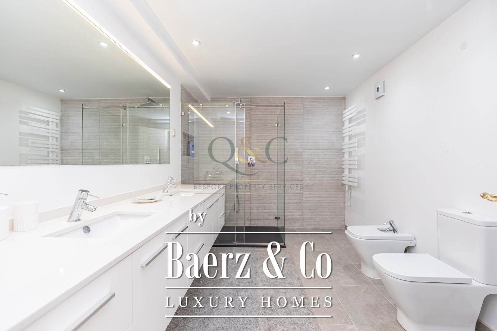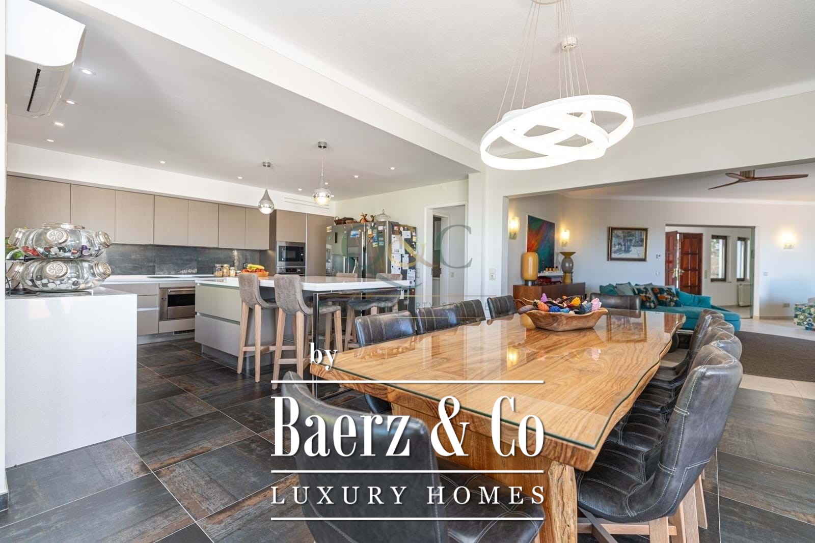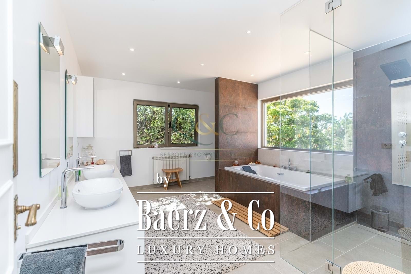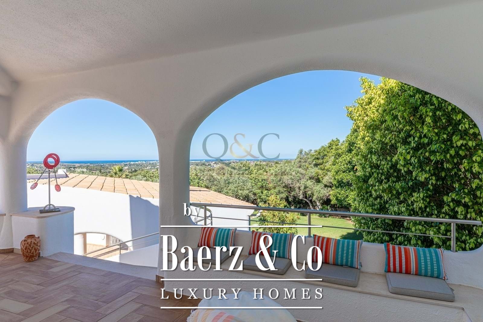 This beautiful Quinta was completely renovated in 2018 with no expense spared, using top quality materials throughout, creating a sophisticated and luxurious home. Set in a great location between Loule and Almancil in a very sought after area the property is incorporated in a large plot, offering a very tranquil living experience with incredible sea views, yet is close to all amenities. Approaching the property down the grand calcada driveway brings you to a large parking area and a double garage. Upon entering the house you are greeted by a spacious open plan living area through the entrance hallway, comprising a lounge with a cosy wood burning stove, a dining area and kitchen, fitted with state of the art appliances, and a utility room. The living area is bathed in natural light and offers direct access to a large south facing terrace. Also on this floor you have three generous bedrooms, each with their own bathroom and each with a private terrace. On the first floor is the grand master suite, comprising a bedroom, a separate dressing room, a superb bathroom and a lounge. This suite has great sea views and also a private terrace. On the lower ground floor there is a complete apartment with two further bedrooms, a bathroom, wine cellar, workshop, games room, and offers direct access to the pool terrace, which has a bathroom and BBQ area. The apartment also has an independent entrance door, making it a great space for guests to stay. The grounds of the property are beautifully designed with many mature specimen trees, and also include a building plot with the possibility to construct another property. This is a rare opportunity to purchase this very unique Quinta, so contact us to arrange for a viewing of this incredible property.