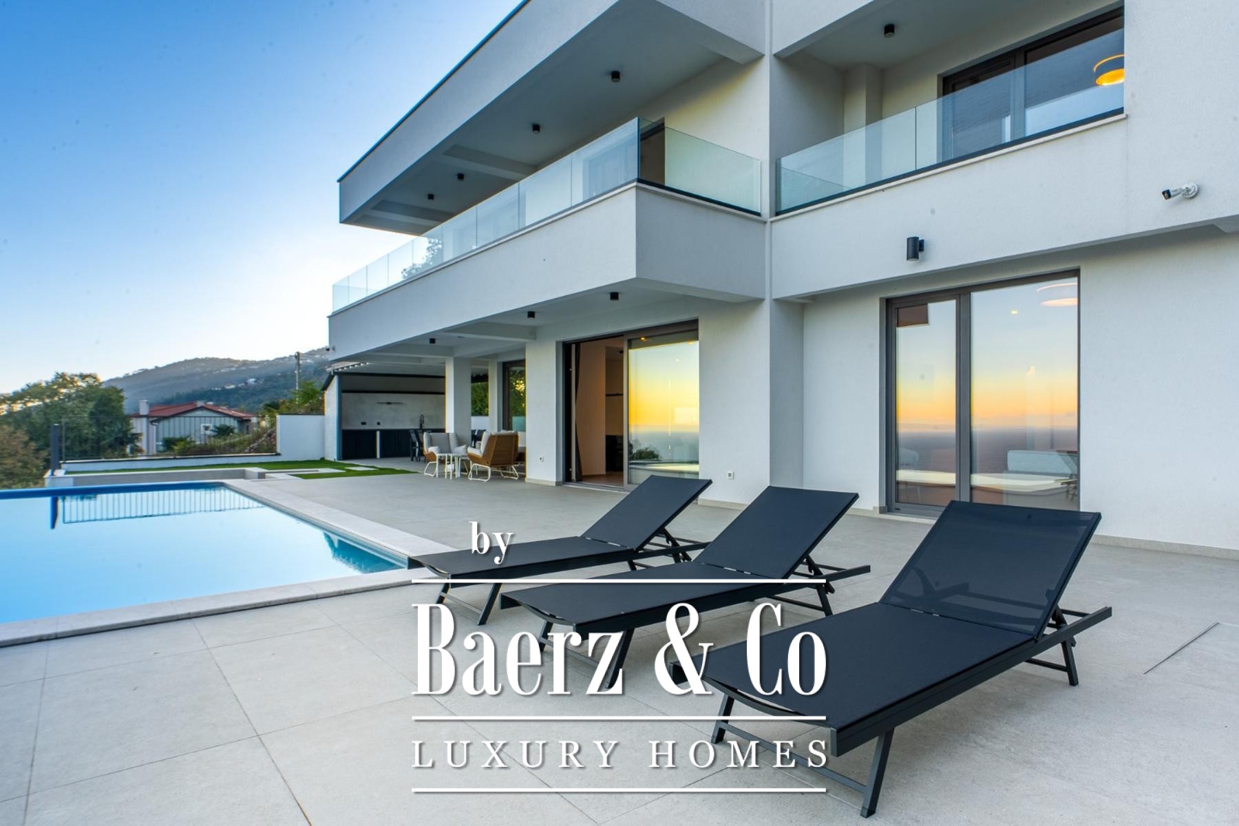 Modern villa Lovran sets a refined standard for contemporary living, offering 250 m² of light-filled interiors on the tranquil hillside above Kvarner Bay. This property presents a considered architectural rhythm across two floors, each appointed for comfort and privacy. Four generous bedrooms and four bathrooms provide space for family and guests, while a large open-plan living and dining area flows seamlessly toward the panoramic terrace. Floor-to-ceiling windows frame uncompromised bay views, imbuing the home with a sense of openness and calm.