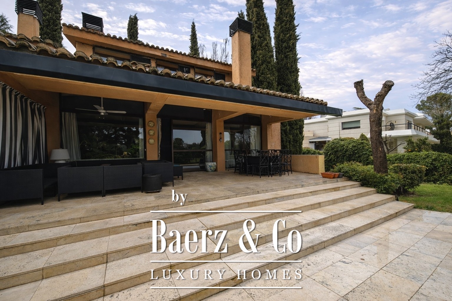 Detached villa La Moraleja Madrid enjoys a prime position directly opposite Hole 10 of the renowned La Moraleja Golf Course, offering panoramic and uninterrupted views across the fairways from its elevated setting. This property unfolds across a 2,837 m² plot and features approximately 873 m² of living space distributed over three levels, designed for a refined yet flexible lifestyle.