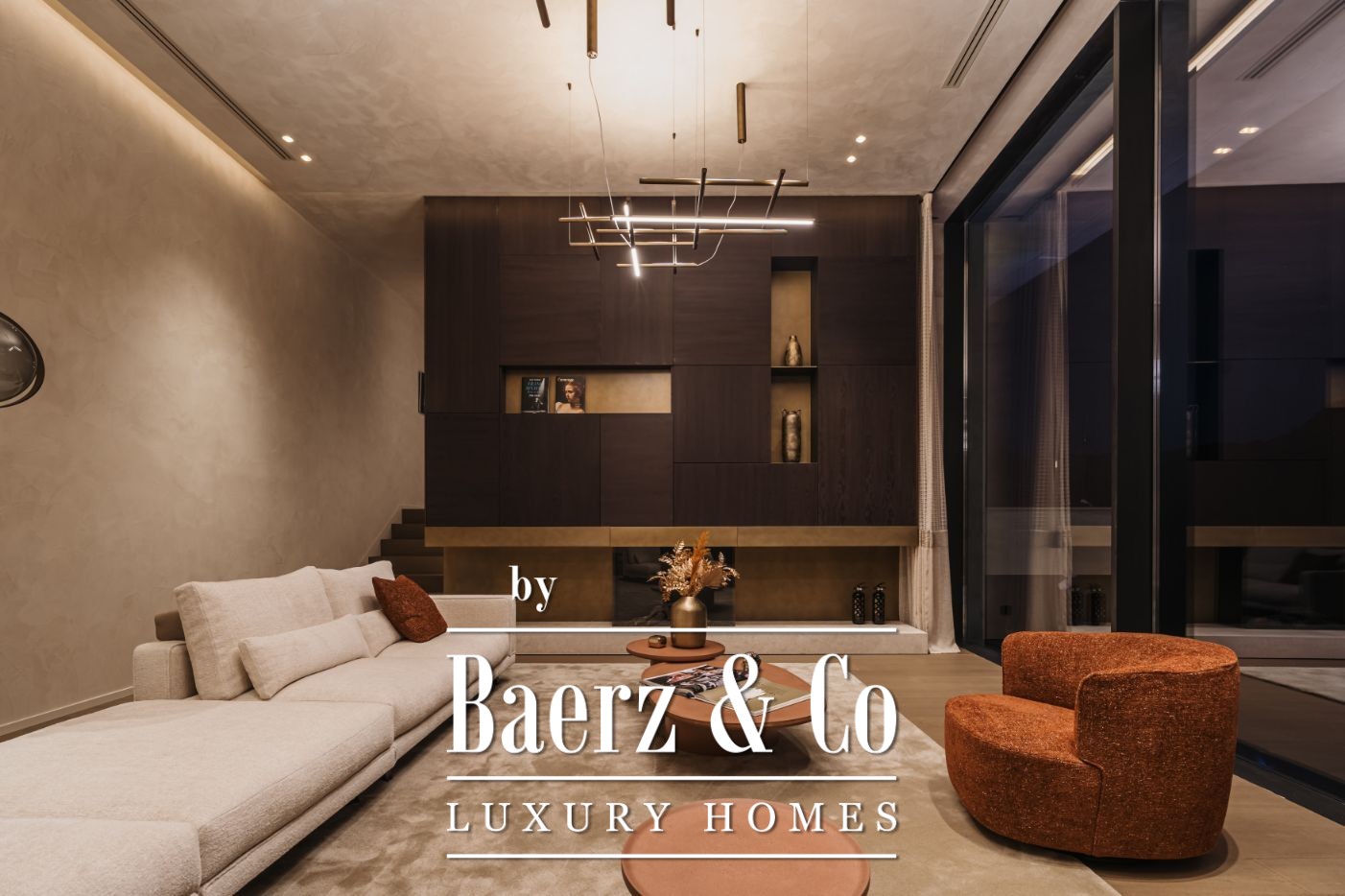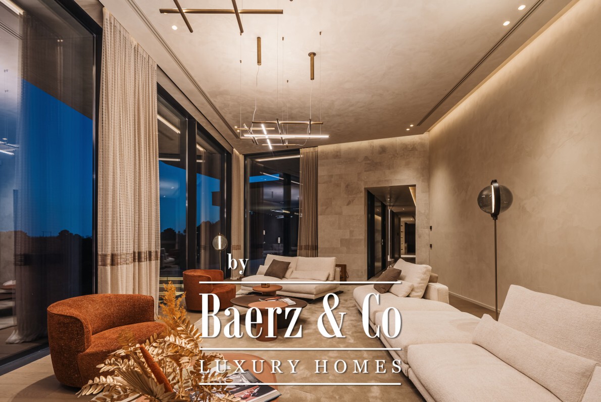 Technology and comfort advance in tandem: a full Control 4 Domotic system, adaptive AC, integrated audio-visual, two elevators, an automated aromatic diffuser, and security with 24/7 monitoring maximise ease and peace of mind. Life extends naturally outdoors with a 500 m² terrace network, infinity pool, outdoor lounges and automated irrigation. A multi-car garage, gym, and cinema room complement the villa’s holistic composition.