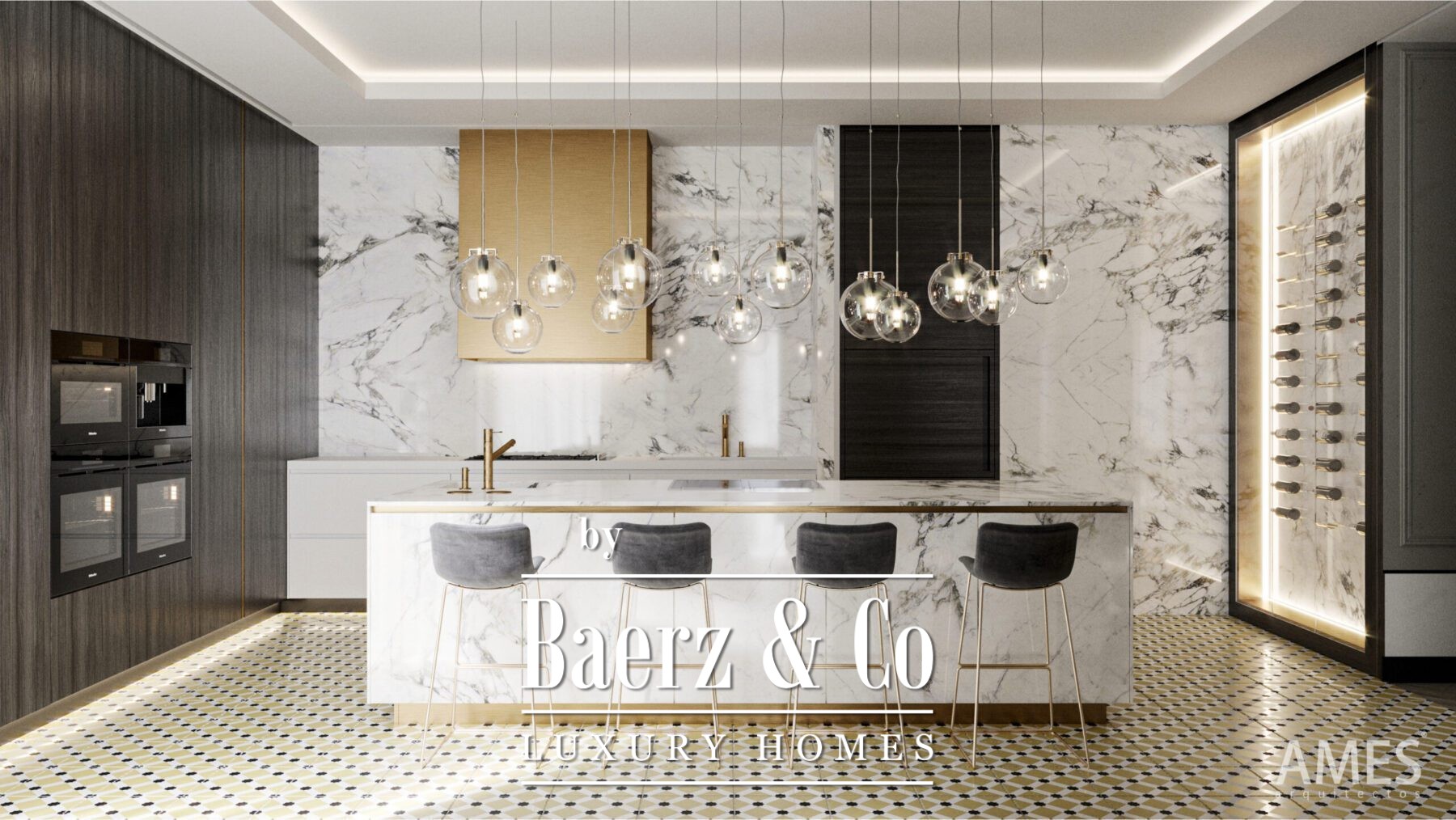 A journey through the main entrance is defined by double-height ceilings and floor-to-ceiling windows, ushering in Mediterranean sunlight and framing the landscape. The ground floor is curated for sociable living, featuring a generous living room, dedicated TV space and a dining room poised for gatherings. The designer kitchen, 62 m² in scale, offers custom finishes, a substantial island and a seamless flow towards an additional pantry and staff entrance, ensuring effortless day-to-day living.