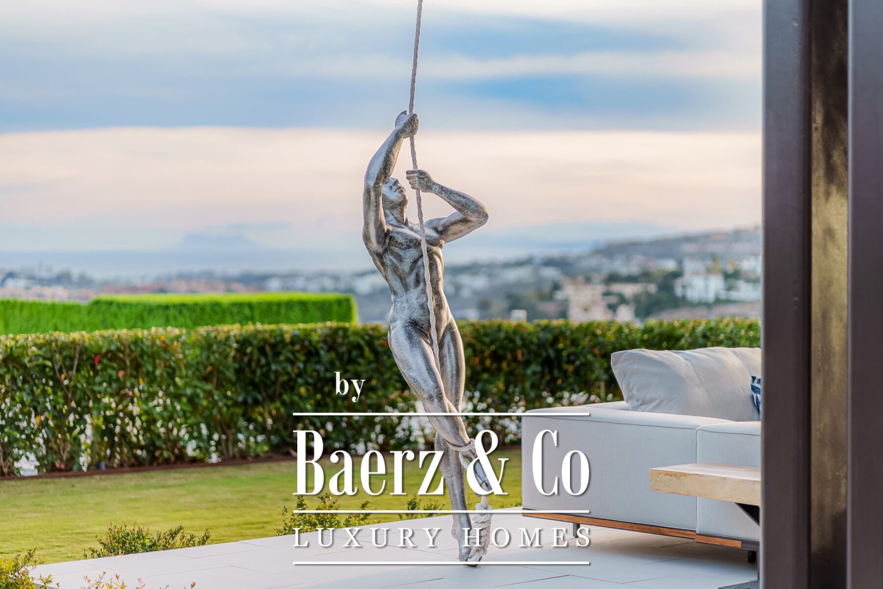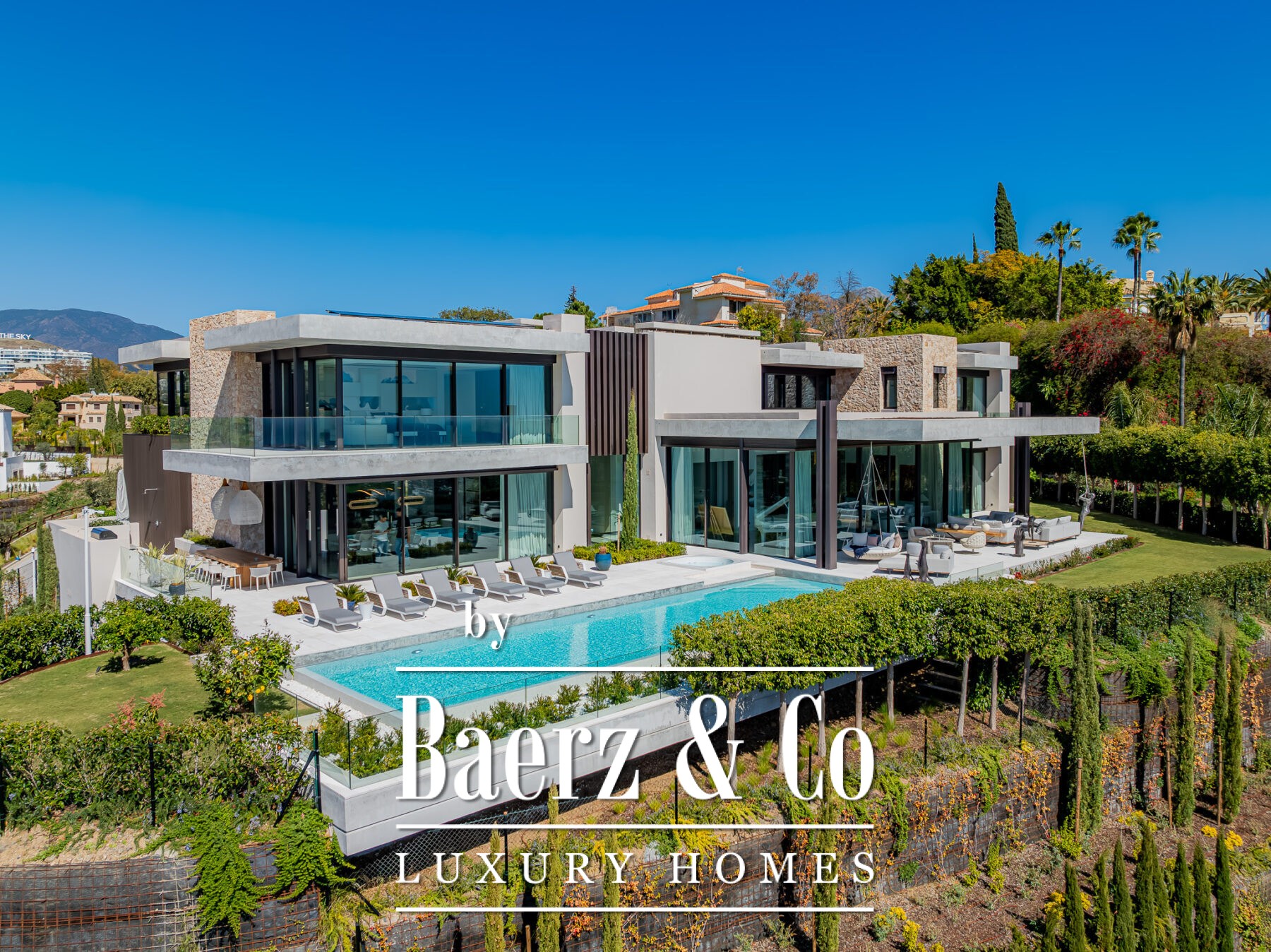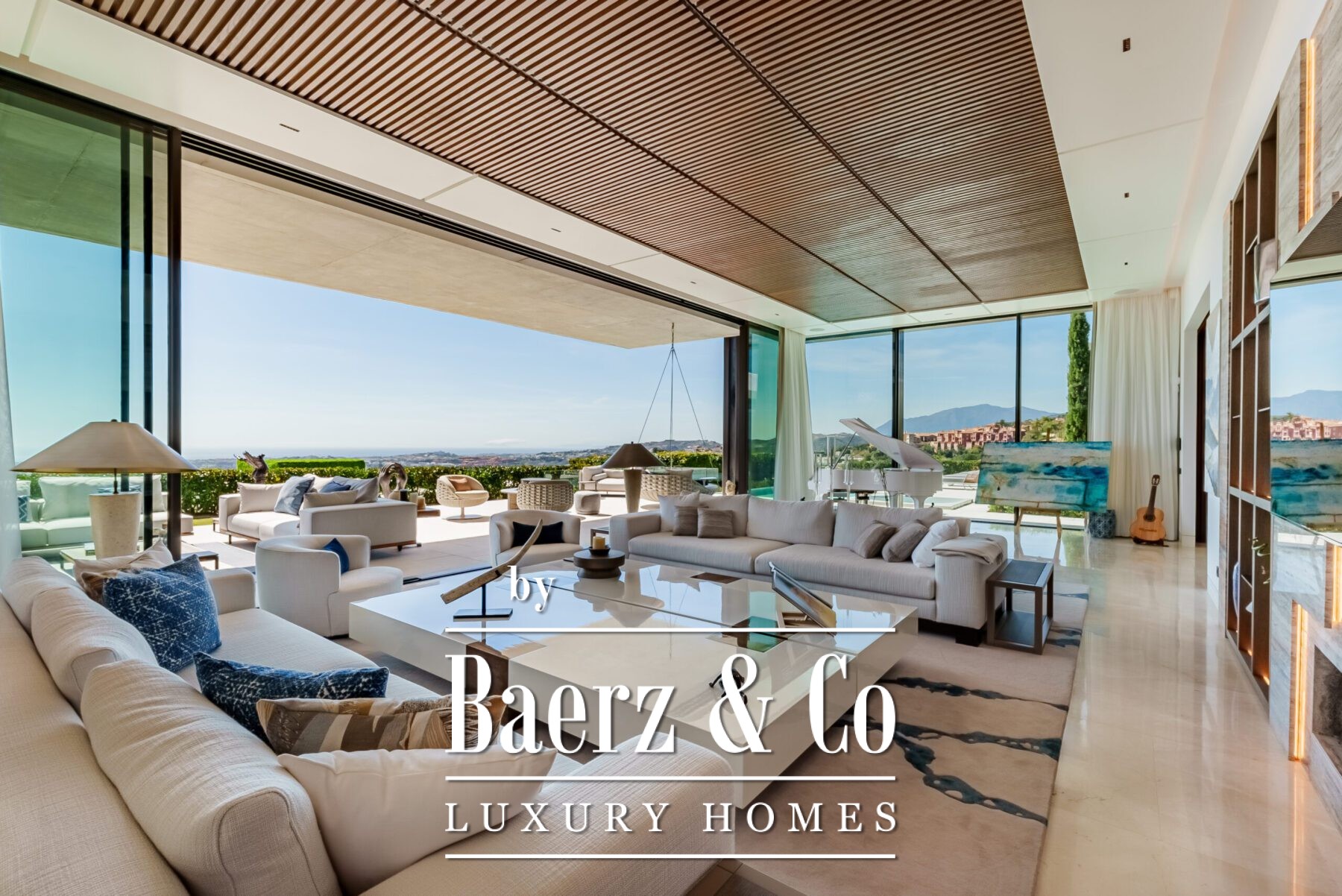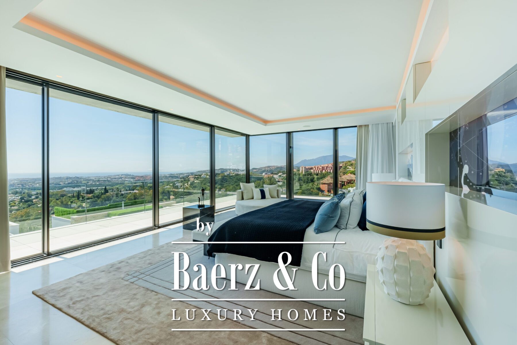 Villa Marbella with Panoramic Sea and Mountain Views is an architectural statement within the prestigious La Quinta enclave. This residence spans 1,451m² of living space on a 2,650m² plot, thoughtfully proportioned for privacy, connection, and seamless indoor-outdoor living. The villa features eight bedrooms and eight bathrooms, including a master suite with a walk-in closet and a spa-inspired bathroom. Each room is oriented to maximize the sweeping views of the Mediterranean coastline and green landscapes, creating a perpetual dialogue with its surroundings.