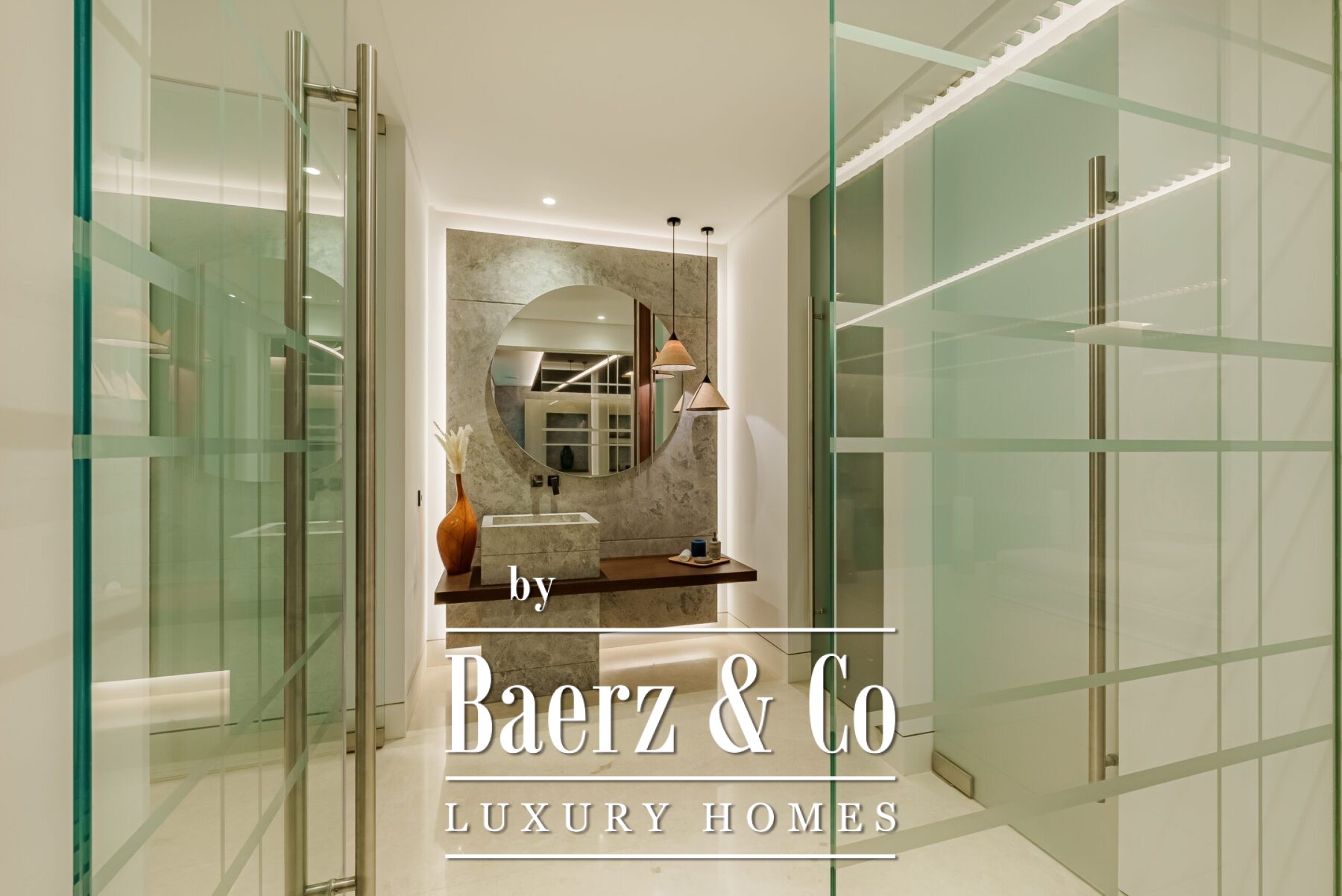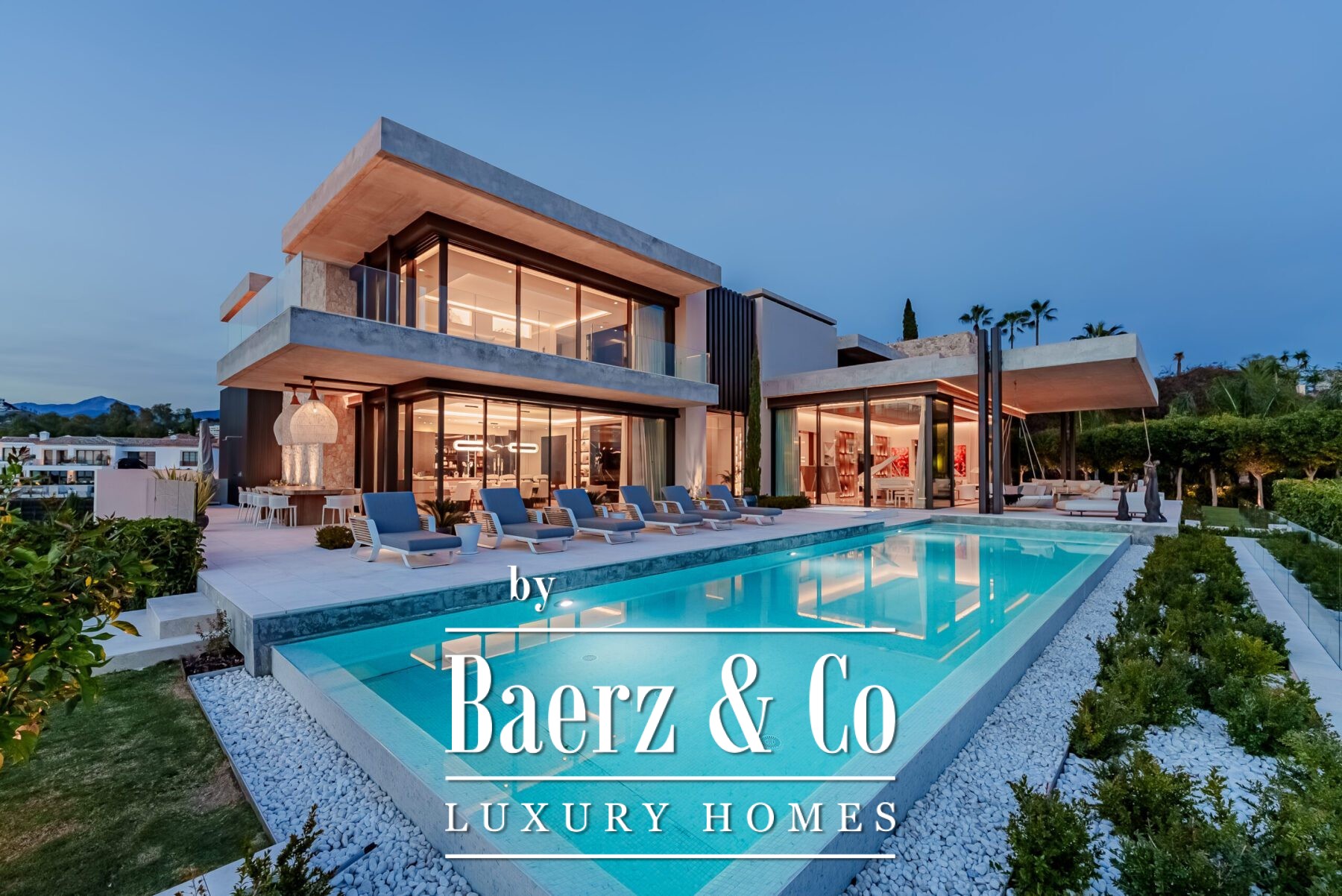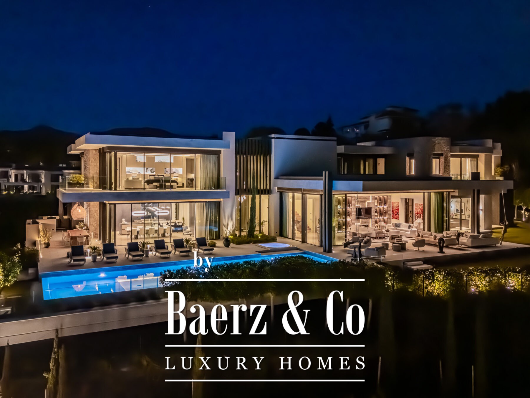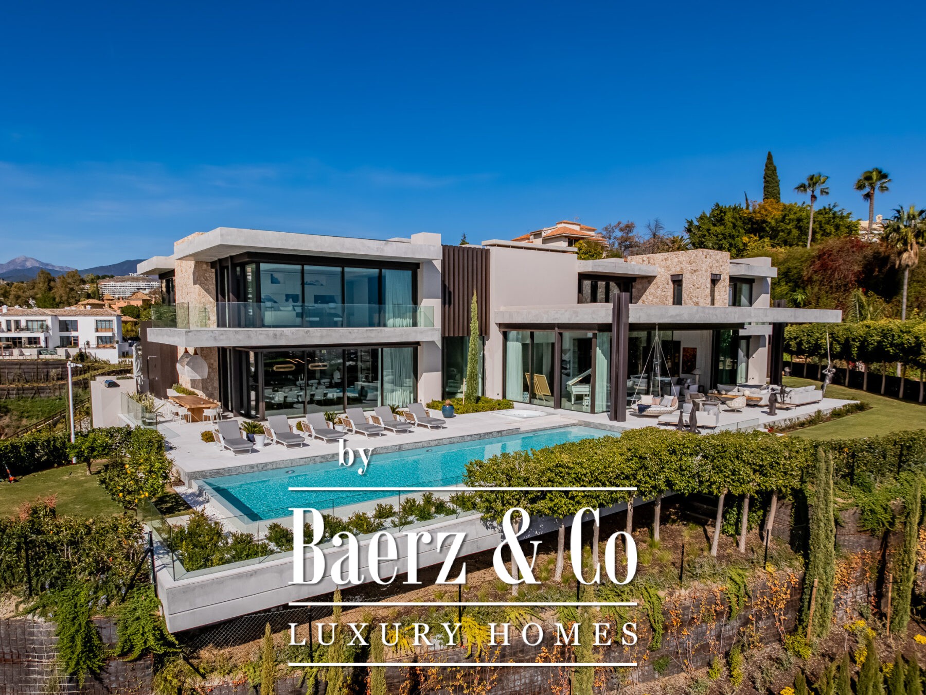 Villa Marbella with Panoramic Sea and Mountain Views is an architectural statement within the prestigious La Quinta enclave. This residence spans 1,451m² of living space on a 2,650m² plot, thoughtfully proportioned for privacy, connection, and seamless indoor-outdoor living. The villa features eight bedrooms and eight bathrooms, including a master suite with a walk-in closet and a spa-inspired bathroom. Each room is oriented to maximize the sweeping views of the Mediterranean coastline and green landscapes, creating a perpetual dialogue with its surroundings.