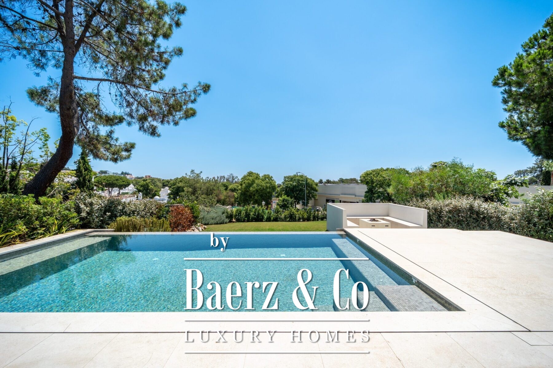 Upstairs, two en-suite bedrooms enjoy views to the sea, while the master suite stands out for its scale and elegance. A solarium at the intermediary level provides pre-installation for an outdoor kitchen and jacuzzi, setting the scene for al fresco gatherings and sunset vistas. The lower level has been curated for leisure and privacy, featuring a gym, nine-seat cinema, an additional bedroom suite, laundry, and guest facilities.