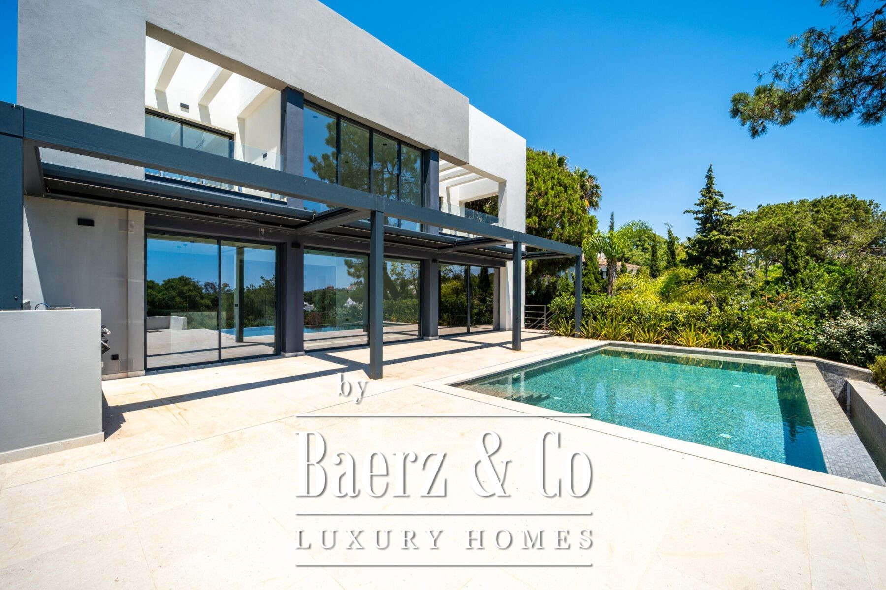 Contemporary villa Marbella defines the rhythm of modern Mediterranean living, combining expressive architecture and flawless comfort in Hacienda Las Chapas. This newly built villa spans 545 m² across three levels, located on a generous 1,344 m² plot. The design invites natural light through expansive floor-to-ceiling windows, connecting airy interiors with more than 100 m² of terrace, partially shaded by a bioclimatic pergola for year-round use.