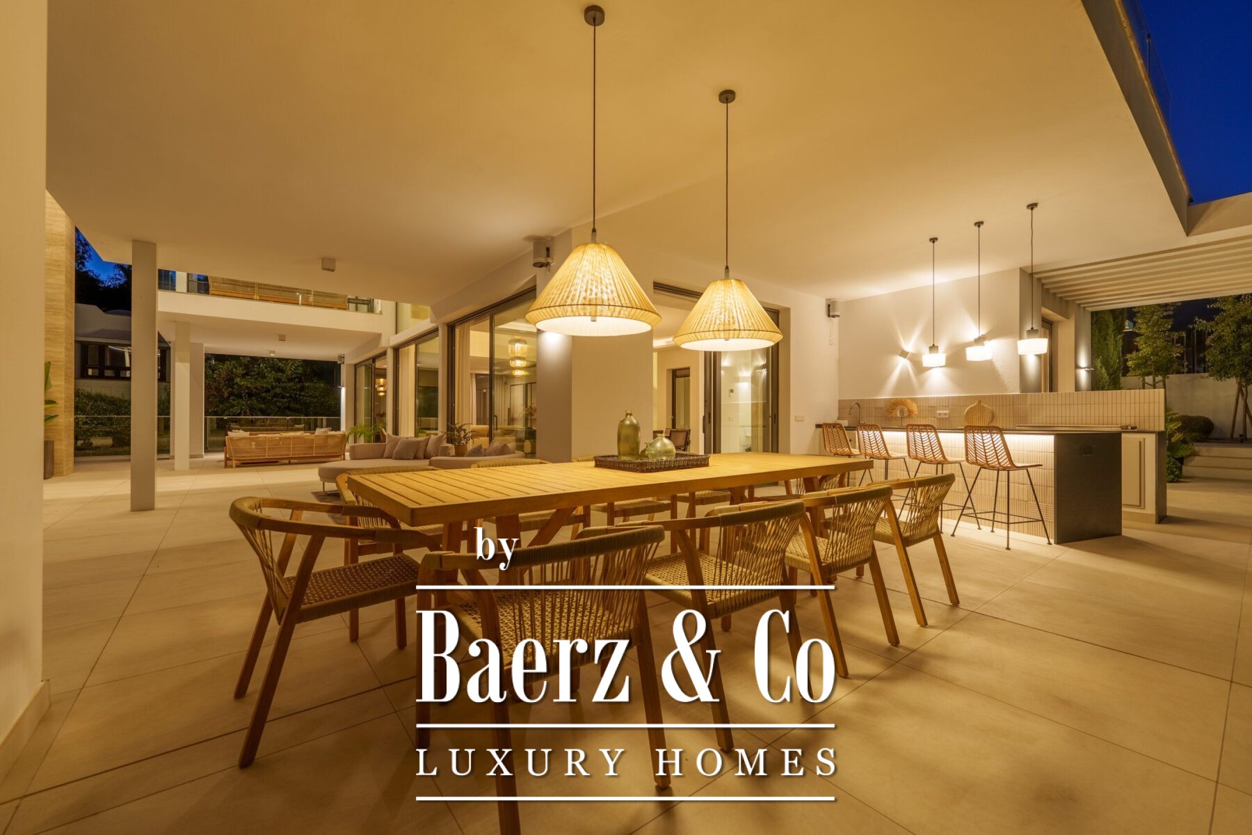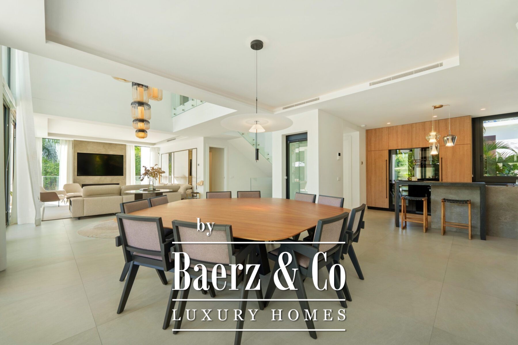 Set within a 24-hour security gated community, this villa complements its serenity with a private garage, advanced amenities, and proximity to golf, the renowned Puente Romano Hotel, and Marbella Club Hotel. The residence delivers the essence of the Marbella lifestyle, blending privacy and sophistication with rare access to both urban vitality and tranquil indulgence. For those seeking a luxury villa for sale in Marbella’s Golden Mile, this property offers a rare union of architectural clarity and luminous southern living.
