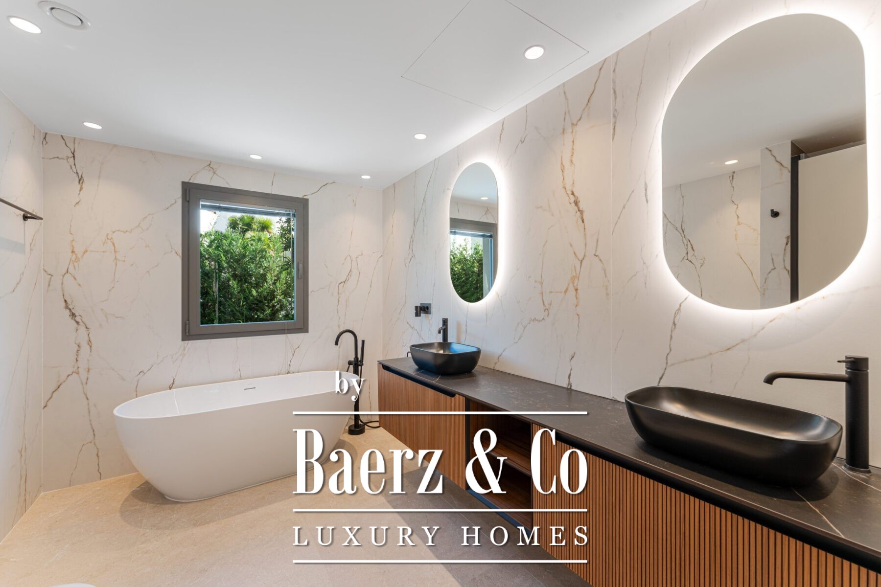 Carefully landscaped grounds enclose a private, heated swimming pool and generous terraces equipped with an outdoor kitchen, dining area, and chill-out zones for timeless alfresco living. Features such as underfloor heating, zoned air conditioning, and advanced security meet the expectations of international buyers. The villa offers total privacy while maintaining proximity to top international schools, Marbella Sports & Tennis Club, and seamless AP-7 motorway connectivity.