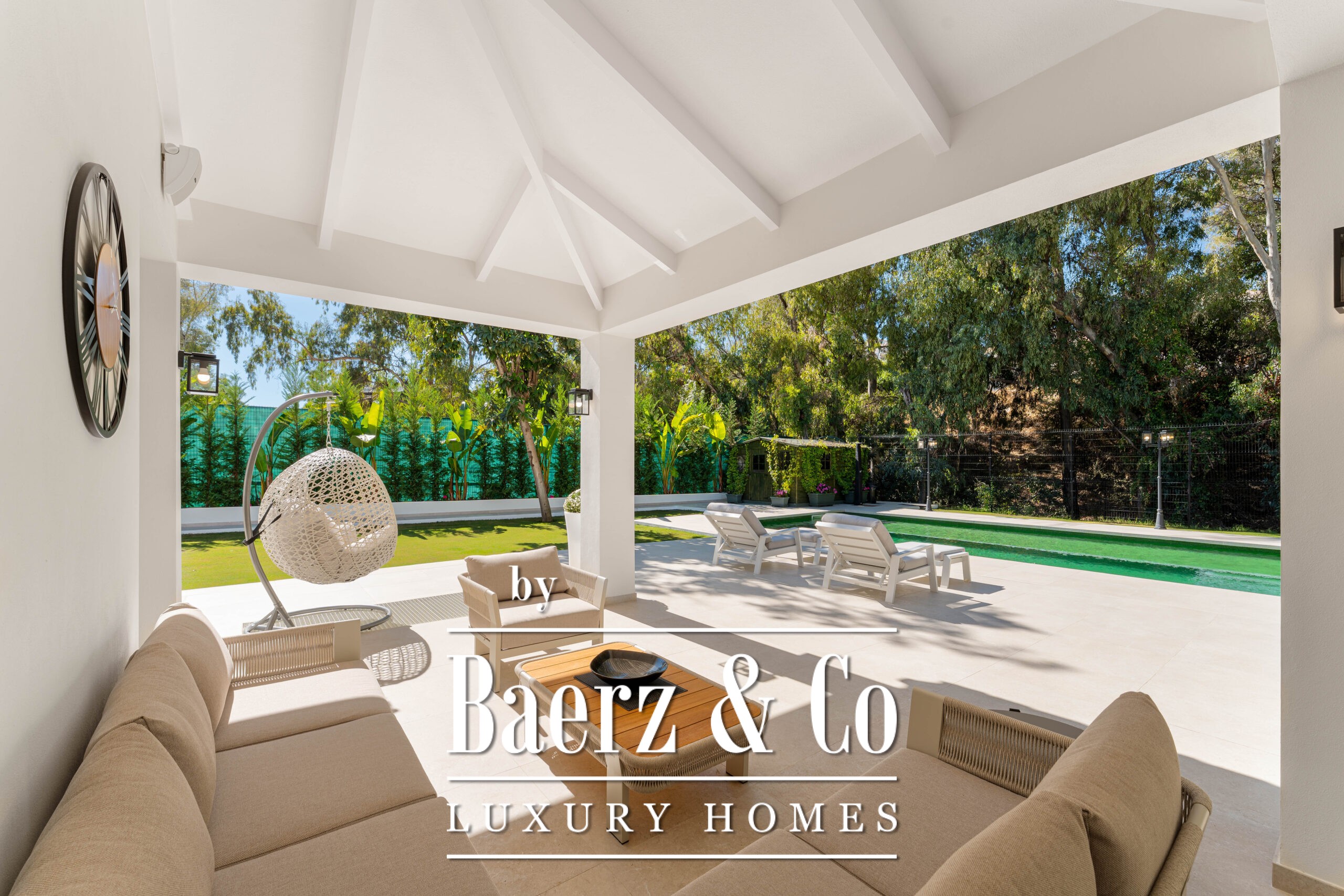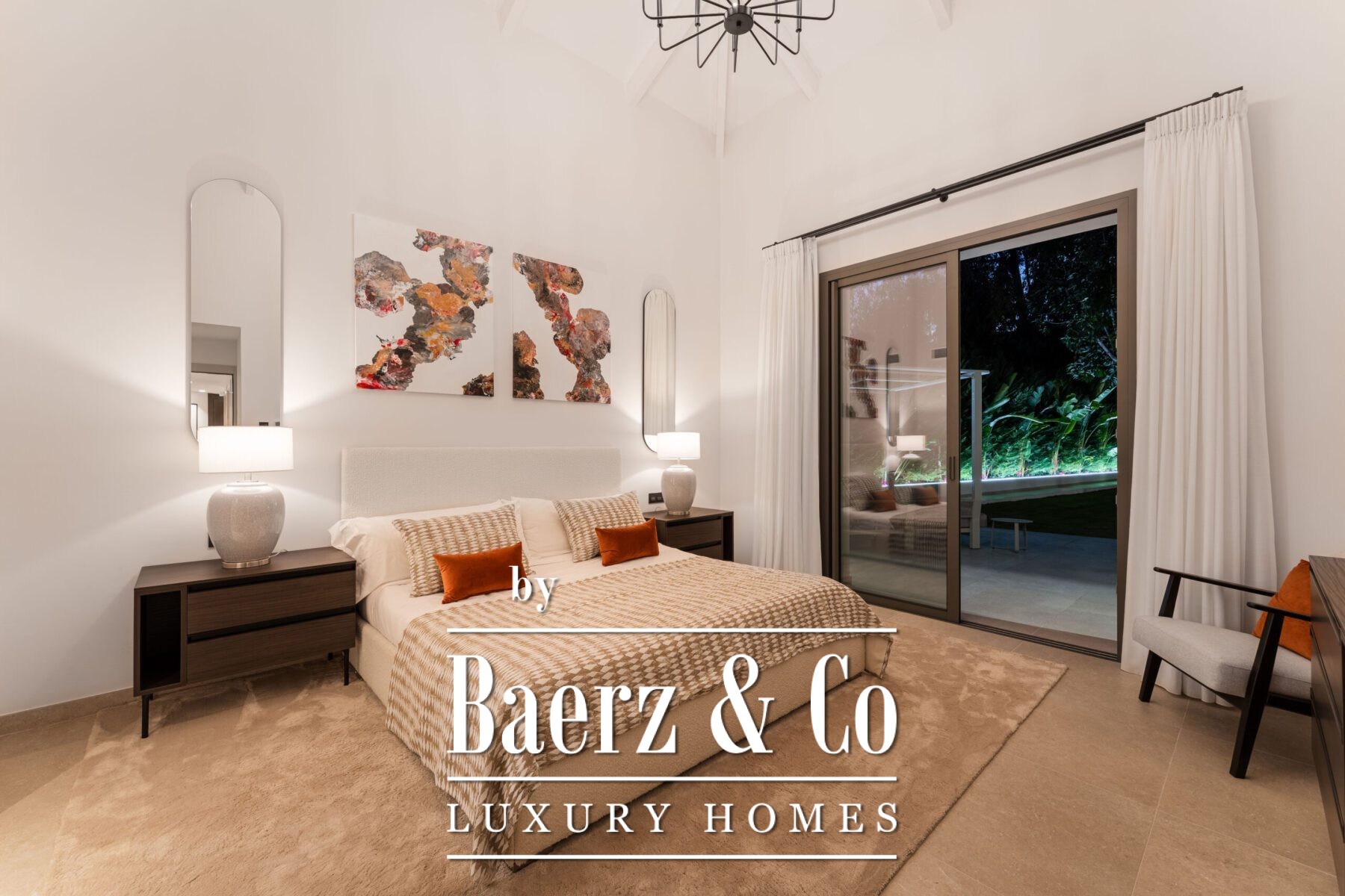 Villa Nueva Andalucía Marbella stands as a statement of refined design and understated luxury, offering spacious contemporary living in La Cerquilla’s tranquil heart. This five bedroom villa, renovated in 2025, balances functional design with elegant interior detailing, reflecting a modern lifestyle complemented by light and comfort. Set within Marbella’s prestigious Golf Valley, the property is moments from Los Naranjos, Las Brisas, and Aloha Golf Club, with world-class amenities and fine dining within minutes, including Puente Romano’s acclaimed restaurants.