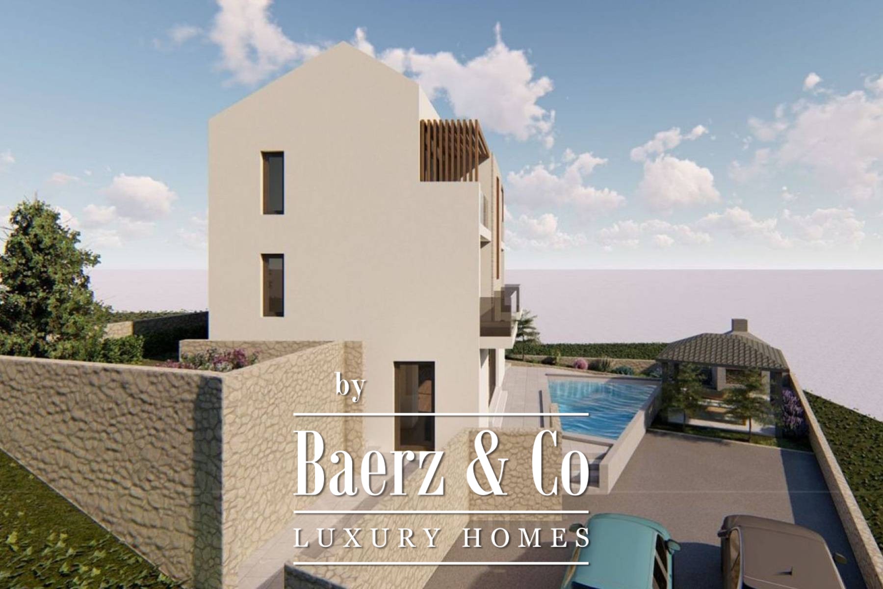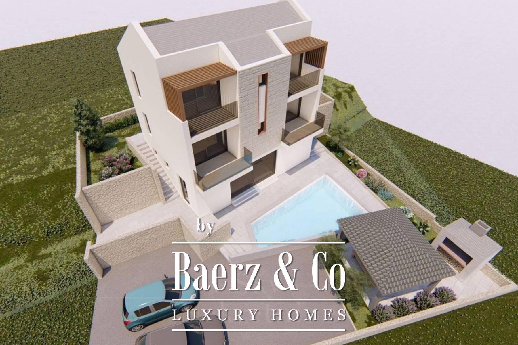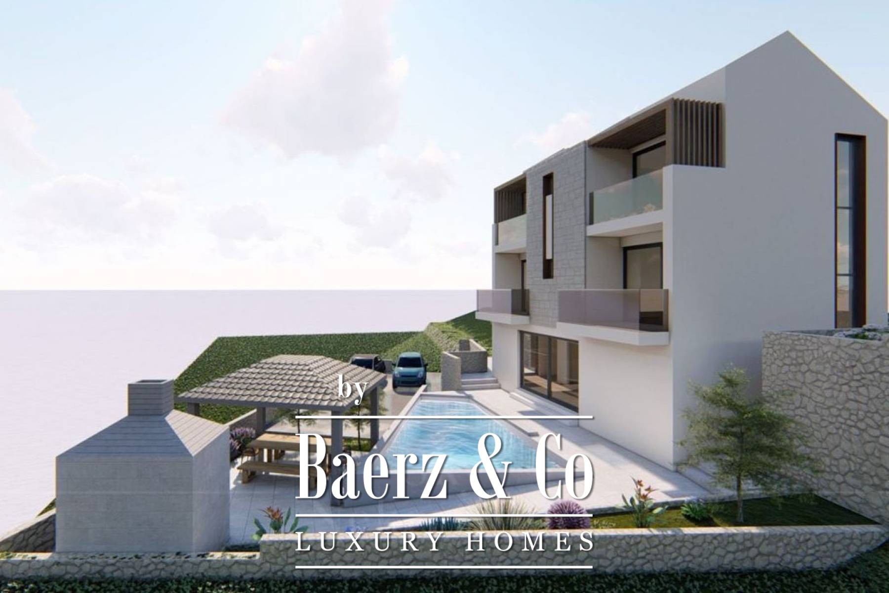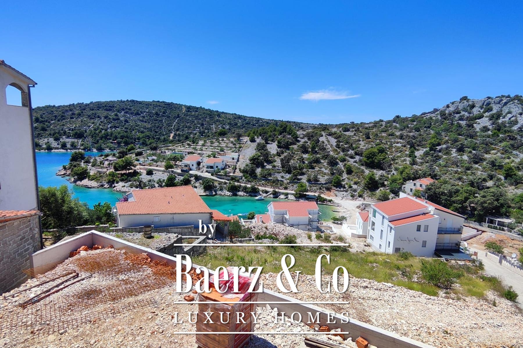 Sevid - in an exceptional location, just 70 meters from the beach, a villa under construction is for sale.Modern Mediterranean villa under construction with four bedrooms gross floor area 189 m2.The villa was designed as a combination of traditional Dalmatian construction through elements of stone walls and facade in combination with a modern way of life - larger living space, modern pergolas and glass fences.The villa extends over three floors, the ground floor consists of a living room with a dining room and a kitchen, a hallway, a toilet,