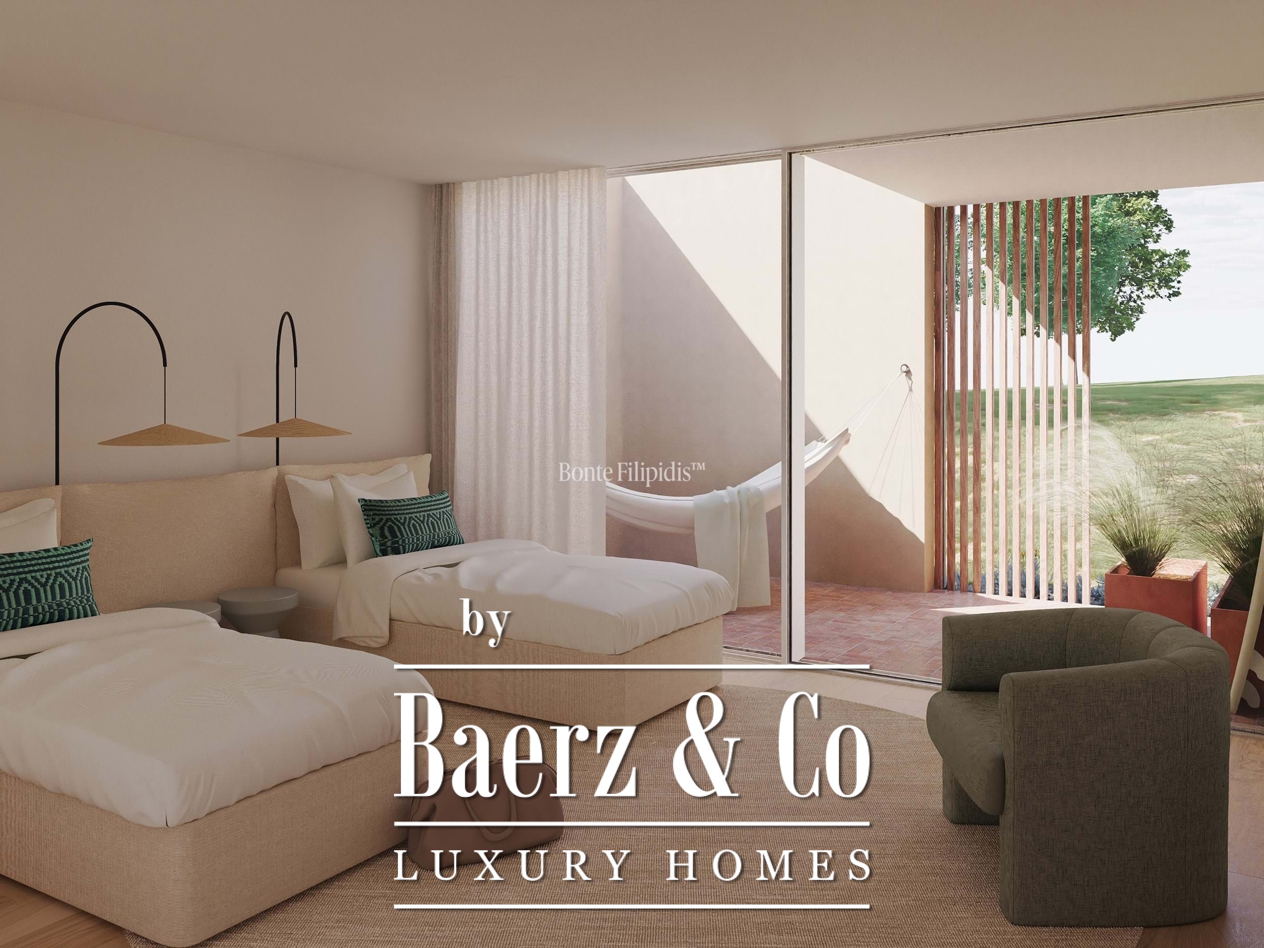 Villa Melides invites a life of refined calm where architecture engages directly with the Alentejo landscape. This villa, with its 175 m² of interior living space and three bedrooms, balances modernity and tradition. Generous outdoor areas span 77 m² and include a private 25 m² pool, allowing the boundaries between interior and exterior to dissolve in the soft rural light. The terrace faces unspoiled nature, framing quiet mornings and slow afternoons, while the curated use of wood and stone underscores the home’s sense of place.