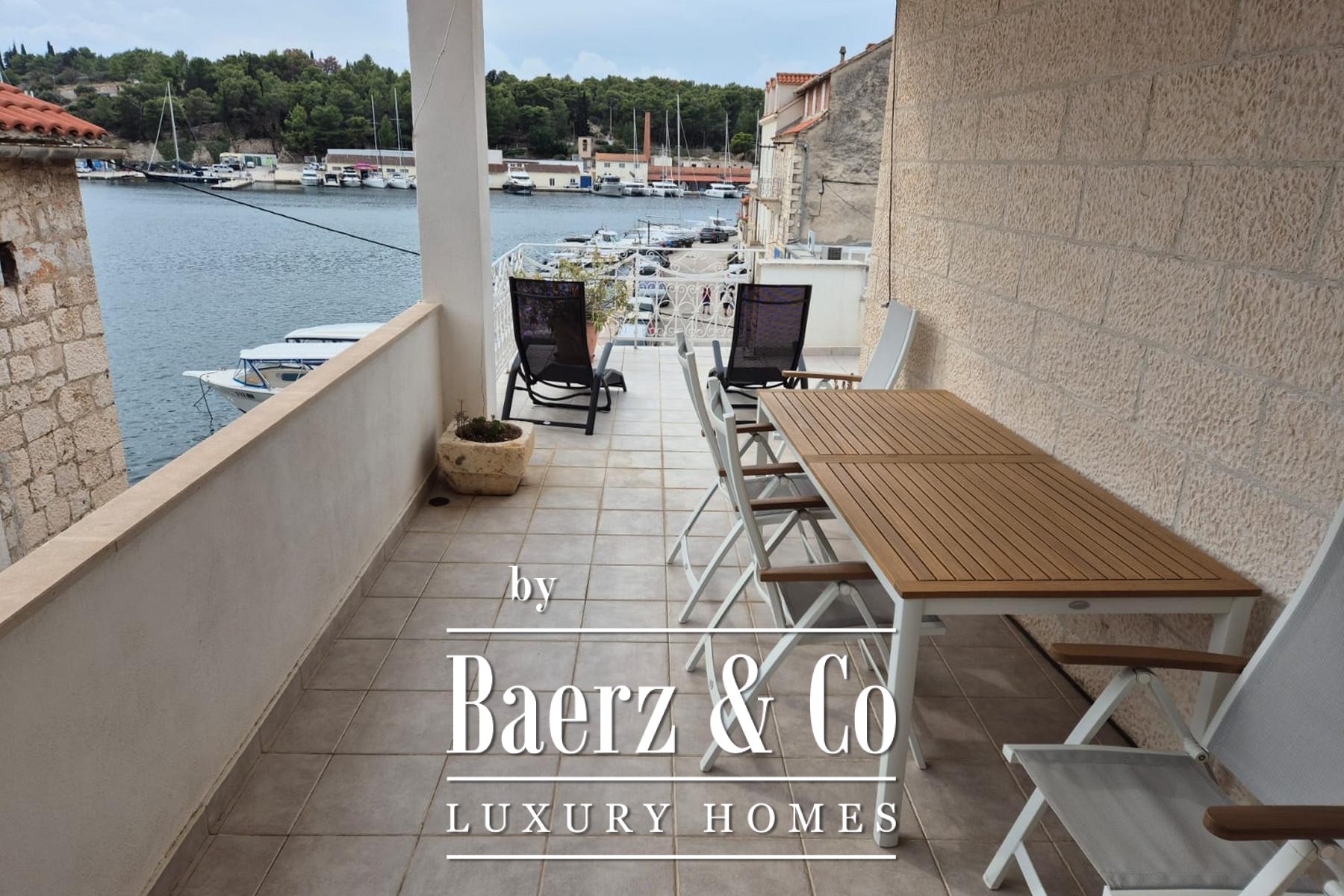 Stone house Milna Croatia seafront embodies the singular rhythm and presence of the Adriatic. Set on the island of Brač, this semi-detached stone property stands in the historic core of Milna, occupying a rare first-row position beside the water. The structure spans 220 m² across three levels, blending residential calm with commercial potential at the heart of the village.