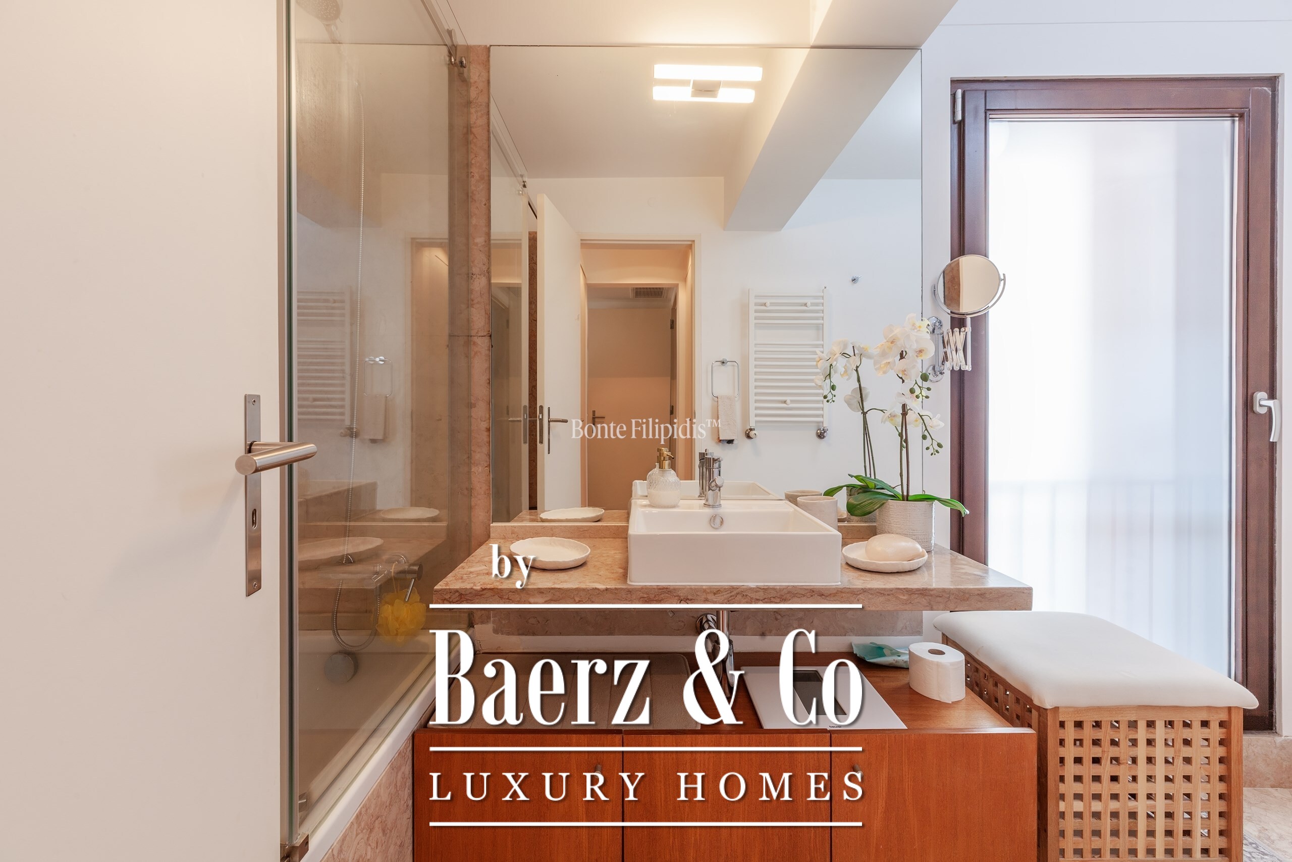 Generous natural light defines the atmosphere, enhanced by a northeast orientation in the 60 m² living and dining room, a space designed to welcome both tranquil mornings and gatherings. Each of the four bedrooms—including a master suite and a separate service suite—ensures flexibility and discretion, supported by four bathrooms and guest facilities. Central air conditioning with individual controls harmonises thermal comfort across the property.