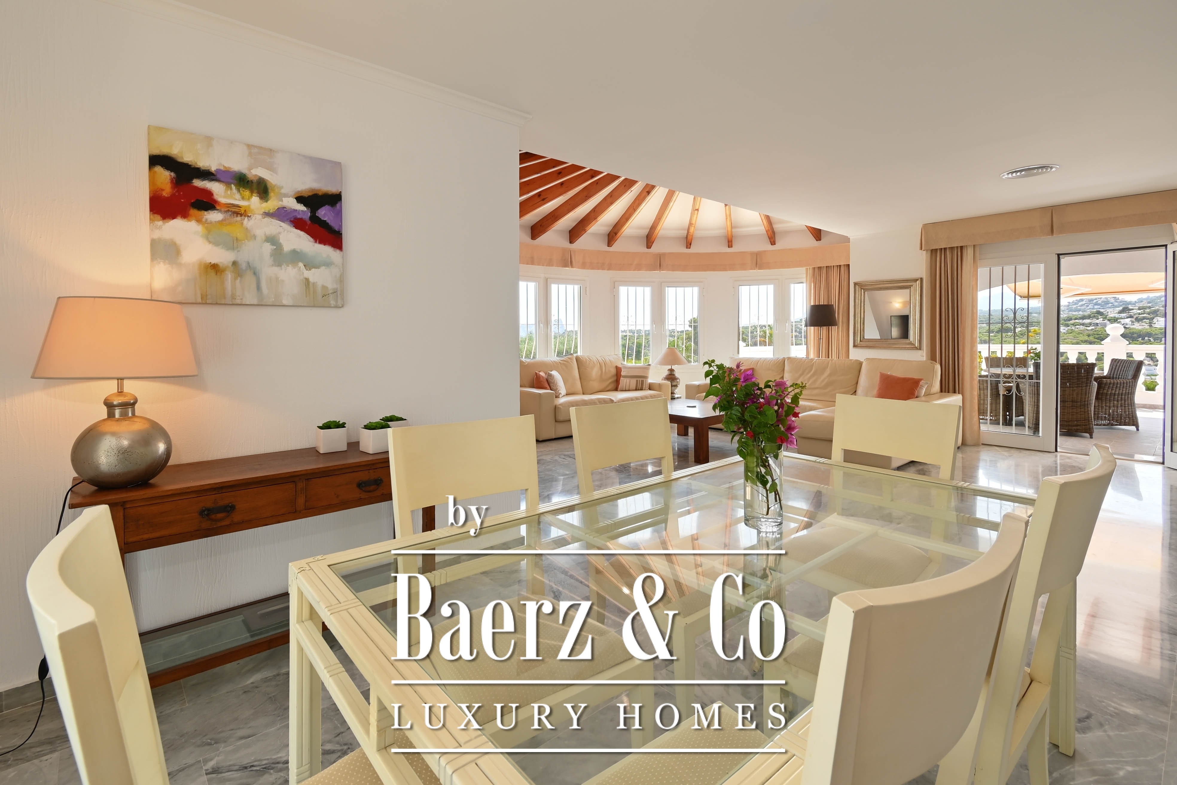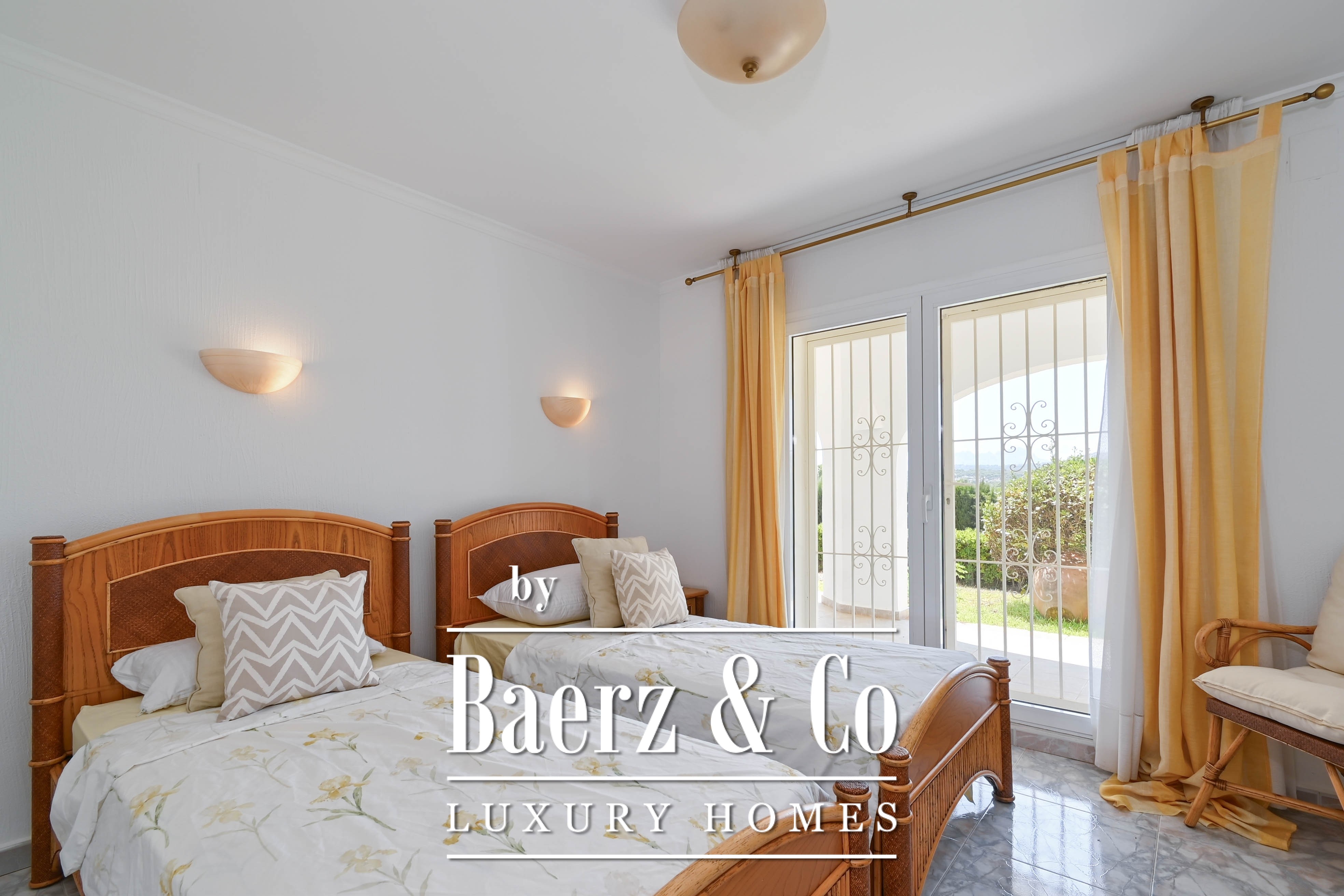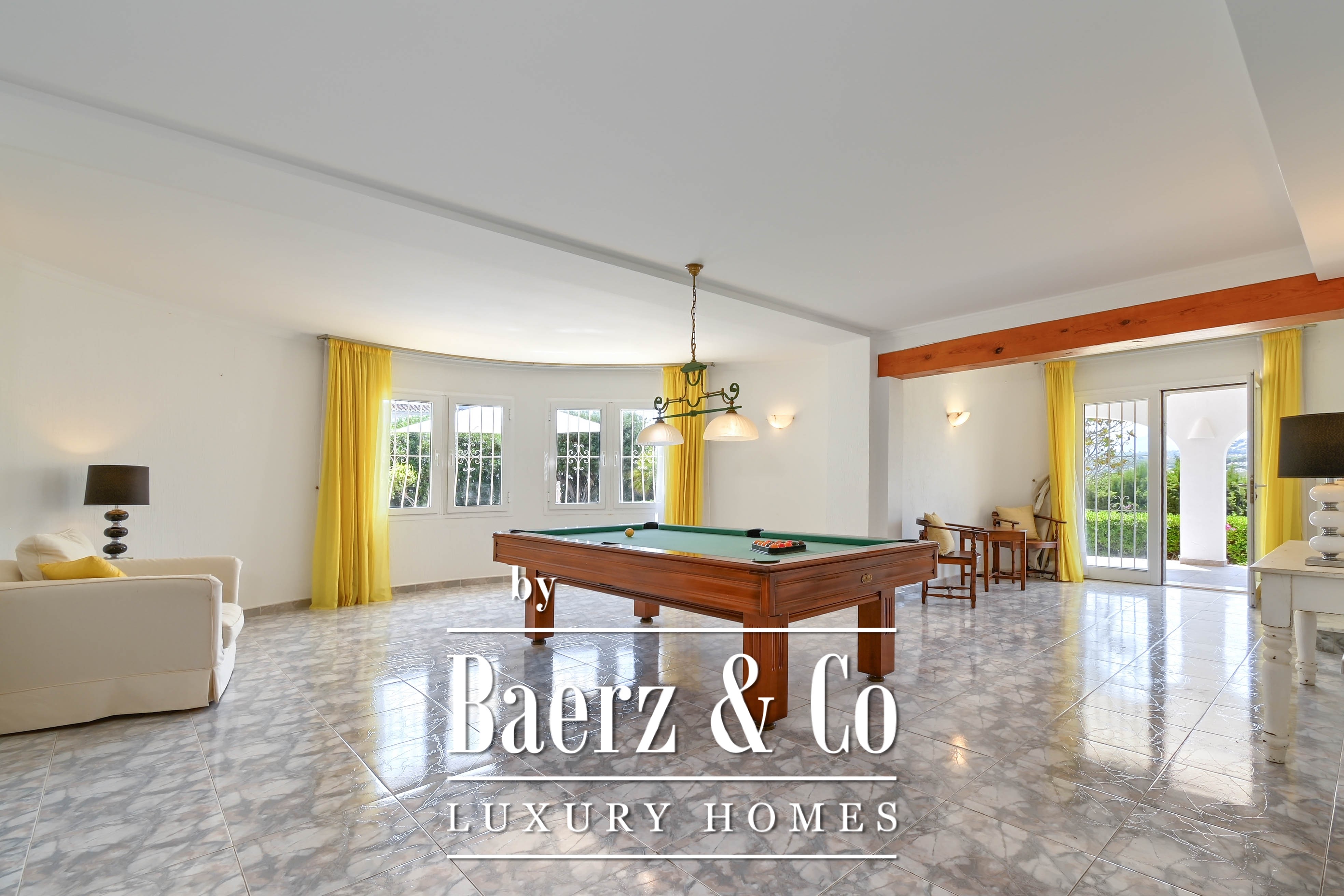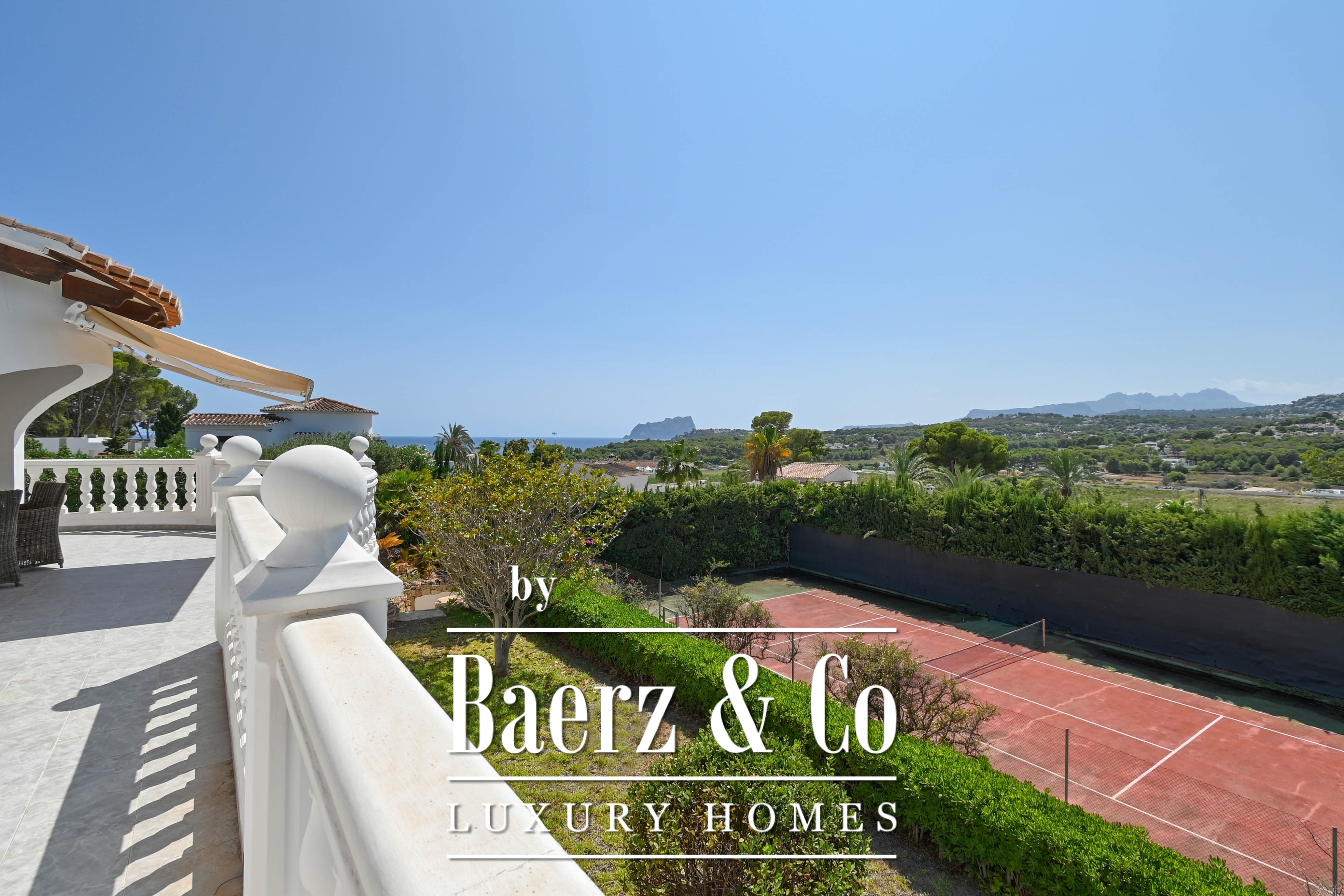 Villa Moraira offers a unique renovation project with sweeping sea views and the rare amenity of a double plot measuring 1,973 m². From its terrace, the vistas of the Mediterranean set a calm rhythm, while the proximity to Moraira’s centre and attractive beaches invites an easy, walkable lifestyle. The current structure consists of 284 m², featuring five bedrooms and three bathrooms. Spacious living areas flow towards the outdoors, creating a foundation ripe for thoughtful transformation. A private tennis court sits quietly on the second plot, while the existing garage and generous grounds allow for creative expansion—potential for a second residence, a guesthouse, or a pool house, tailored to personal vision. The Mediterranean character endures, ready to be reimagined by a discerning owner seeking substance and potential. Here, architecture, location, and land combine to form a canvas for lasting value in one of Costa Blanca’s most sought-after enclaves. This villa for sale in Moraira blends privacy, opportunity, and the timeless pull of the sea.