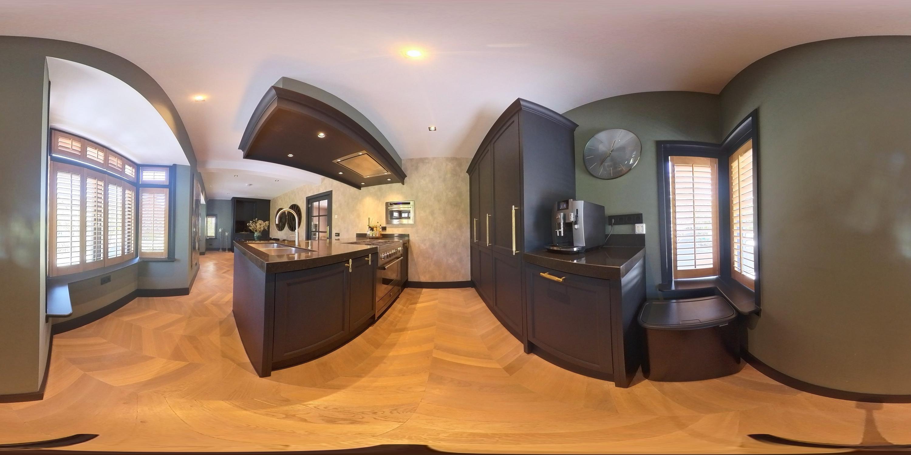 Grote woonkeuken aan de voorzijde met gezellige erkers en keuken met kookeiland, Quooker en alle benodigde inbouwapparatuur.