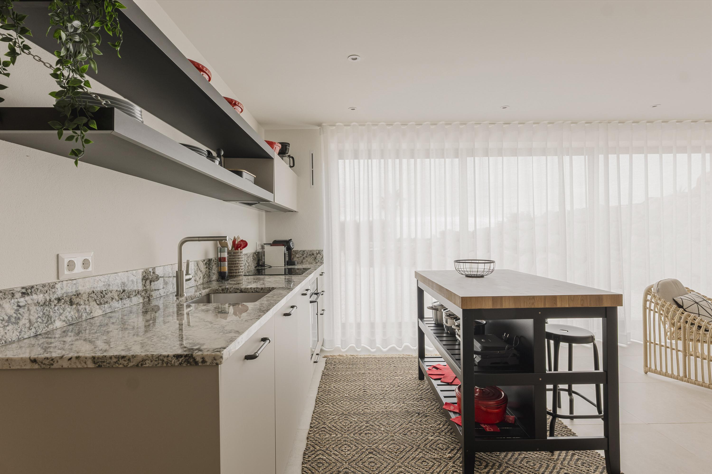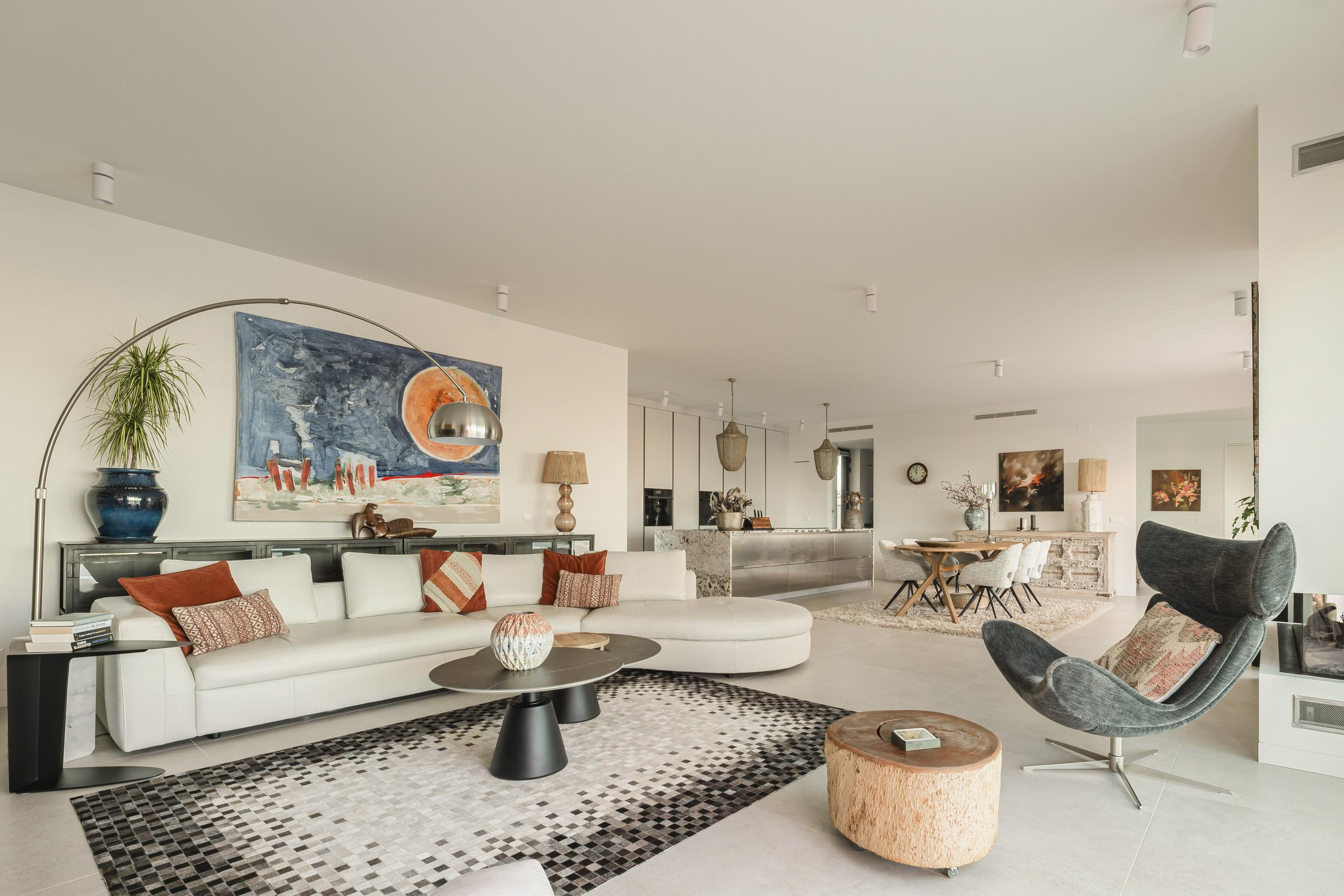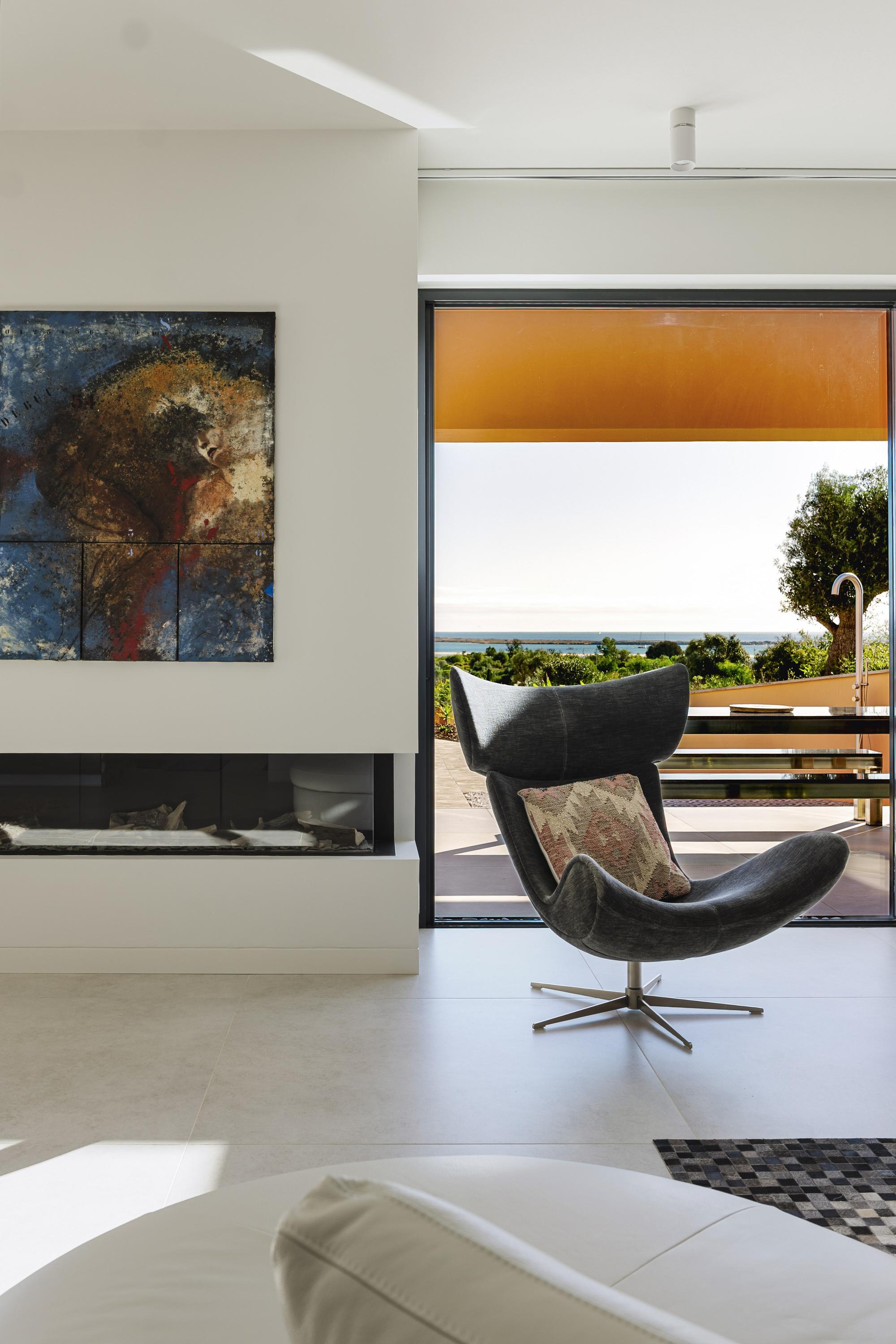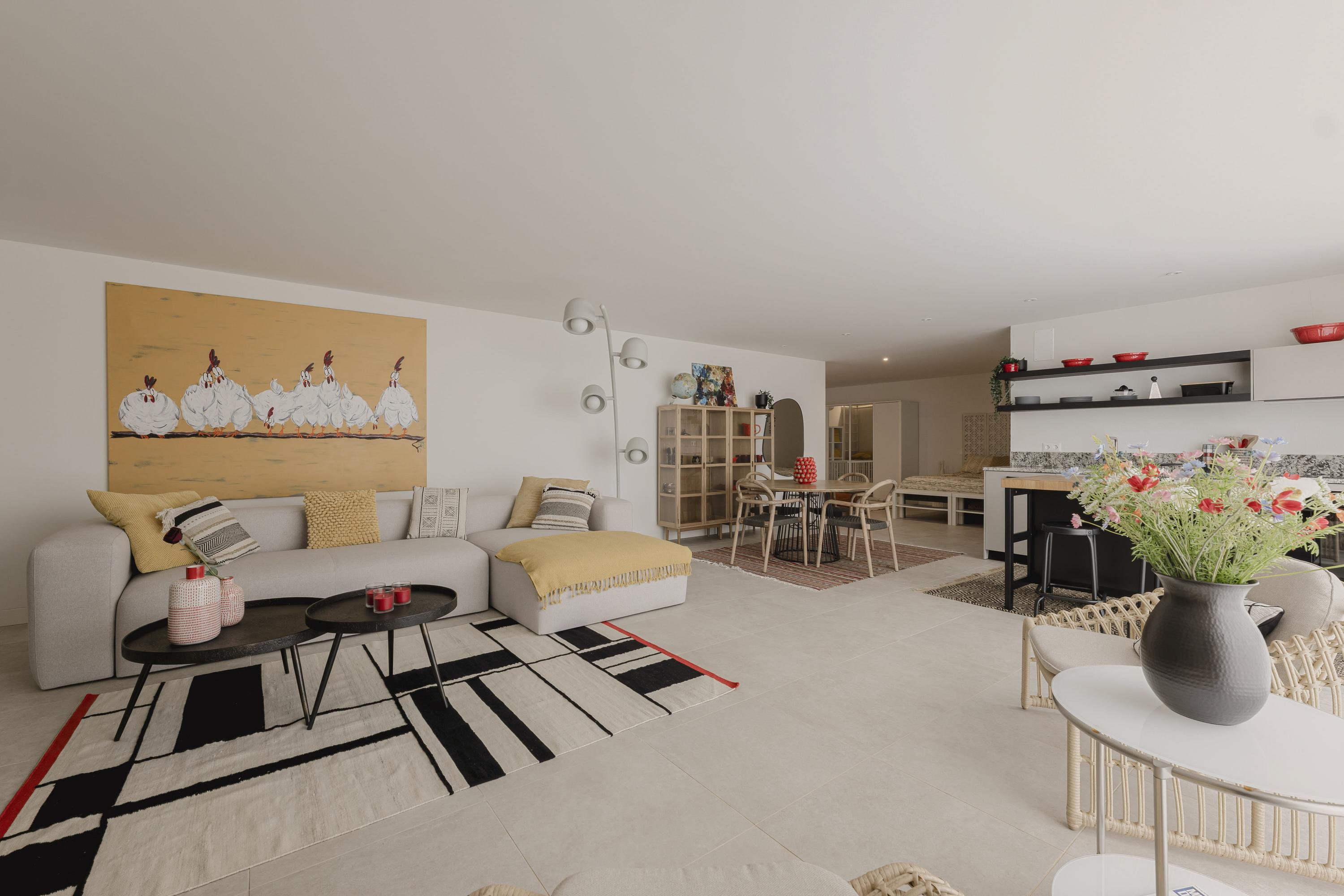 The main living room is luminous and inviting, with sweeping views of the Atlantic and the softly rolling landscape of Palmares Golf. Its seamless flow to the terrace and pool area creates an effortless indoor–outdoor atmosphere for both everyday living and refined hosting. The front terrace can optionally be enclosed in glass, forming an elegant all-season lounge or dining area without compromising the views.