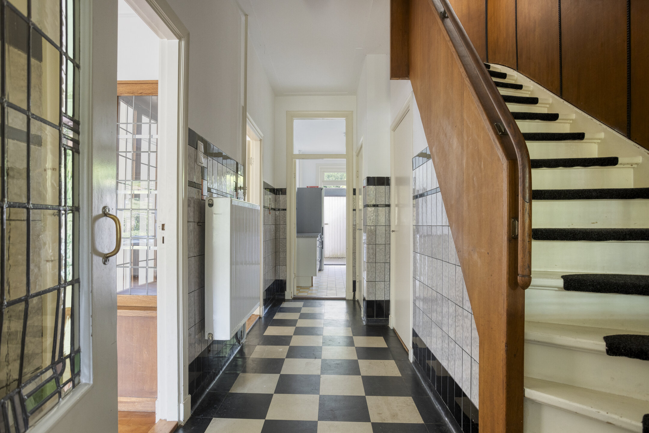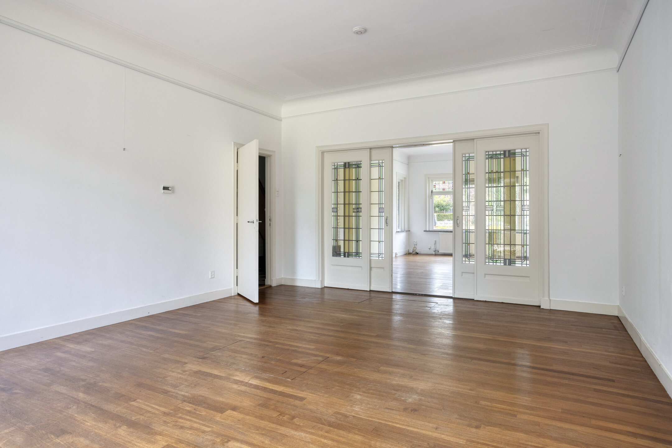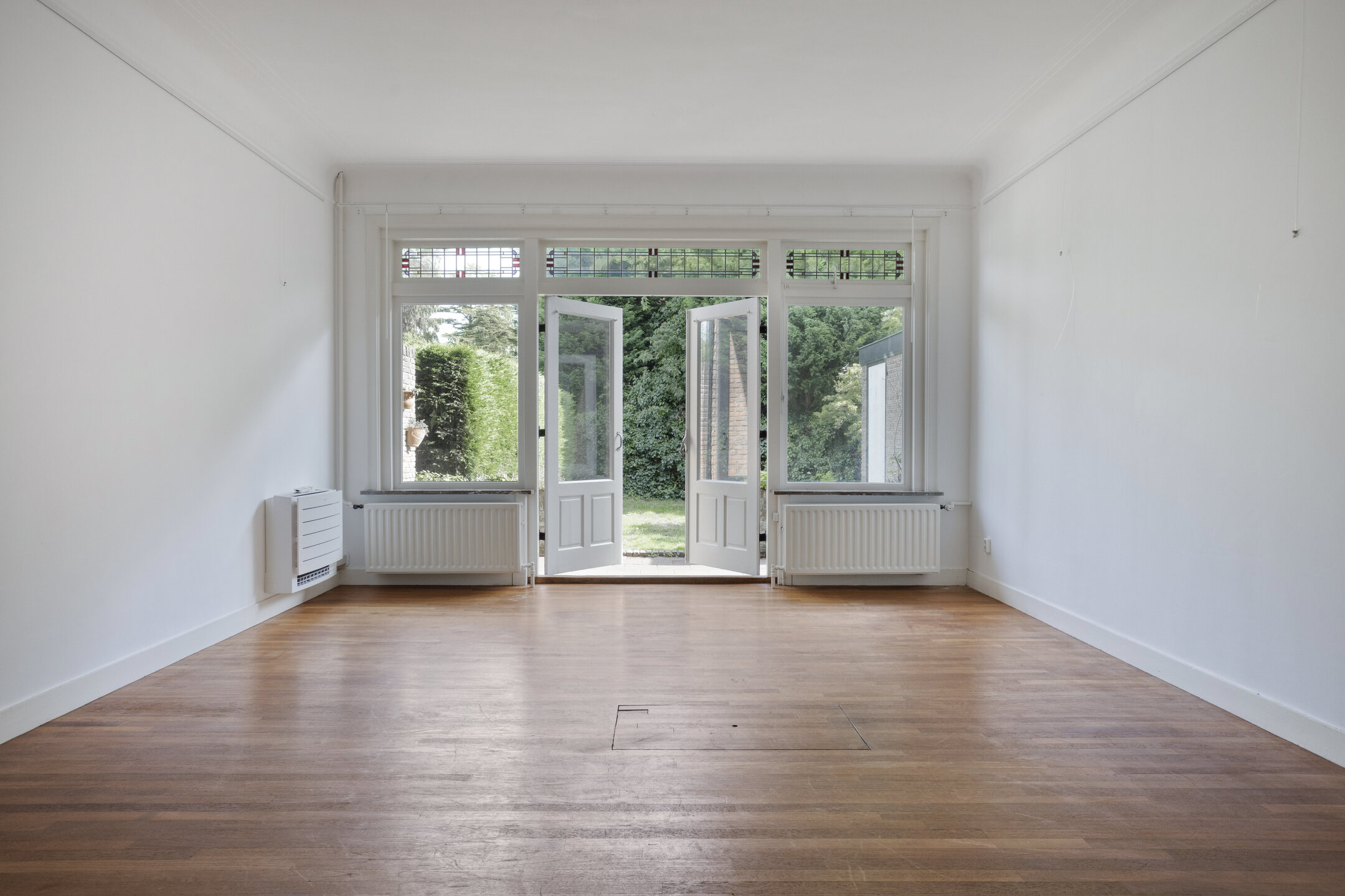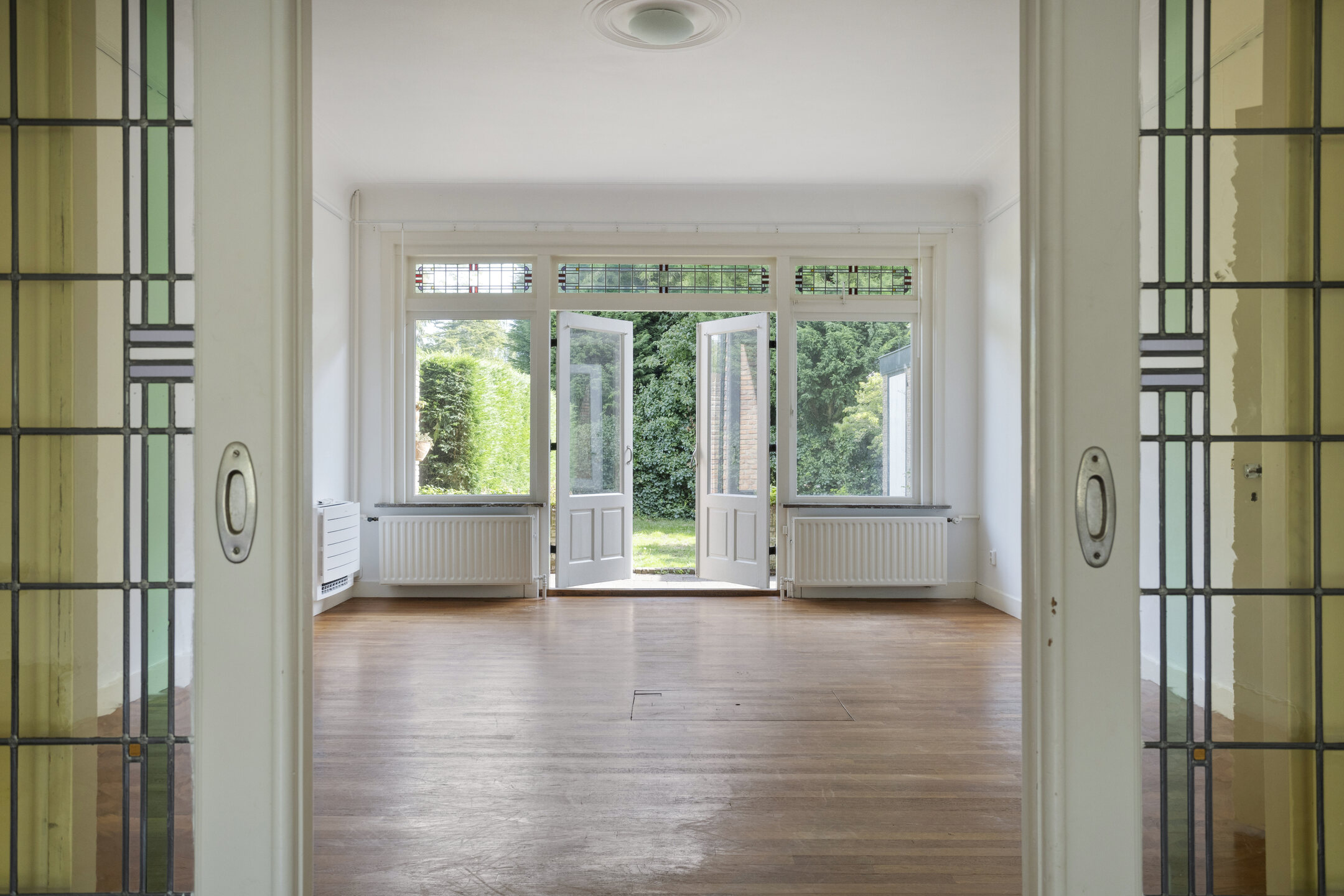 Many authentic details have been preserved, giving the property its characteristic atmosphere: high ceilings, stained-glass windows, wooden floors, and classic wainscoting. At the front lies a spacious front garden, while the deep, sunny back garden offers plenty of privacy and possibilities – ideal for a large family and wonderful outdoor living.