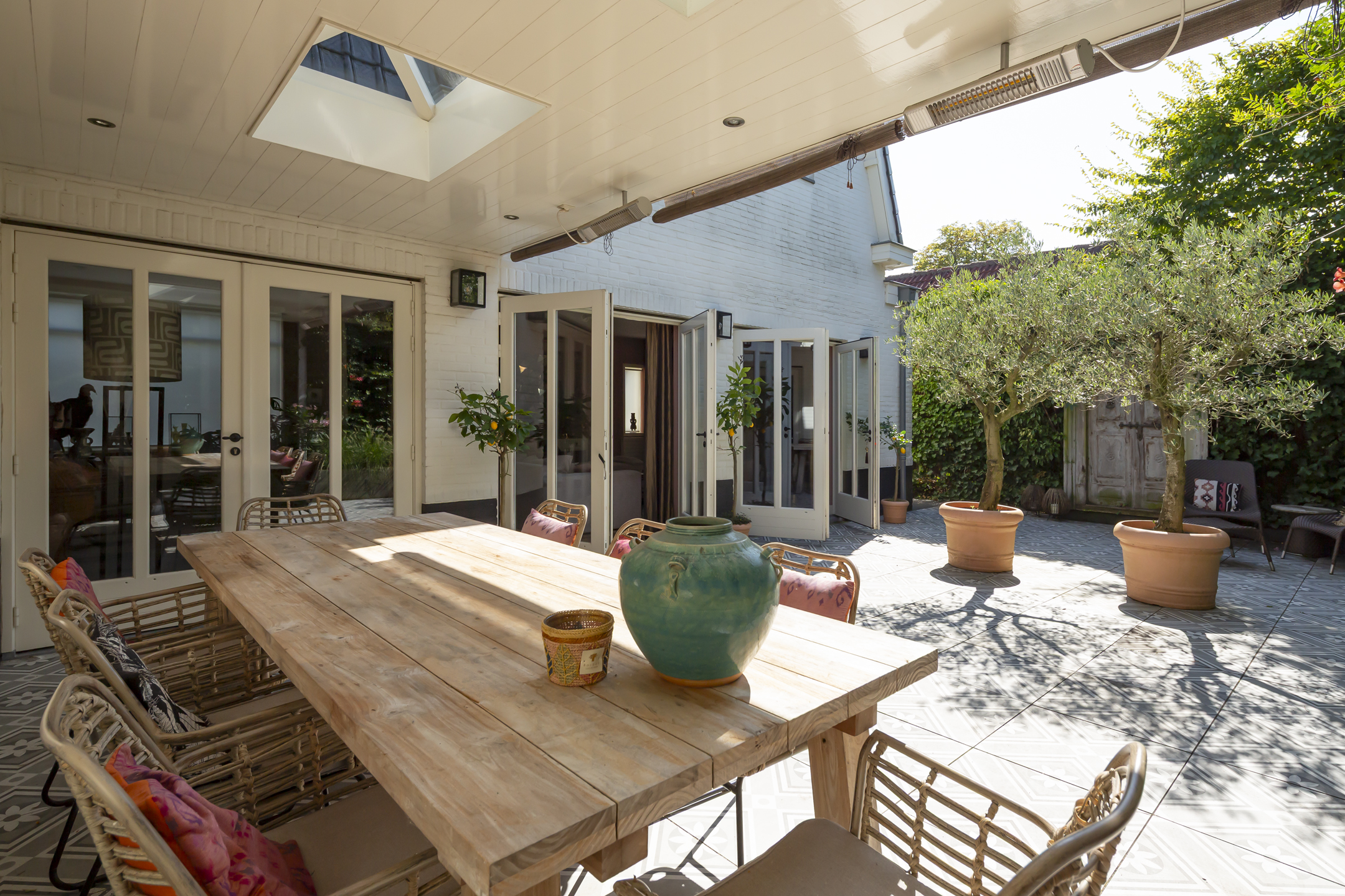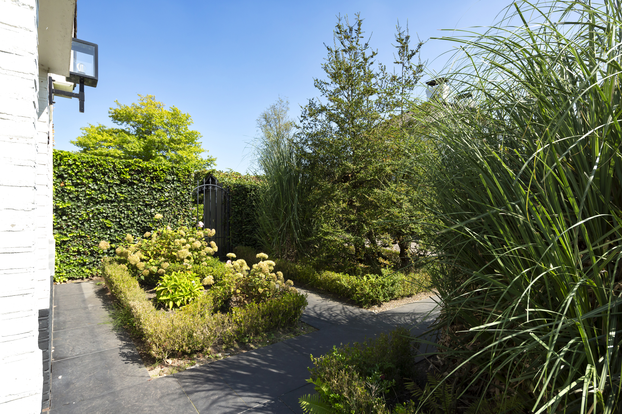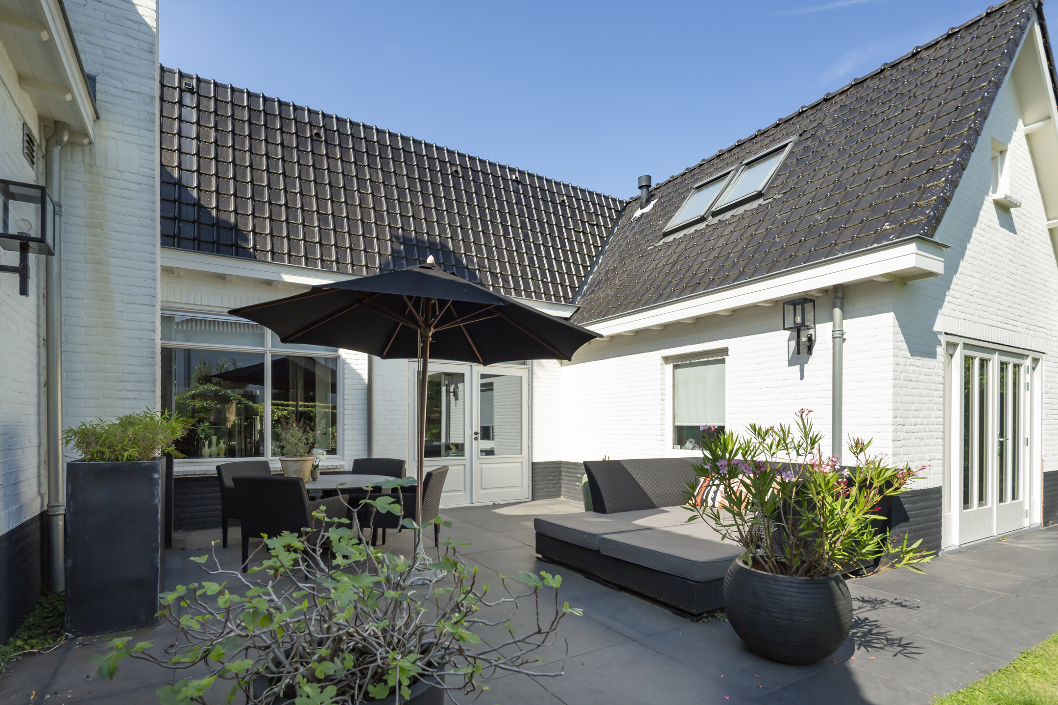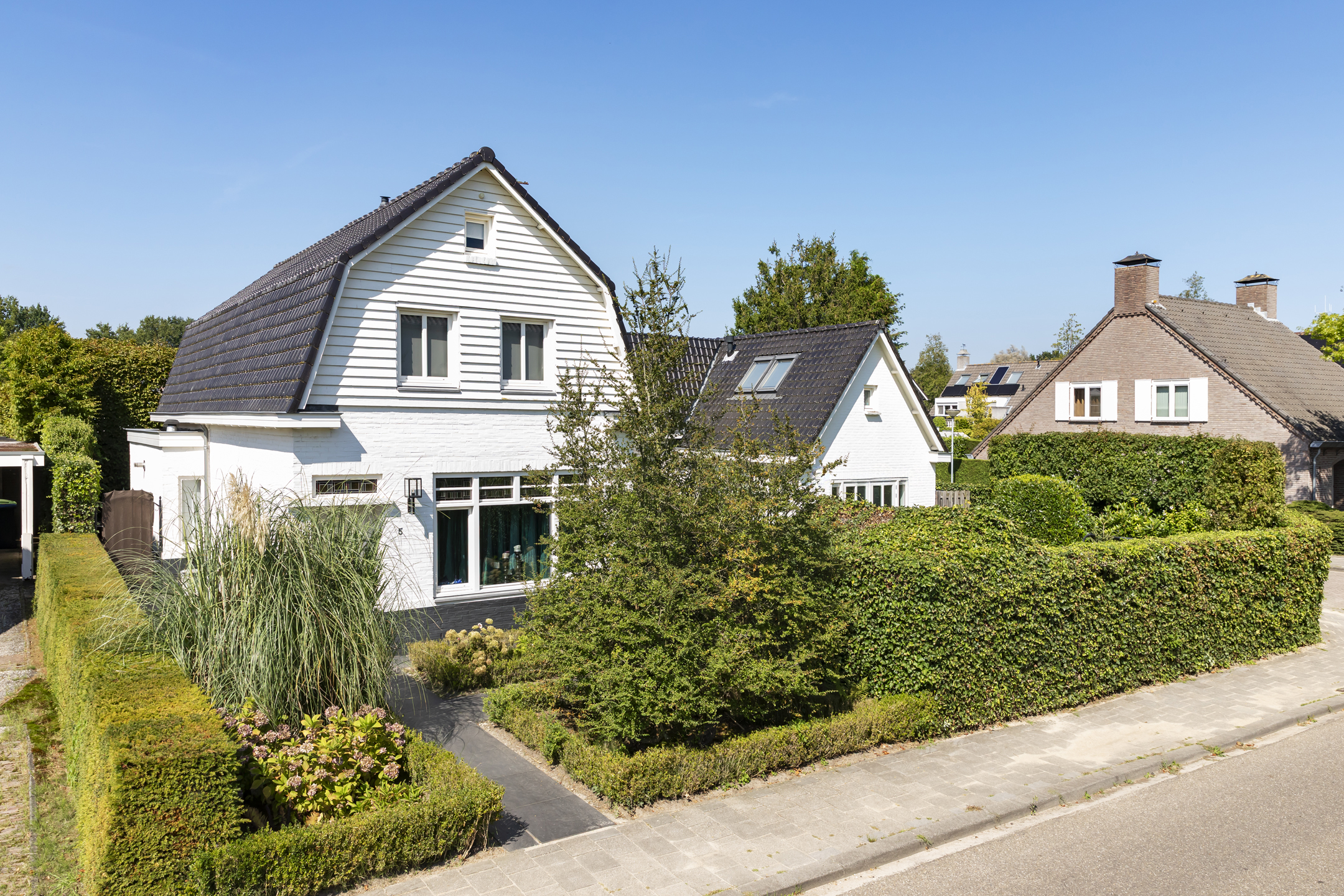 Outside, two distinct gardens allow for year-round enjoyment and complete privacy, with mature planting and stone paving. The property includes off street parking for multiple vehicles behind secure gates, and the garage is accessible from both the front and the rear. Extensive insulation and modern heating underline comfort. The location provides immediate access to natural reserves, cultural destinations, and the vibrant life of Oisterwijk, recognized for its rich amenities and green surroundings.