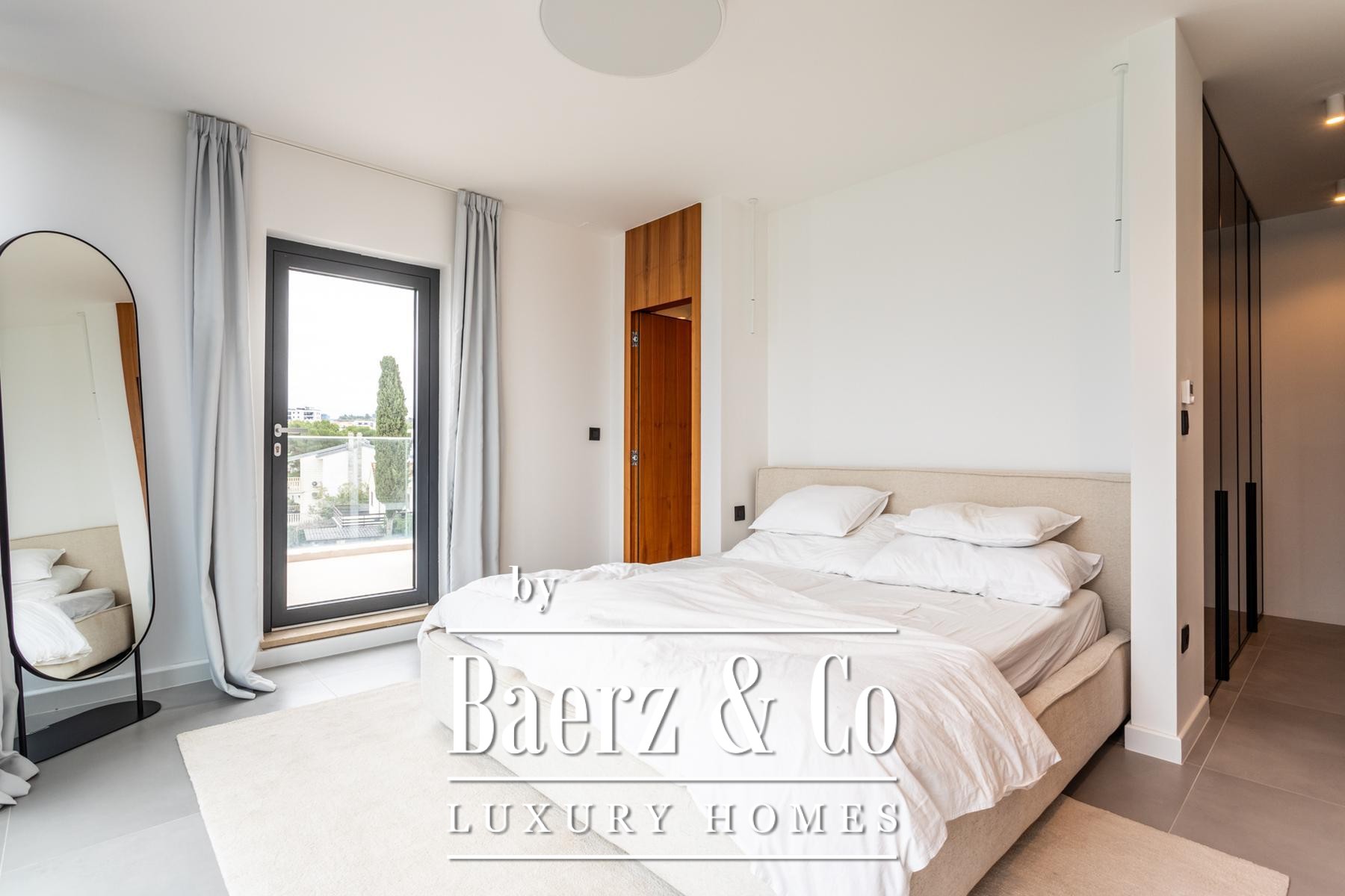 Inside, four floors accommodate four bedrooms and four bathrooms, each level revealing thoughtful design, custom furnishings, and finely tuned amenities. The basement is dedicated to wellness and leisure, with a wine cellar, sauna, games room, gym, and laundry, adding a quiet sense of luxury to daily life. The ground level flows onto a terrace with a private pool and sunbathing area, while upper floors present a contemporary kitchen, dining area, and a spacious living room with seamless balcony access.