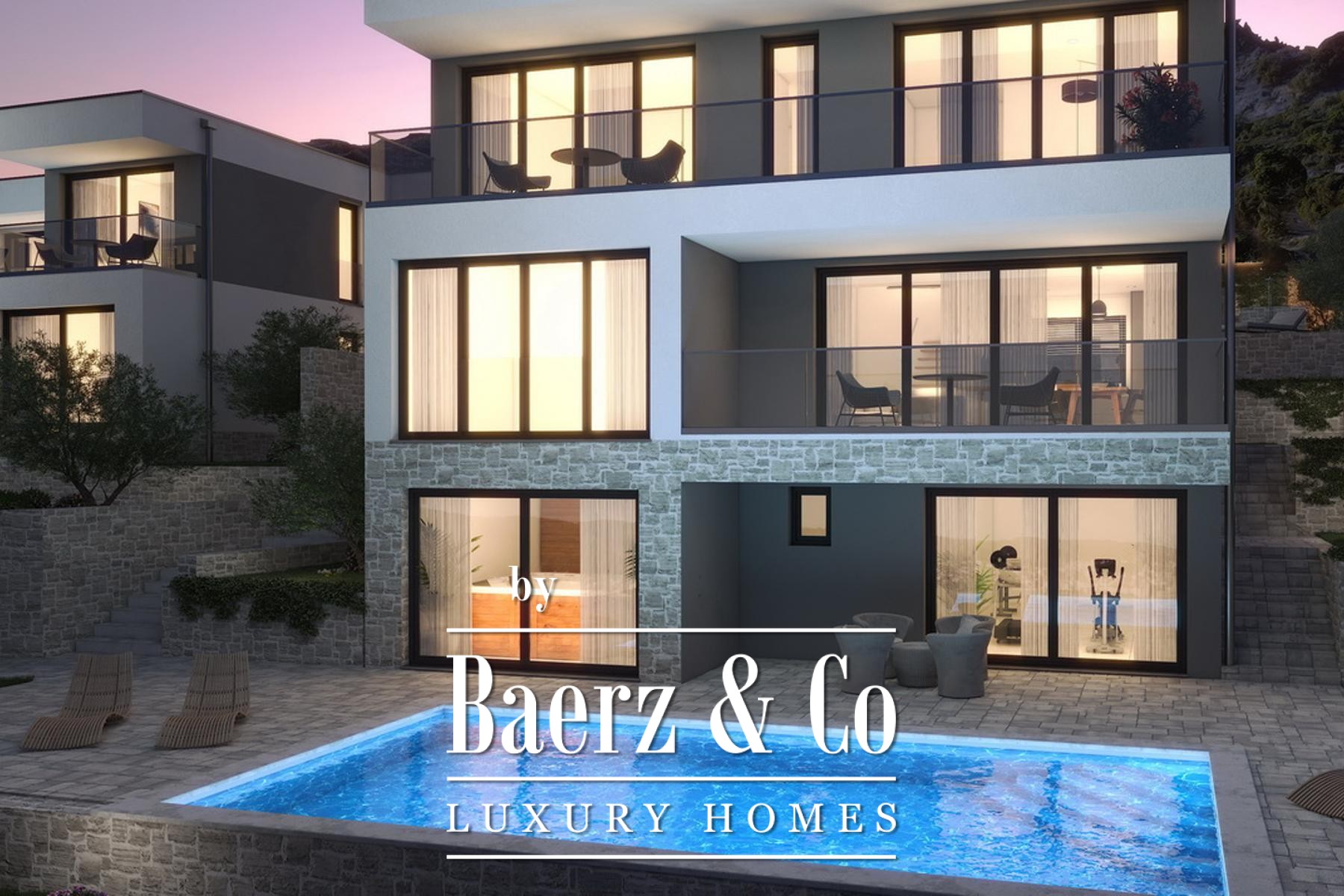 swimming pool, with a private parking space.The project will start at the end of 2025.The villa offers a beautiful view of the sea and the coast and the island of Korčula. The facility will be surrounded by a private garden with palm trees and Mediterranean plants that guarantees absolute privacy! An additional advantage of each of these properties will be a Dalmatian stone grill. The house will be built from the highest quality materials, and the villa will be connected to an intelligent system that can be controlled by all modern mobile phones.