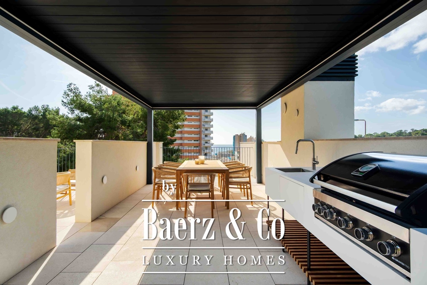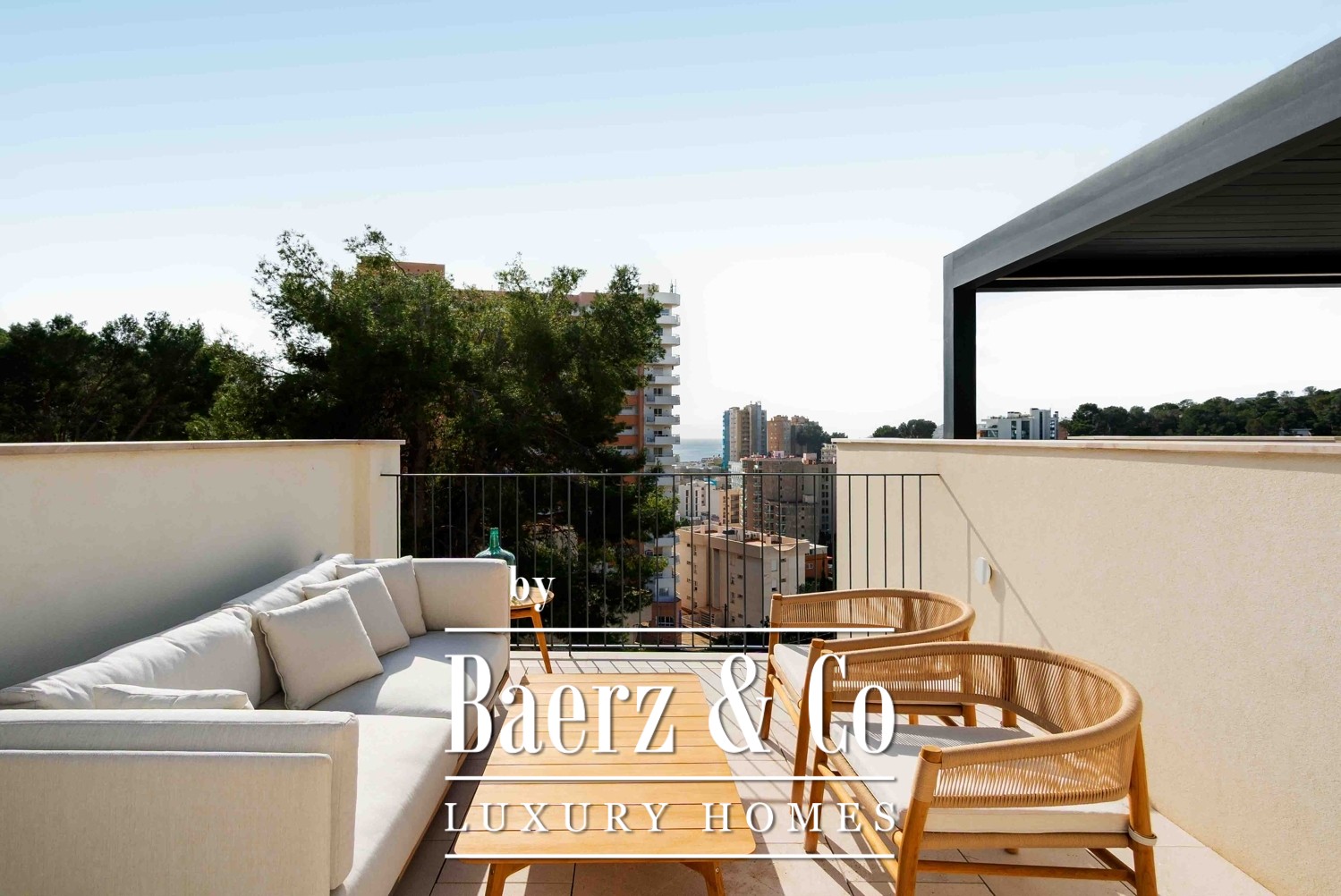 At the core, the private rooftop terrace features a pool overlooking Mallorca’s coastline and mountains—a space designed for quiet contemplation or gathering with guests. Additional features include a dedicated laundry and storage area, a private garage with electric vehicle charging, and beautifully integrated indoor-outdoor spaces. The penthouse sits minutes from Palma and within walking distance of the sea, embodying an elevated coastal lifestyle. This luxury penthouse for sale in Palma De Mallorca defines discretion and Mediterranean sophistication.