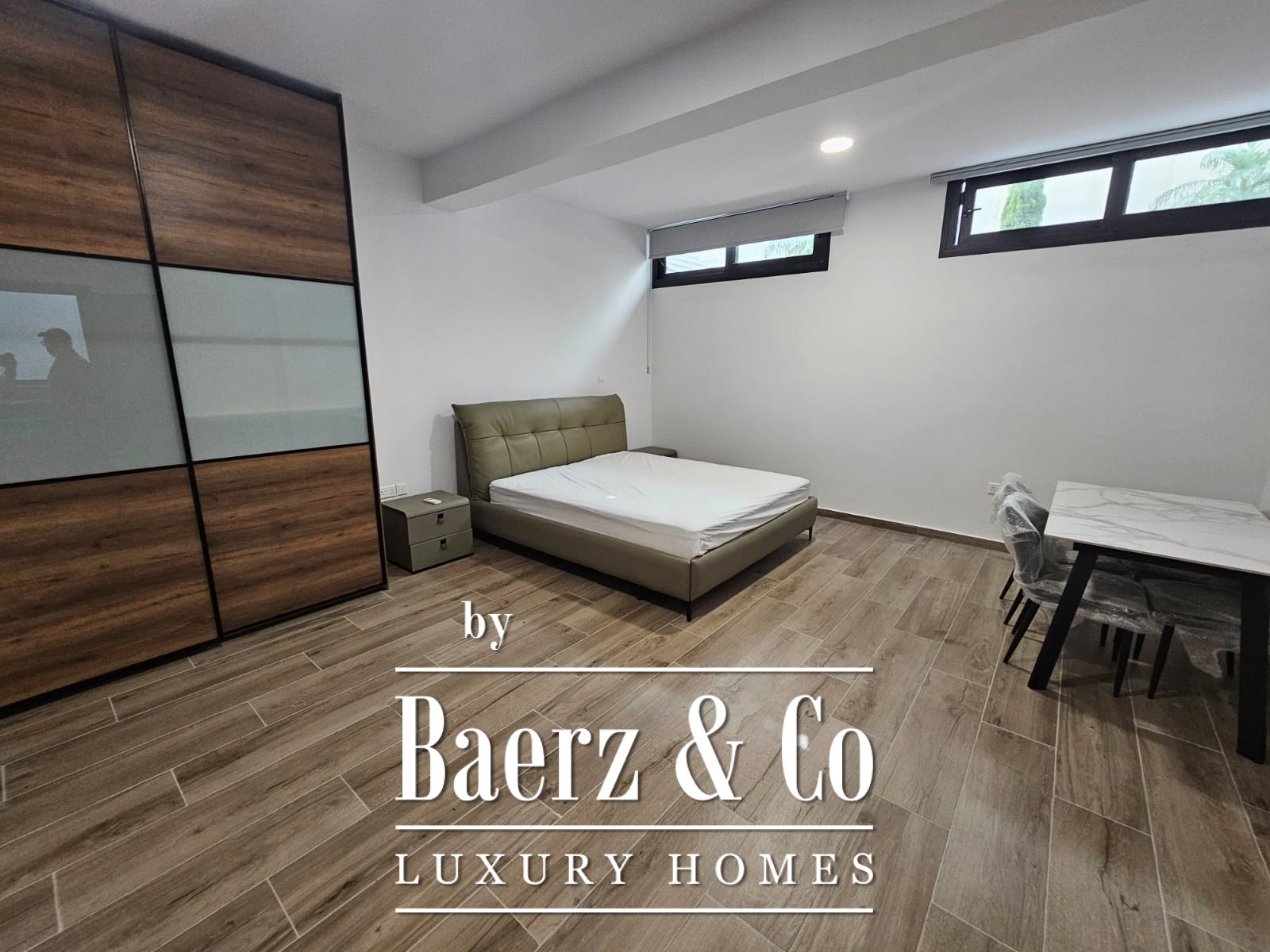 Set within a landscaped 888 sq.m. plot, the villa invites residents to savour quiet moments by the private swimming pool, host gatherings in the sunlit BBQ area, or simply relax in the exceptional living spaces. The layout includes four bedrooms, three bathrooms, and two guest WCs, while a service room adds further convenience. Interiors are finished to exacting standards, featuring large-format tiles, aluminium double-glazed windows for thermal and sound insulation, and a fully integrated underfloor heating and air conditioning system.
